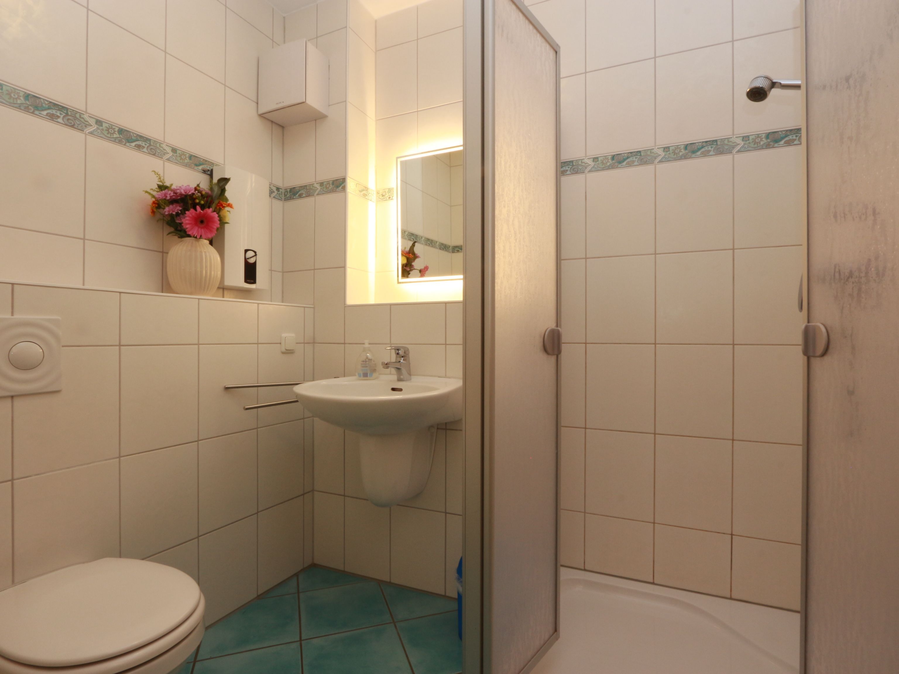 • 1 Bad mit Dusche, Waschbecken, WC, Handtuchtrockner-Heizkörper,