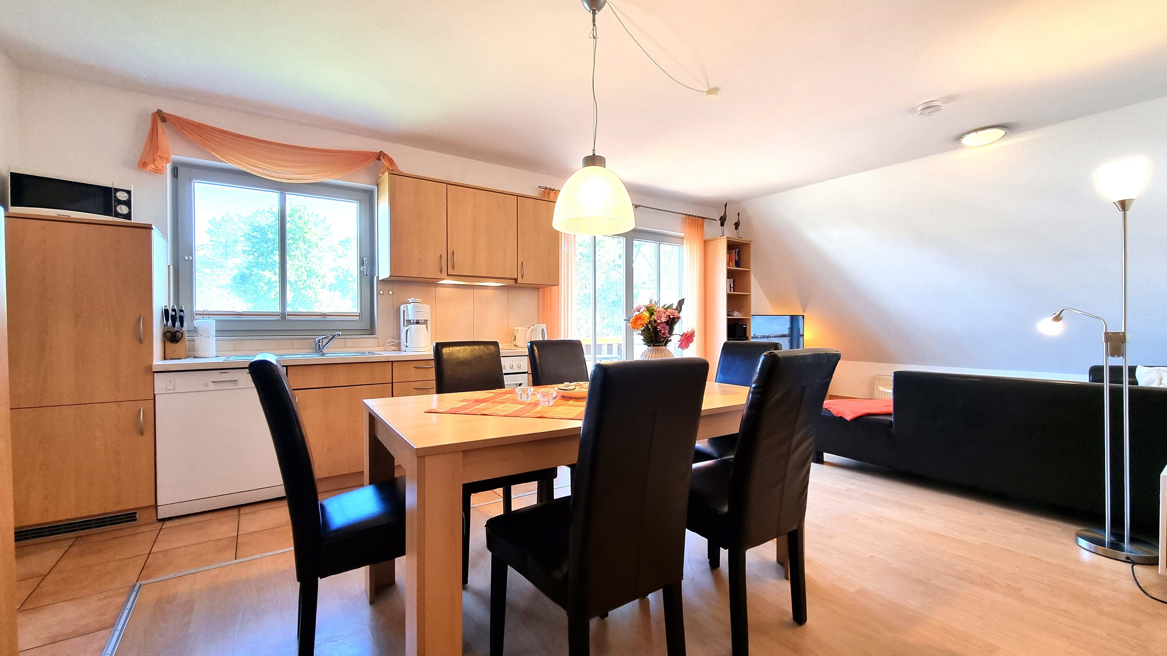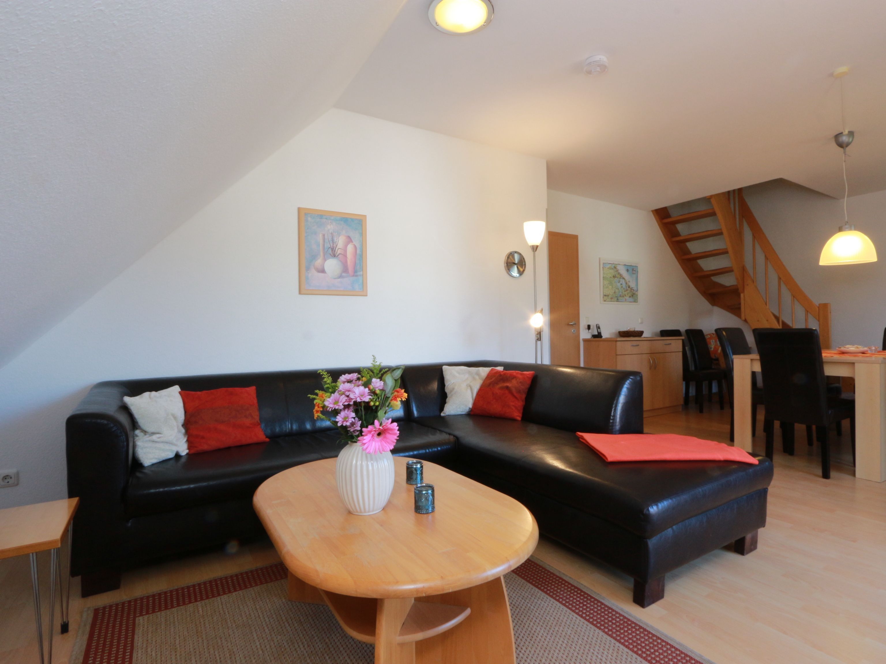Diese 4-Zimmer-Ferienwohnung ist modern, wohnlich und liebevoll eingerichtet. Die Wohnung hat ca. 90 m² Wohfläche verteilt auf 2 Ebenen in einem sehr schönen Reetdachhaus mit Blick auf das Achterwasser.