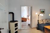 Diese kann für eine Aufbettung ausgezogen werden (135cmx200cm) und bietet somit auch im Winter eine angenehme Kuschelecke am gegenüberstehenden Kamin.