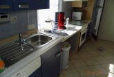 Herd mit Backofen, Geschirrspüler, Kühlschrank mit Tiefkühlfach, Mikrowelle, Kaffeemaschine, Wasserkocher, Eierkocher, Toaster und ausreichend Geschirr, Besteck und Töpfe.