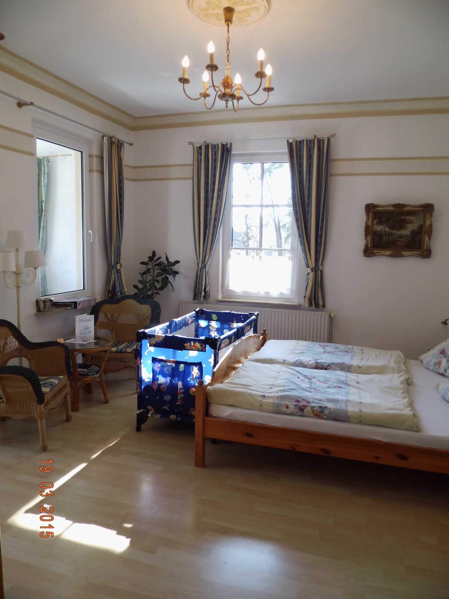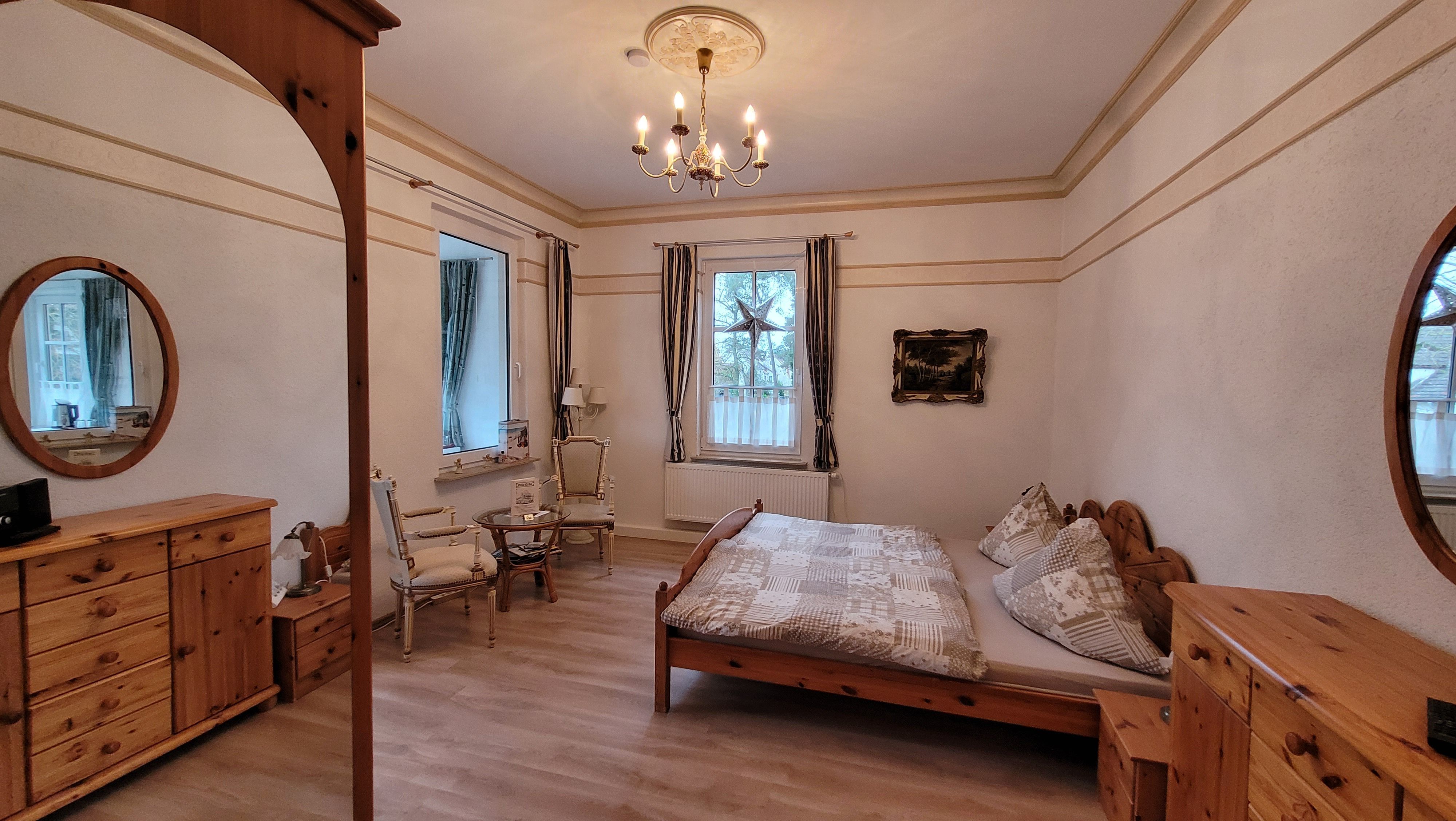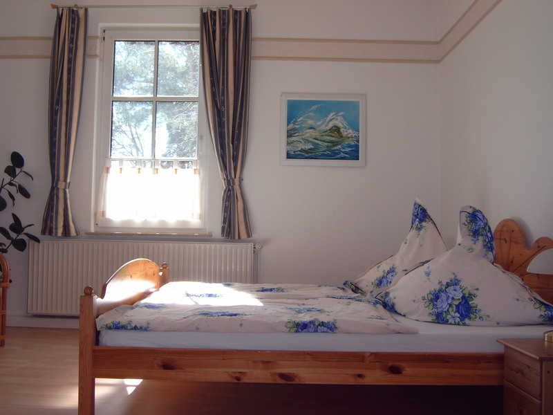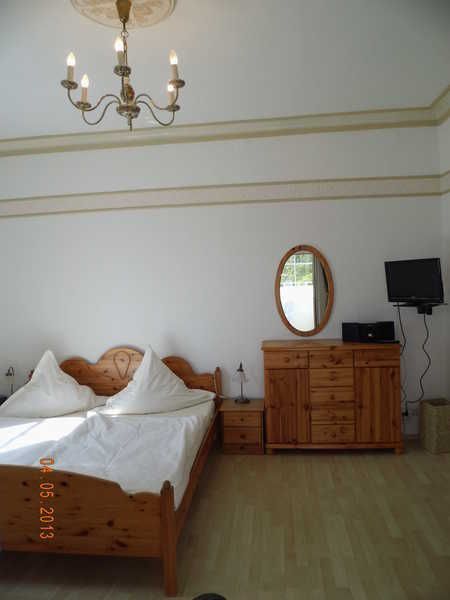 Das mit Laminat ausgelegte Doppel-/Wintergartenzimmer (31qm)ist zweckmäßig eingerichtet mit einem Doppelbett (bezogen mit Spezialbettwäsche), Kleiderschrank, Kühlschrank, Bücherregal sowie TV (mit DVD-Spieler) und Radiowecker (mit CD-Spieler).