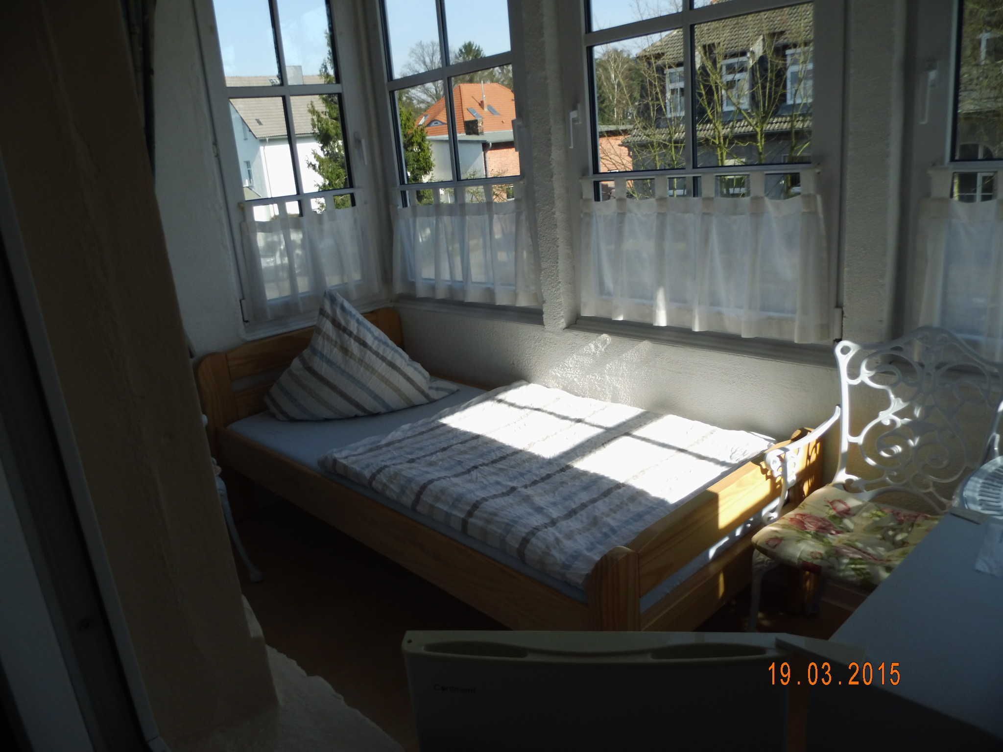 Da der Wintergarten vom Zimmer aus durch eine zu schließende Balkontür erreichbar ist, kann dies ohne weiteres zur zusätzlichen Aufbettung genutzt werden.