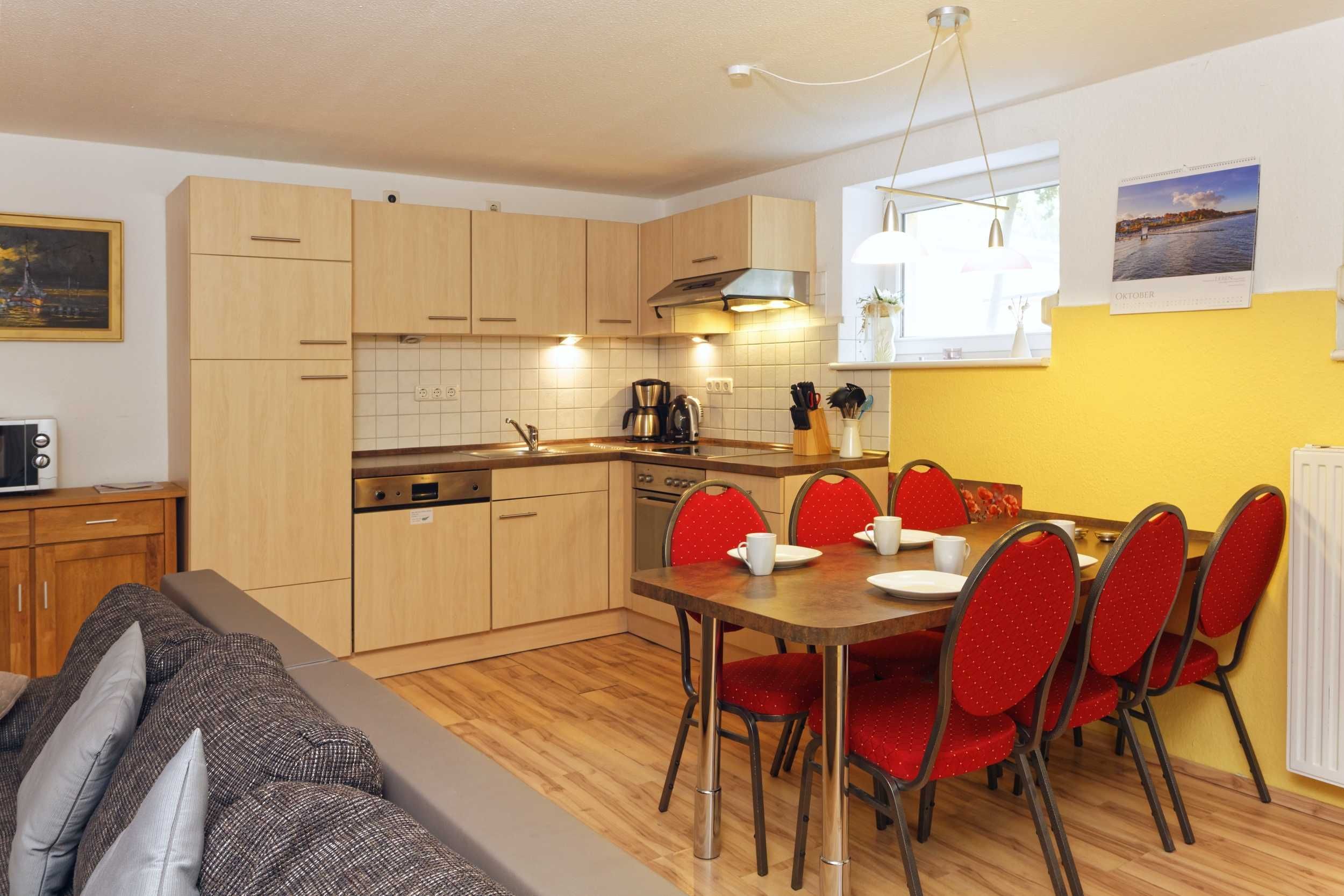 Schön eingerichtete 3-Zimmer Souterrain Ferienwohnung „Ostseedüne“ mit einer großen, möblierten Terrasse. Die Ferienwohnung ist ausgestattet mit einer offenen Küche und Essbereich. Der Wohnbereich verfügt eine große, gemütliche Couch und einem Flachbild-TV mit DVD Player.
