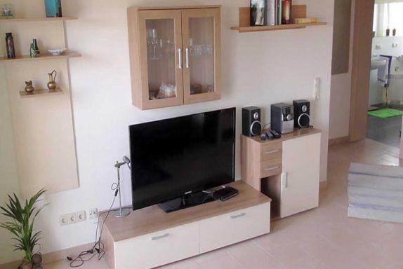 Die 50 m² große Ferienwohnung ist für maximal 3 Personen (entweder für 3 Erwachsene oder für 2 Erwachsene und 1 Kind) buchbar. Sie verfügt über einen gemütlichen Wohnbereich mit Couch, Flachbild-TV und Radio sowie einer vollwertigen,separaten Küche mit Backofen, Geschirrspüler, Kühlschrank, Kaffeemaschine, Wasserkocher und Toaster und einer Sitzecke sowie dem Zugang zum Balkon. Das separate Schlafzimmer ist mit einem Doppelbett und einem begehbaren Kleiderschrank ausgestattet.