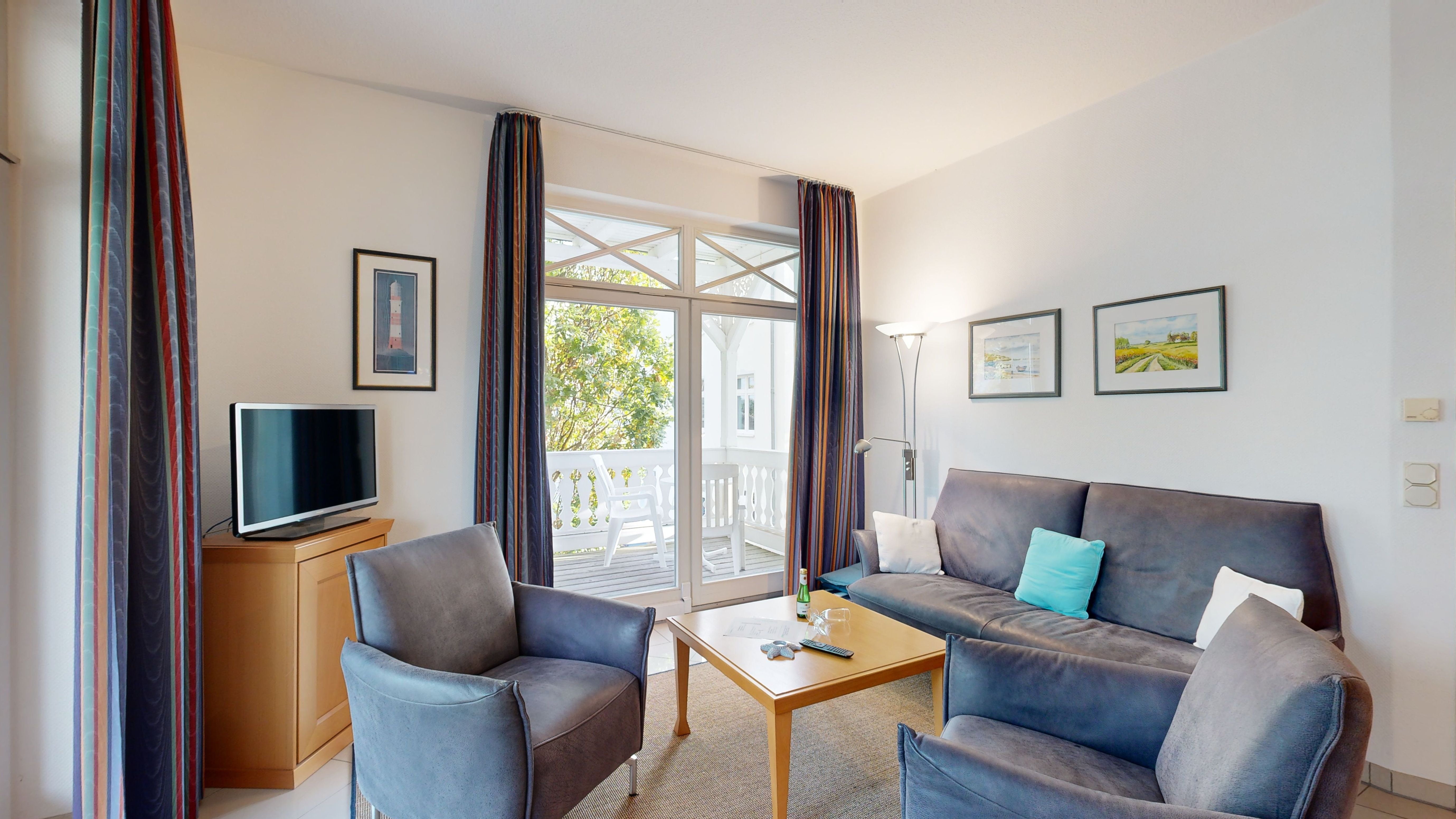 * Wohnzimmer: Couchgarnitur, Kabel-TV, Radio mit CD, W-LAN-Internetanschluss