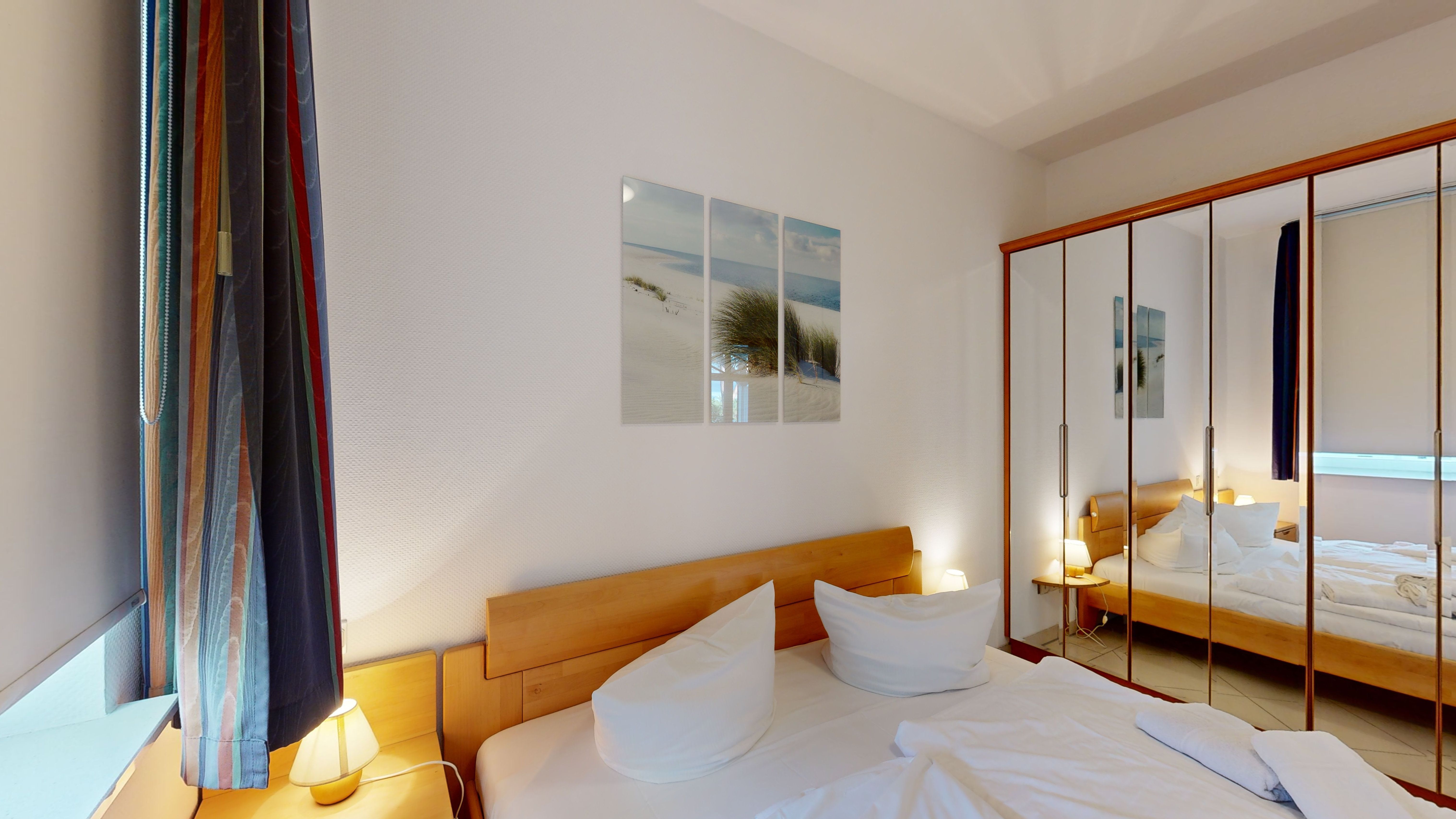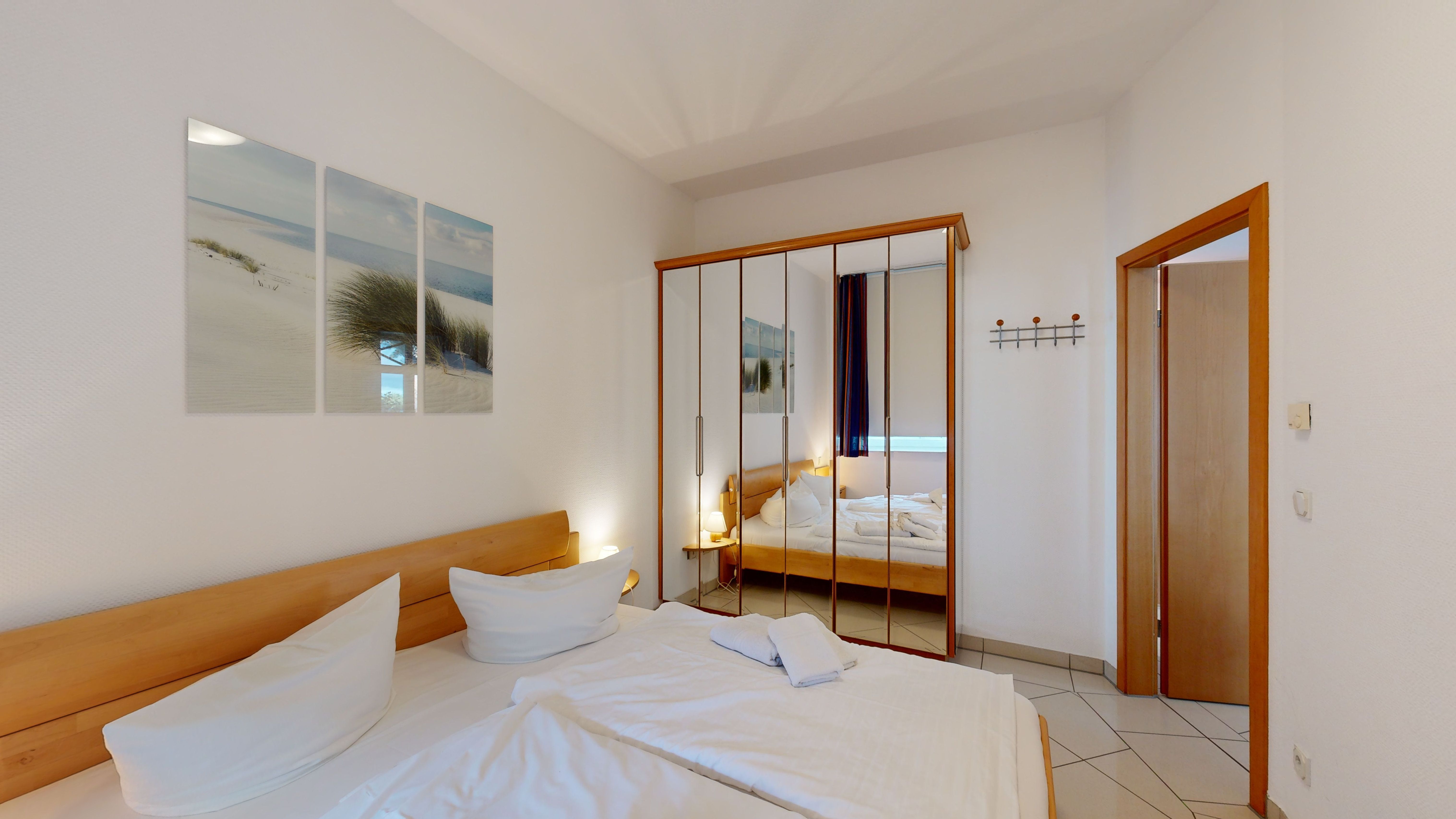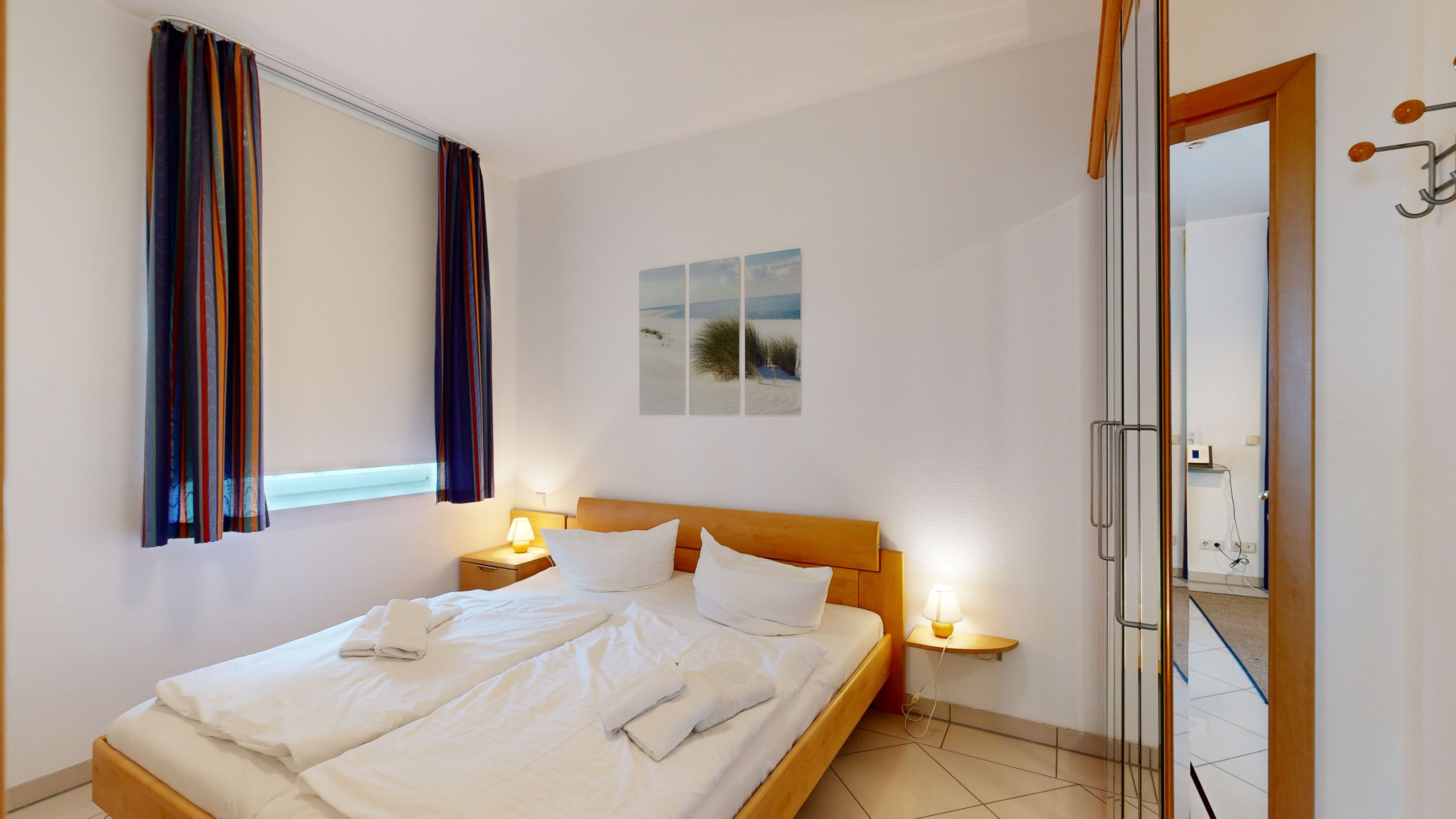 * 1 Schlafzimmer mit einem Doppelbett (180 x 200 cm), getrennte Matratzen
