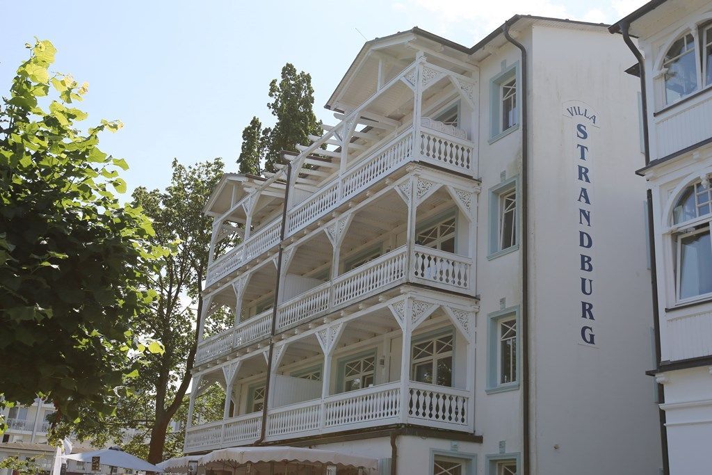 In der in Bäderarchitektur renovierten Villa Strandburg in Binz direkt an der Strandpromenade vermieten wir zwei sehr gut gelegene Wohnungen. Die Wohnung verfügt über einen sehr schönen Meerblick und man erreicht diese mit dem Fahrstuhl. Tiefgarage (Einfahrtshöhe 1,95 m, Breite der Einfahrt 2,70 m), Sauna (Gebühr), sowie Münzwaschmaschine und -trockner (Gebühr) im Haus. Haustiere sind nicht erlaubt.