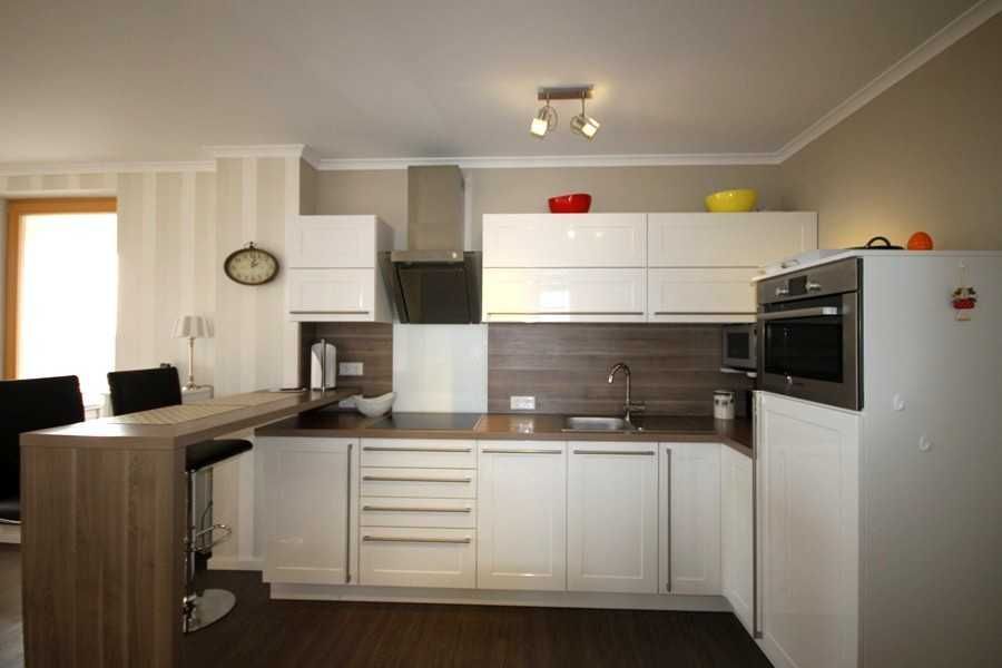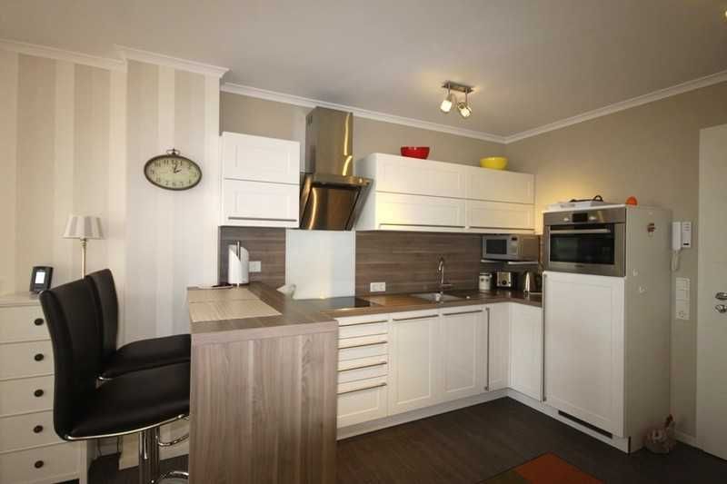 Die offene, moderne Einbauküche inklusive Geschirrspüler, Mikrowelle, Kühlschrank mit Tiefkühlfach, Ceranfeld und Herd in angenehmer Arbeitshöhe, Kaffeemaschine und eine Nespresso-Maschine, Toaster und Wasserkocher lassen keine Wünsche offen.