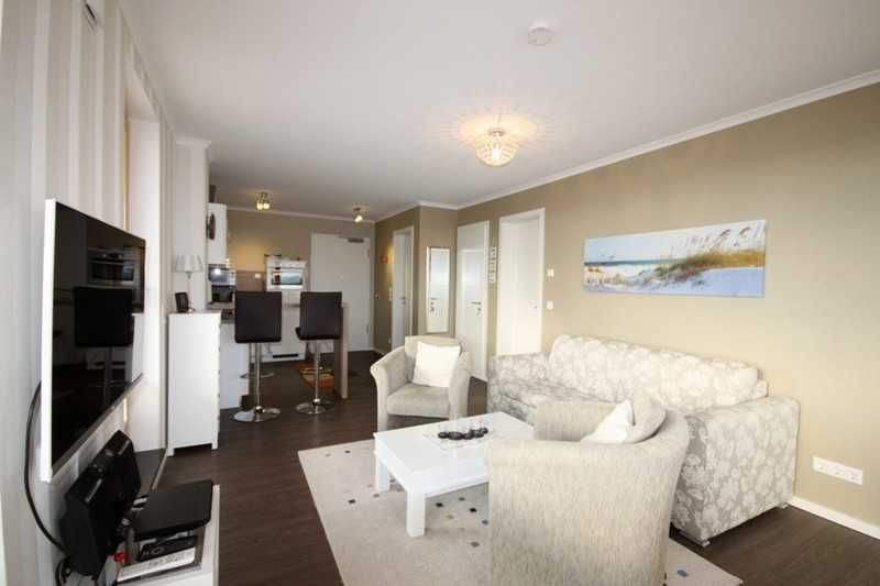 Ein besonderes Highlight sind die zwei Dachterrassen (50 qm Westausrichtung und 20 qm Ostausrichtung), die mit hochwertigen Terrassenmöbeln ausgestattet sind und beim Sonnenaufgang mit herrlichem Blick aufs Meer zum ausgiebigen Frühstück einladen. Bequem im Liegestuhl, im Schaukelstuhl oder im XXL Strandkorb können Sie beim traumhaften Sonnenuntergang die Seele baumeln lassen. Der lichtdurchflutete Wohnraum mit Flatscreen-TV (117 cm Bildschirmdiagonale) gemütlichem Funktionssofa (ausziehbar 180 x 200 cm) zwei bequeme Fernsehsessel und einem Esstisch mit bis zu sechs Stühlen bieten Platz für gemütliche Spielabende.