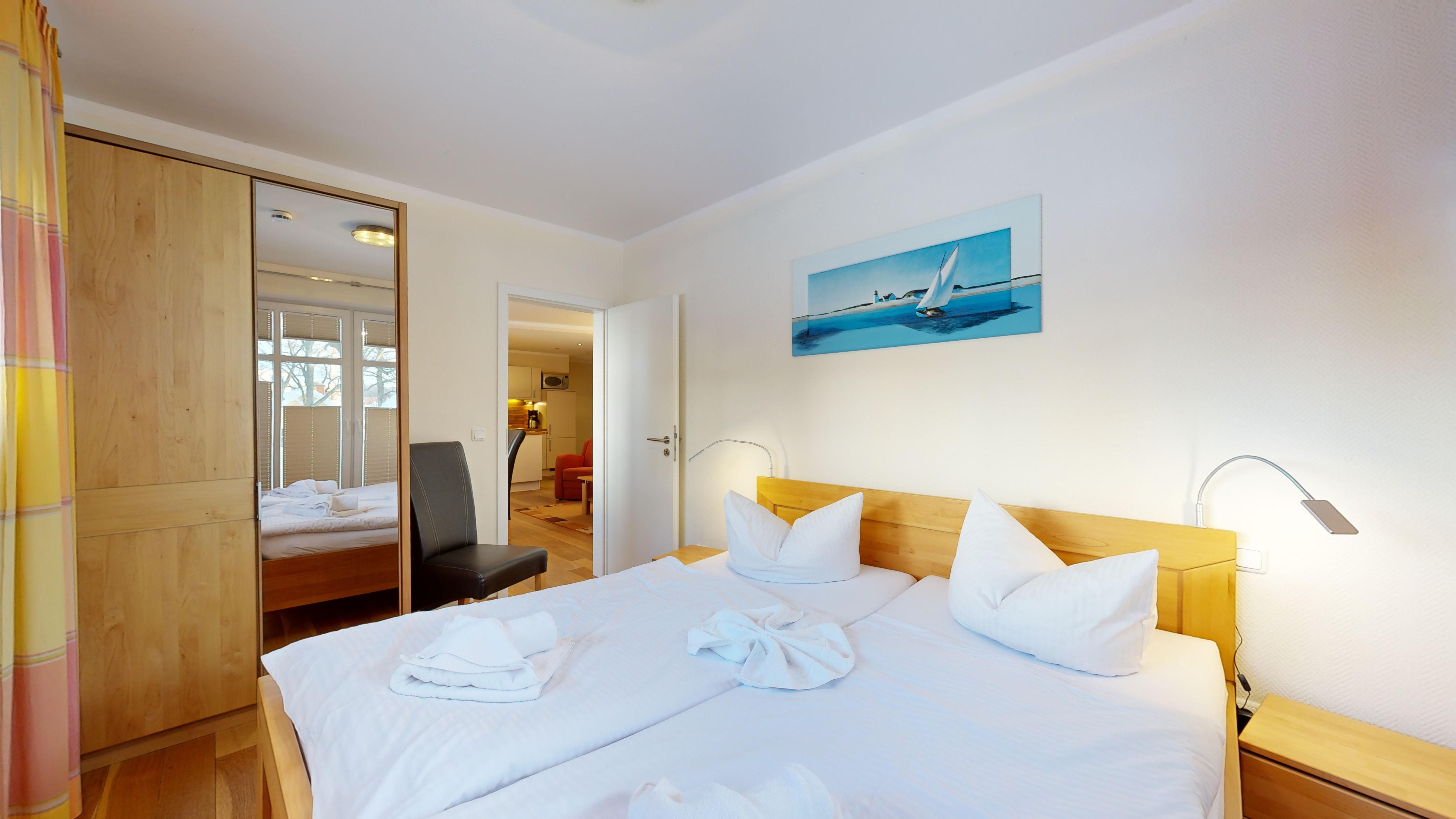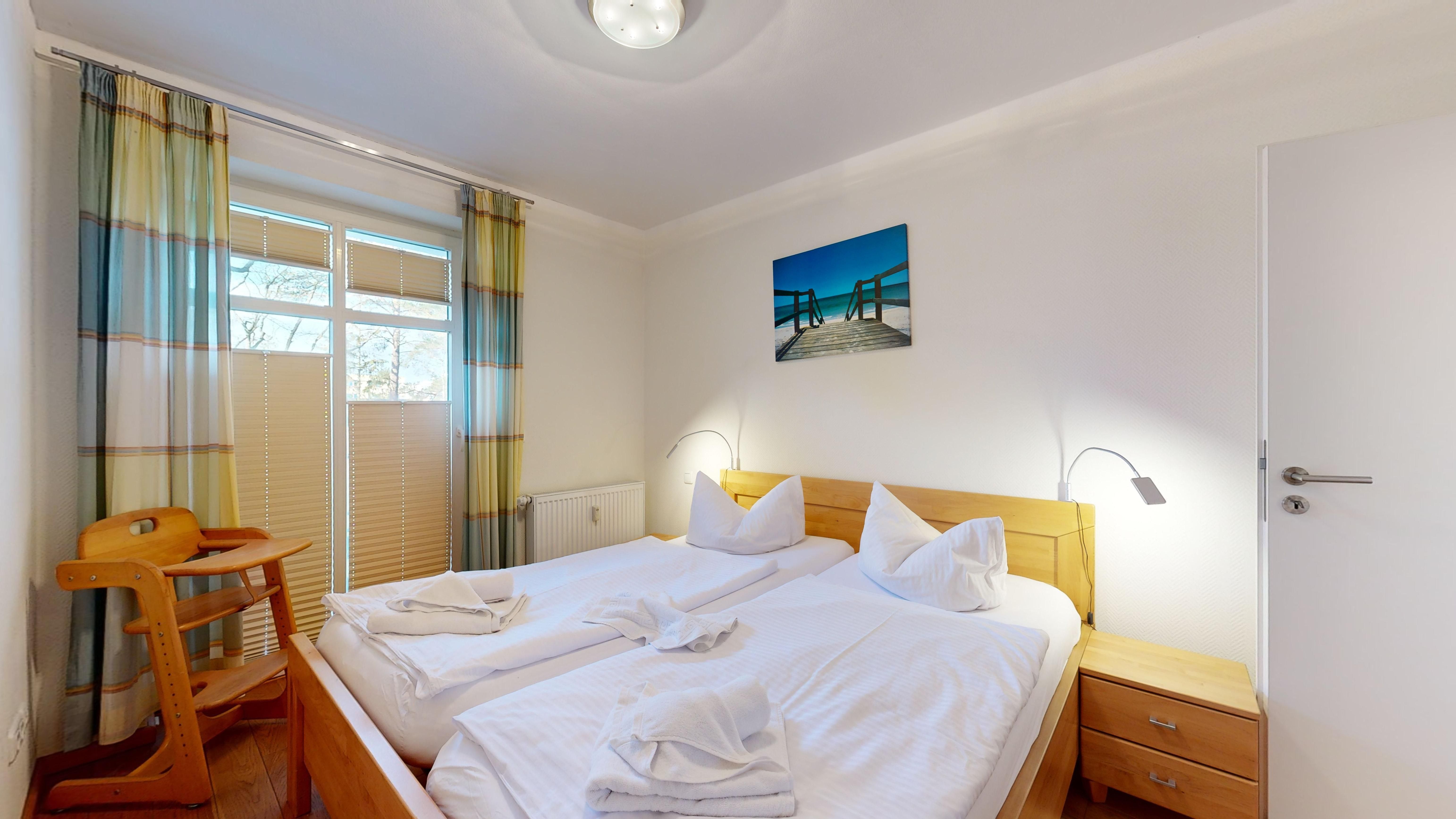 2 Schlafzimmer mit je einem Doppelbett (je Bett 200 x 90 cm)