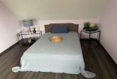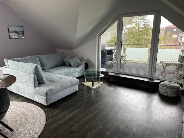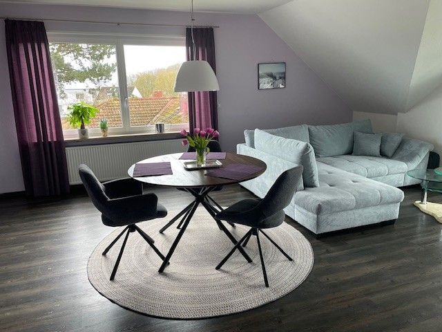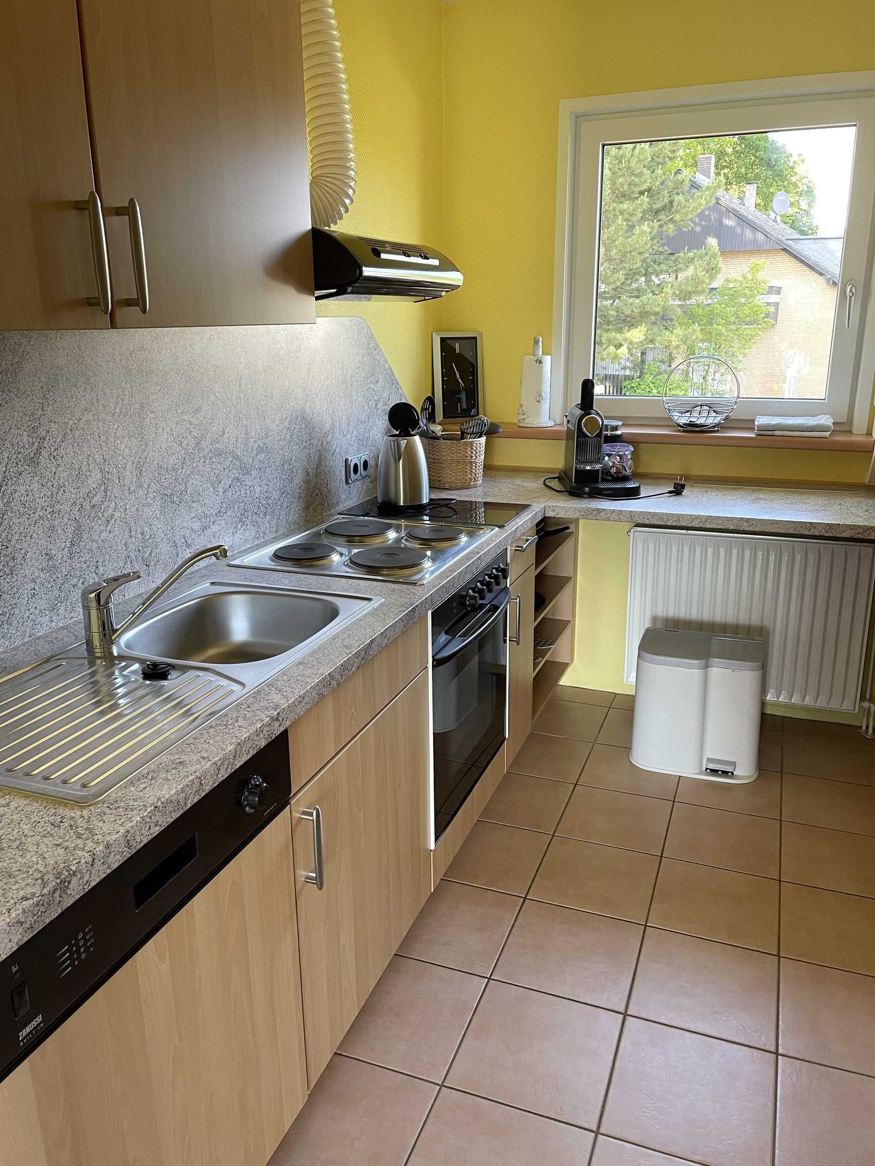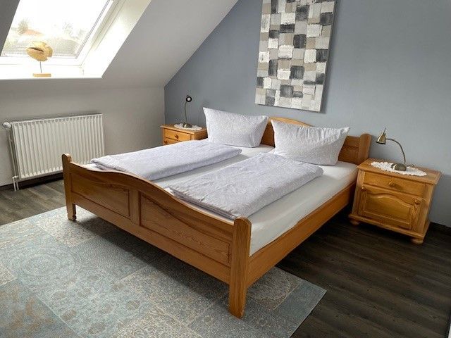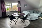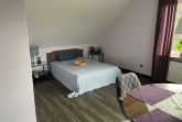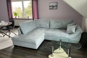 Die Ferienwohnung ist ca. 75 m² groß. Sie liegt im 1. Stock und ist großzügig und ruhig, modern und gemütlich eingerichtet. Die Wohnung besteht aus einem Schlafzimmer mit Doppelbett (2m x 2m), Küche, Bad mit Badewanne Dusche und WC. In dem großzügig geschnittenen Wohnbereich befindet sich noch ein Bett (1,40m x 2m). Gegenüber der Wohnung liegt ein zusätzlicher Schlafraum mit einem Einzelbett, der zur Wohneinheit dazu gehört. Im Wohn- und Schlafzimmer ist Designer-Vinyl verlegt. Es gibt eine große Loggia und die Wohnung ist eine Nichtraucherwohnung.