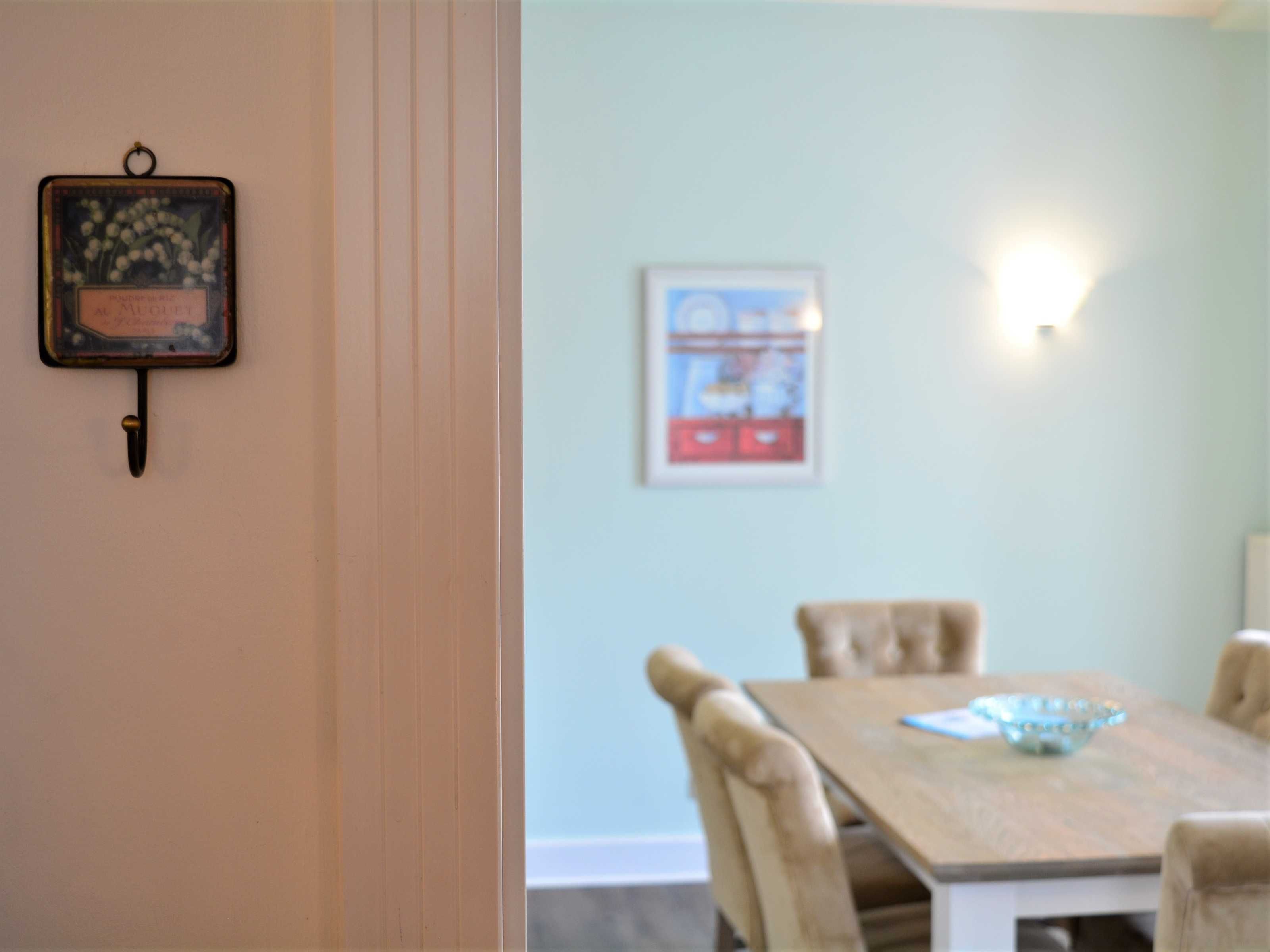 Sie können die Wohnung über 2 Türen betreten. Der Haupteingang führt Sie direkt zur offenen Wohnküche der geschmackvoll eingerichteten Ferienwohnung. Zentrales Element der Wohnküche ist der schöne große Esstisch mit 6 Stühlen. Die offene Küchenzeile bietet alle wichtigen Küchengeräte, die Sie für Ihren perfekten Urlaub an der Ostsee benötigen: Ein Backofen mit Dunstabzug und 4-Zonen-Ceranfeld, ein Geschirrspüler sowie ein Kühlschrank mit Gefrierfach befinden sich in der gut ausgestatteten Küche. Eine Kaffeemaschine, ein Wasserkocher, ein Toaster sowie genügend Geschirr und Kochutensilien komplettieren die Kücheneinrichtung. Von der Küche betreten Sie den kleineren, nach Westen ausgerichteten Balkon.