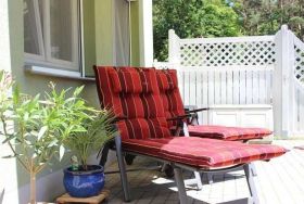 Im östlichen Teil von Graal-Müritz, nur 600 m vom breiten, feinsandigen Strand und 100 m vom Küstenwald entfernt, liegt unsere Ferienwohnung Seeanemone II. Als Gastgeber heißen wir Sie hier persönlich willkommen. Tanken Sie Ruhe und Kraft für den Alltag. Auf 66 m² Wohnfläche für 2-4 Personen finden Sie den Komfort, den Sie sich wünschen: Der Flur und Wohnbereich ist in Erd- und Muscheltönen mit viel Holz gestaltet. Die großzügige Terrasse lädt zum Sonnenbaden und Entspannen ein.