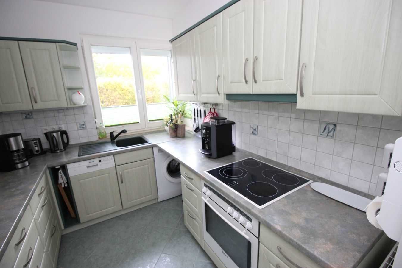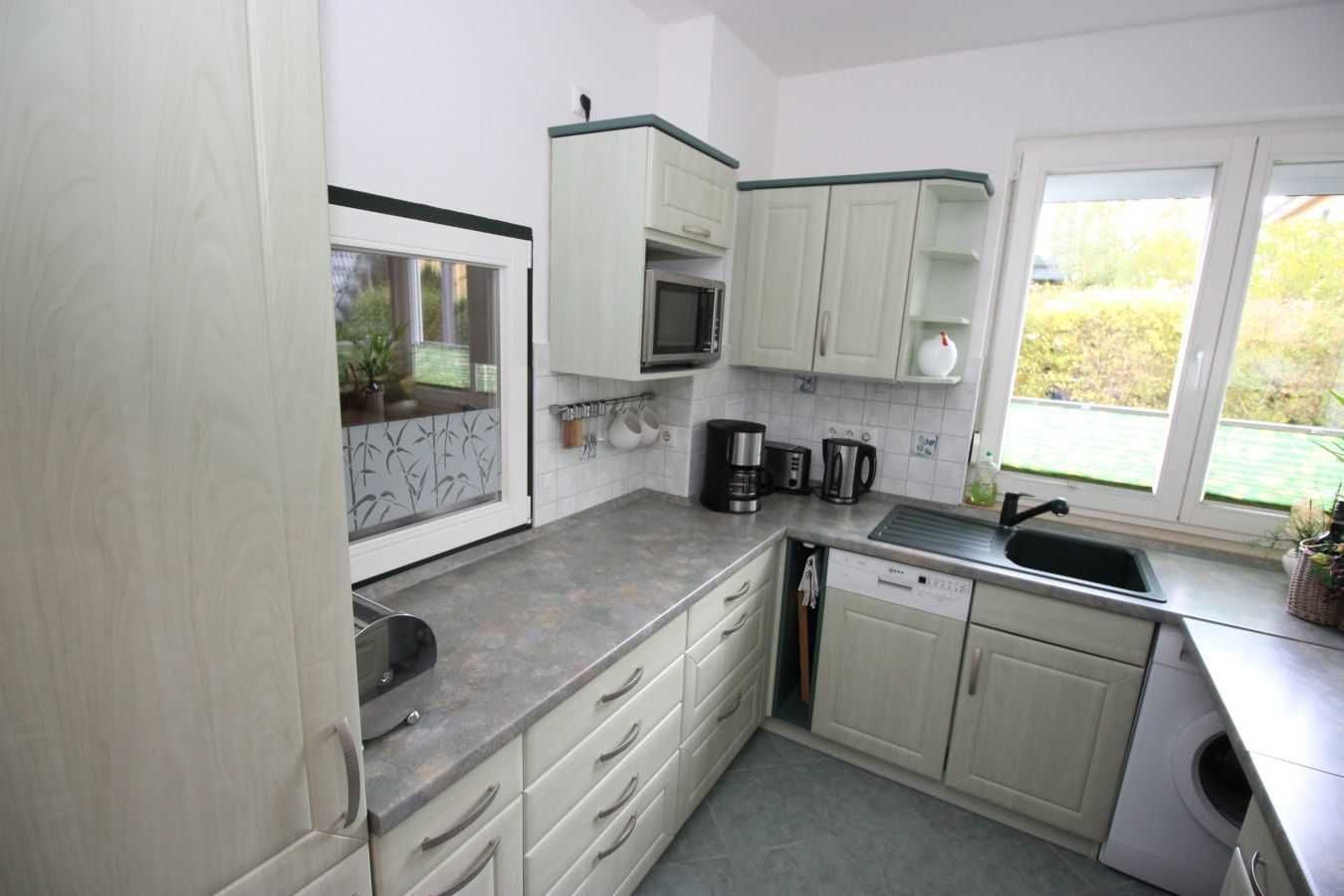 ausgestattet mit Mikrowelle, Ceran-Kochfeld, Dunstabzug, Geschirrspüler und Kühl- und Gefrierschrank