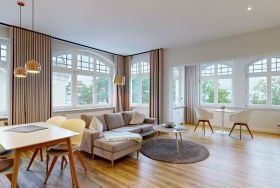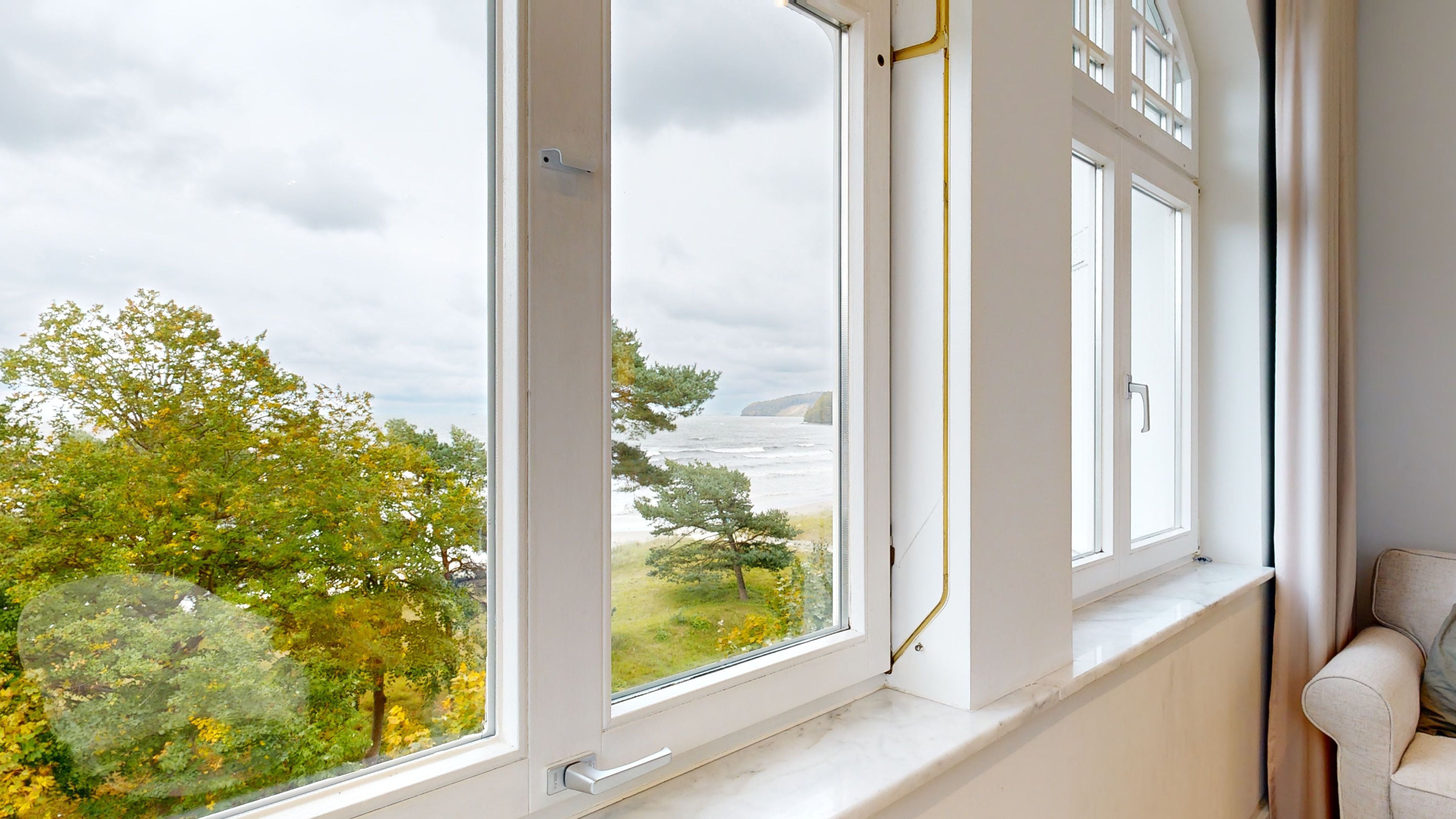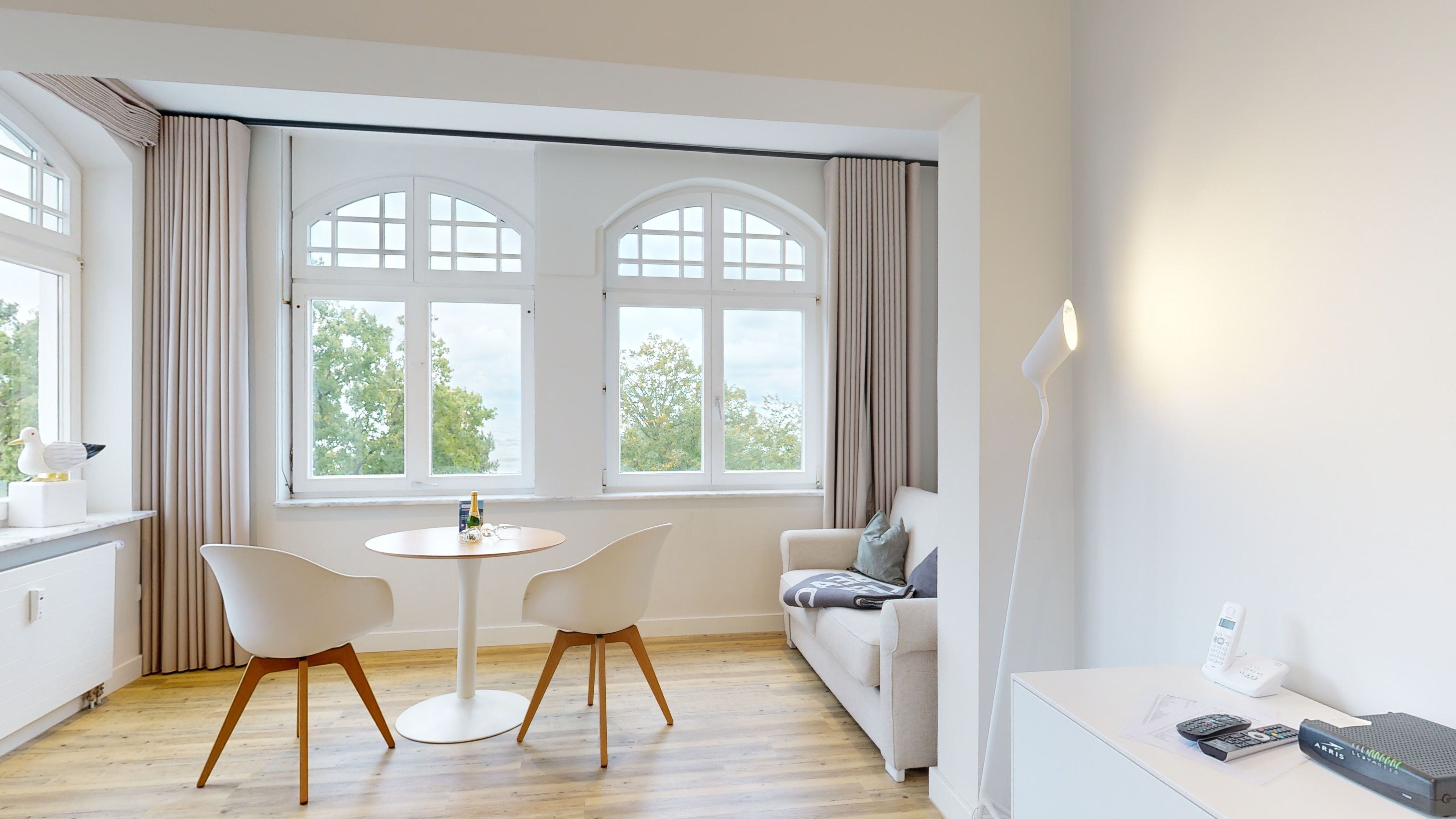 Komfort-Ferienwohnung in der Villa Sirene für 4 Personen in der 3. Etage ( 3 Zimmer / 55 m²) mit einem Schlafzimmer und einer Loggia mit herrlichem Ostseeblick