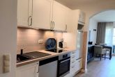 - Wohn/Schlafbereich mit Schlafcouch, integrierter Küche und Essplatz