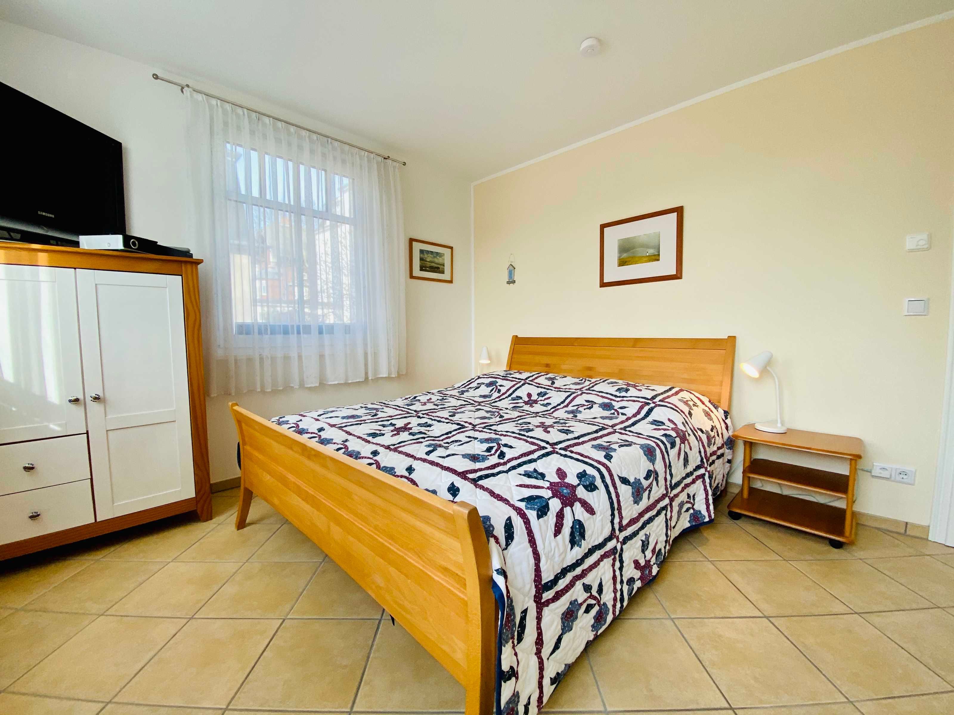 Zur Wohnung gehören zwei große Schlafzimmer mit Doppelbetten sowie ein kleines Schlafzimmer mit Einzelbett. Es gibt ein Badezimmer mit Dusche und Waschmaschine und zusätzlich ein Gäste-WC.Die zwei Balkone - einer mit Blick auf den Schloonsee und einer in Richtung See laden zum verweilen ein.