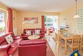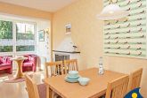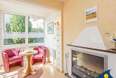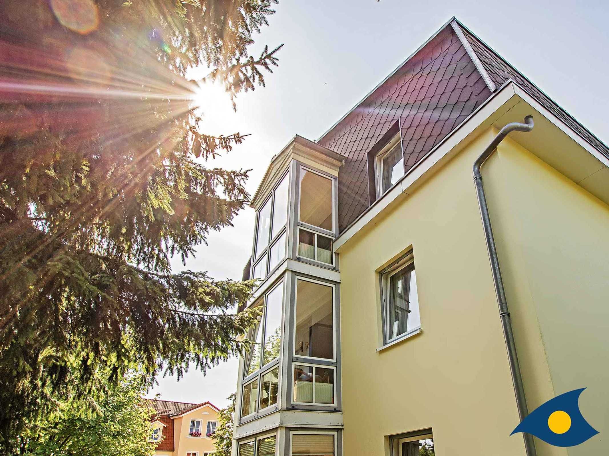Die Wohnung 13 in der Villa Cosima liegt im Erdgeschoss des Hauses. In dem großzügigen Wohnraum begrüßt Sie eine bequeme Sofalandschaft, eine gut ausgestattete Küchenzeile, eine Essecke und der südlich ausgerichtete Wintergarten mit zwei gemütlichen Sesseln.
