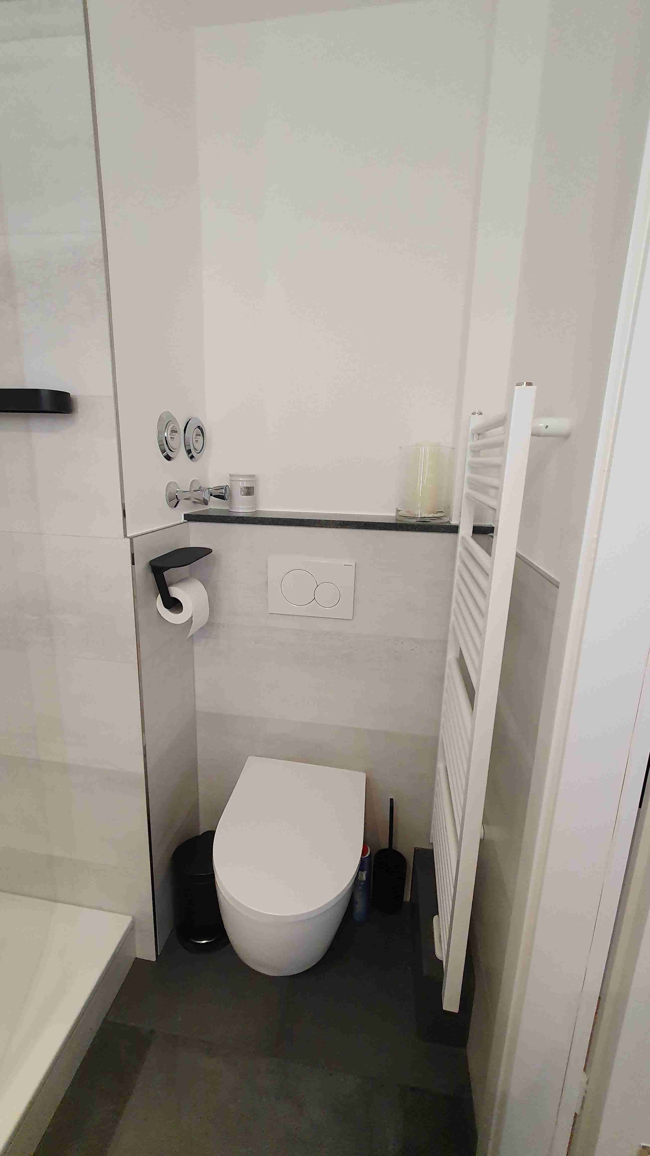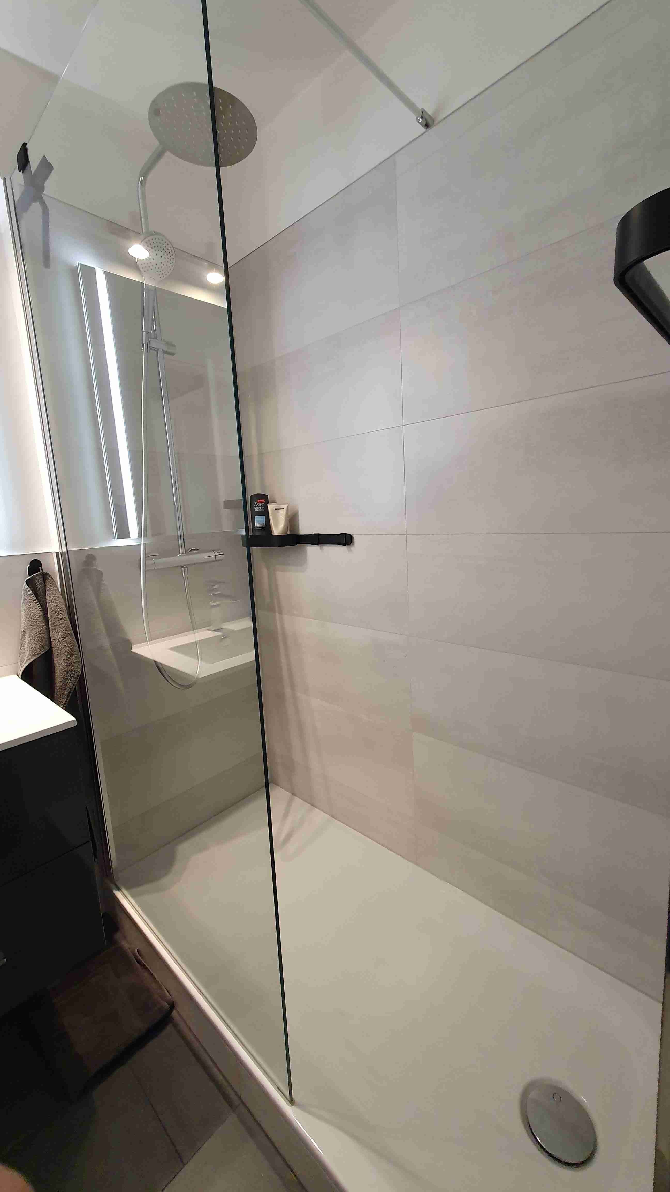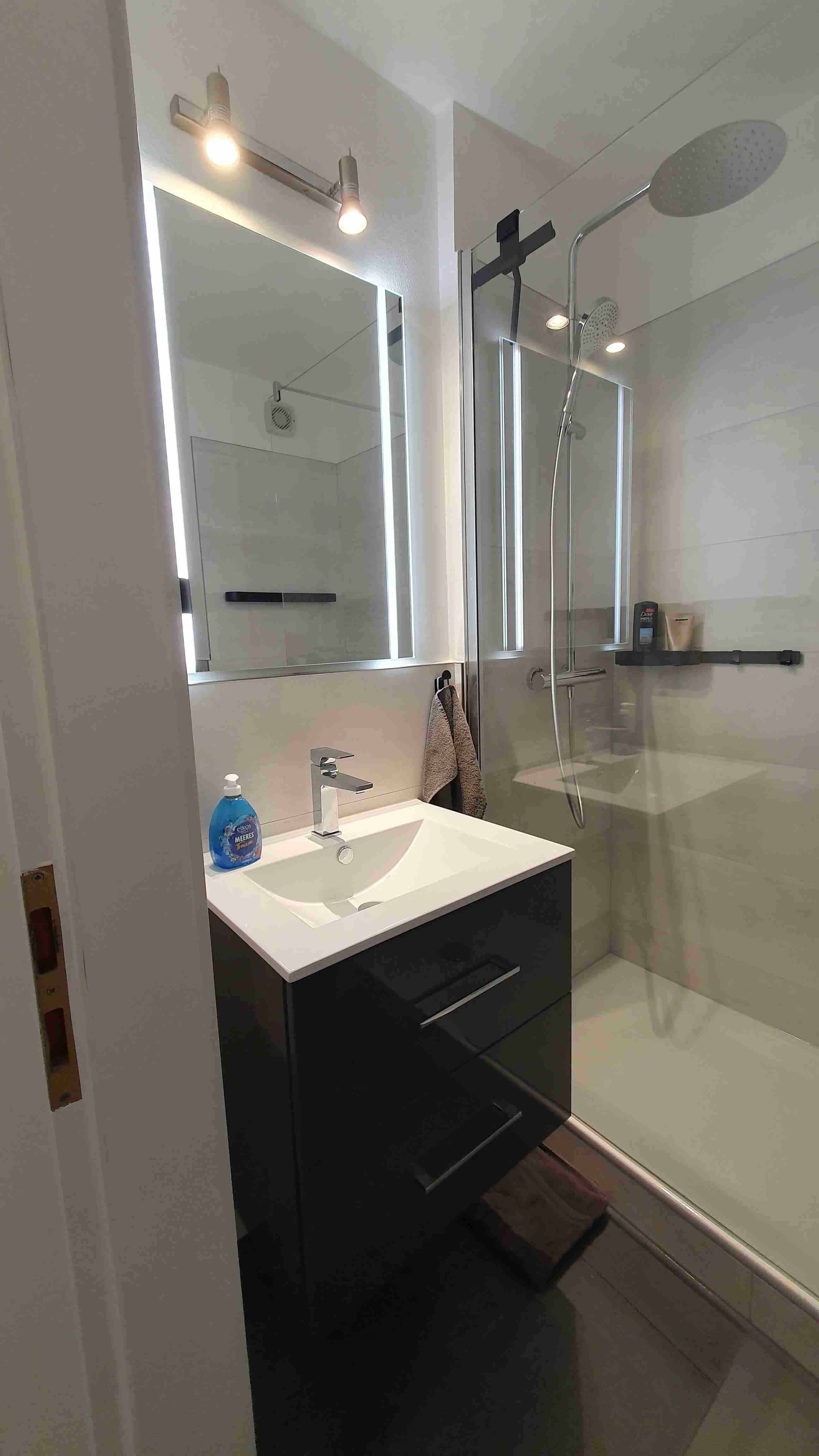 • Bad/WC mit begehbarer offener Regendusche (Walk-In), Fön