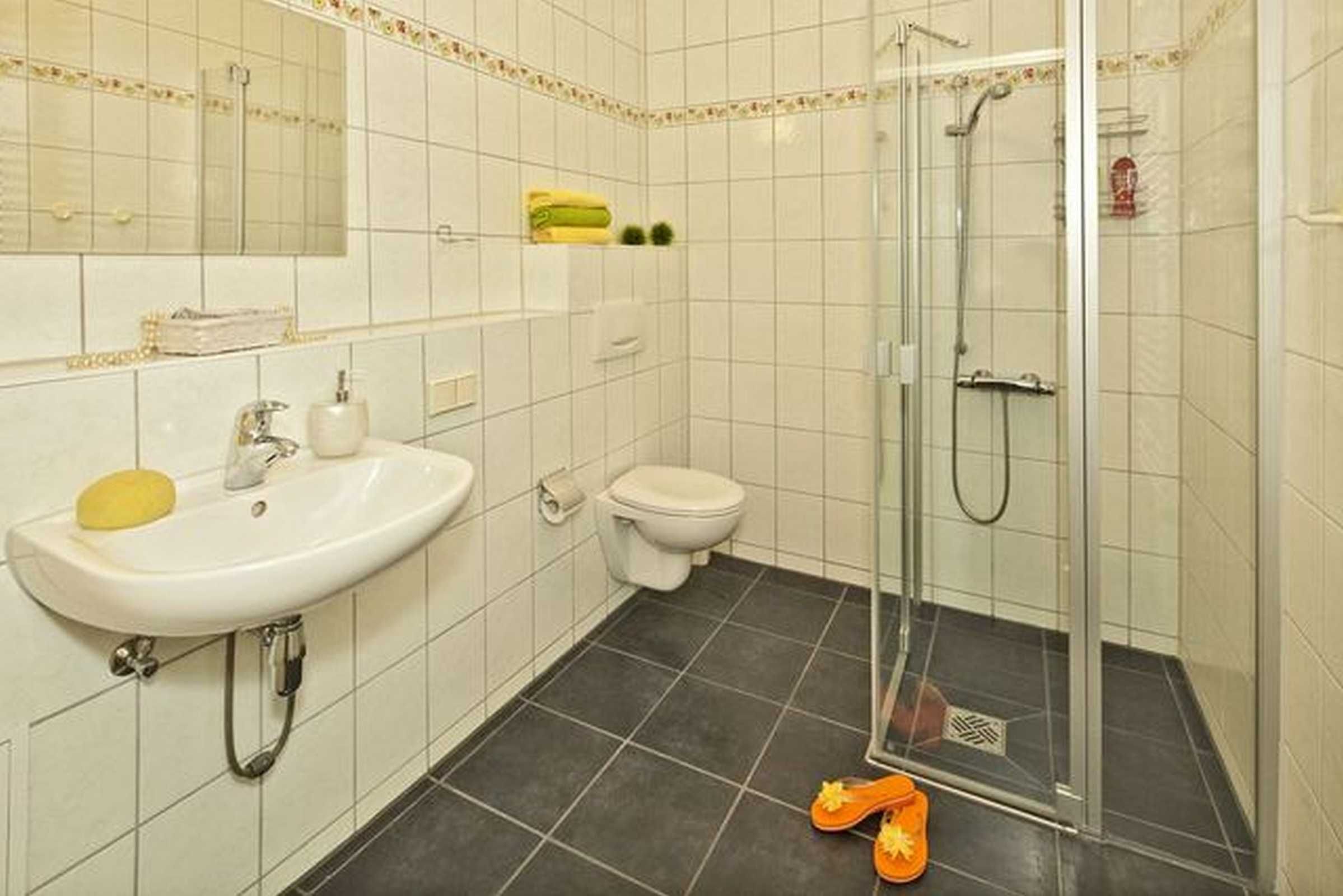 Die modern und komfortabel eingerichtete Ferienwohnung im Erdgeschoss des Hauses Ostpreußen ist ca. 50qm groß und bietet 2 bis 3 Personen Platz zum Wohlfühlen. Das Wohnzimmer ist mit einer Sitzgruppe, einem Flachbildfernseher und einem Elektrokamin ausgestattet. Die offene Küchenzeile mit einem Elektroherd ist komplett ausgestattet (inkl. Geschirrspüler). Im Erkerzimmer befindet sich eine gemütliche Schlafcouch. Das Schlafzimmer verfügt über ein Doppelbett , einen Kleiderschrank und einen weiteren Flachbildfernseher mit DVD-Player (Ausreichend Platz für ein Kinderbett). Das Duschbad ist modern und zweckmäßig ausgestattet. Ein eigener Parkplatz direkt am Haus ist selbstverständlich und ein kostenfreies WLAN Netzwerk steht Ihnen ebenfalls zur Verfügung.