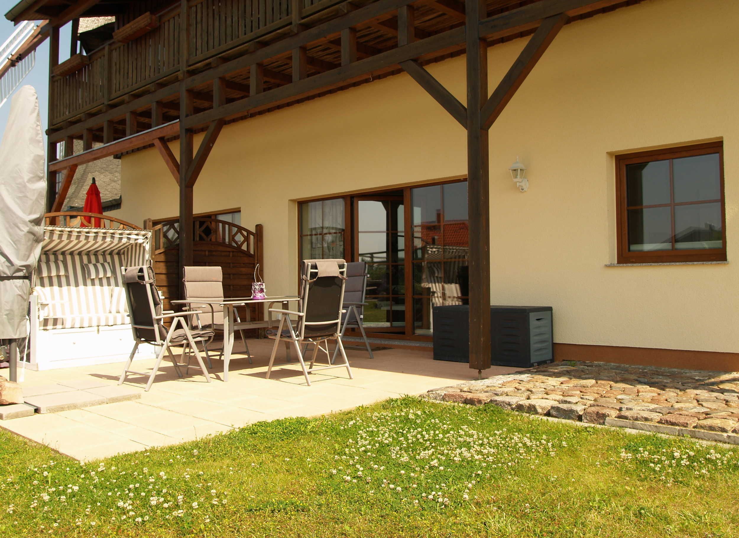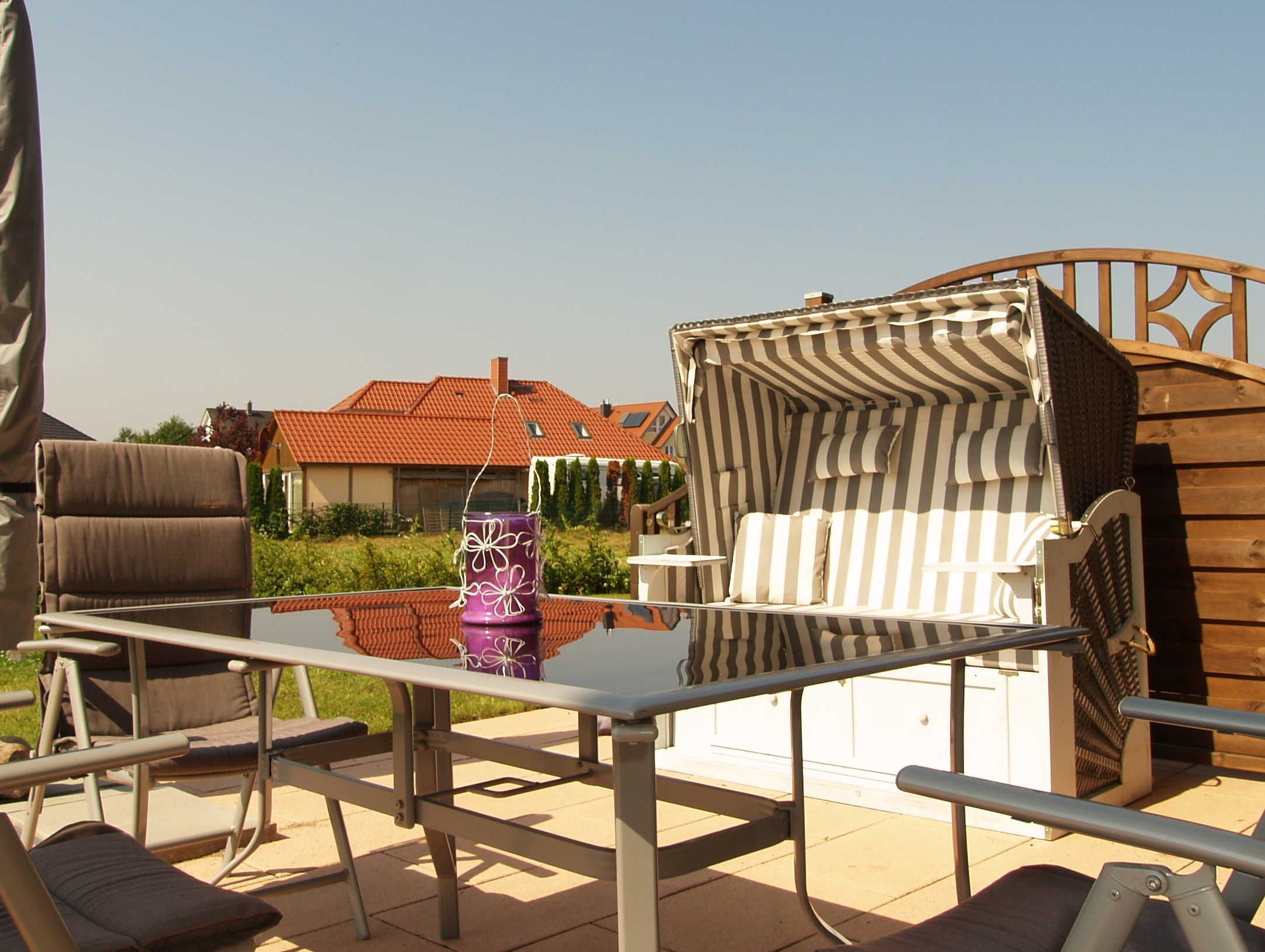 LIEBEVOLL EINGERICHTETE FERIENWOHNUNG MIT GROSSER TERRASSE MIT GARTENBEREICH UND STRANDKORB