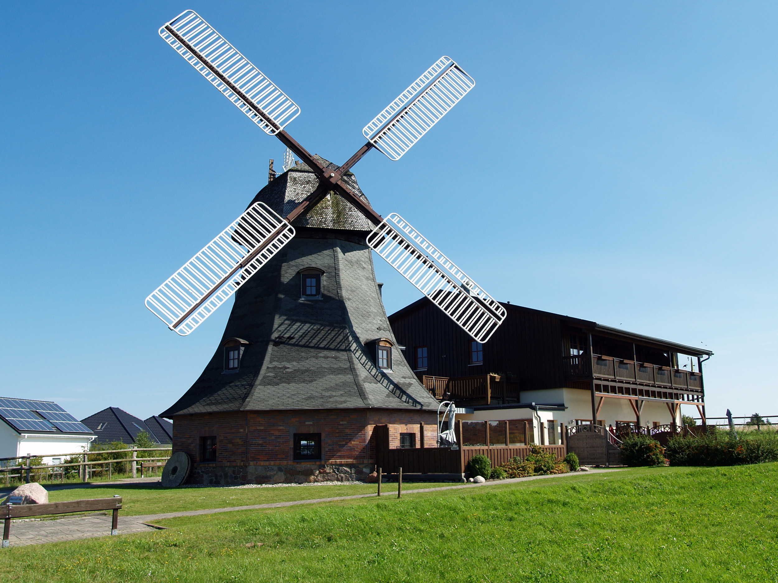 Einstmals, als sich noch die großen Flügel stolz im Winde drehten, als der Windmüller noch auf der sogenannten Schwippstelgen stand und prüfend Wind und Wetter beobachtete, stand diese Mühle im Zentrum des dörflichen Lebens von Brunshaupten eines der drei Fischerdörfer aus denen das heutige Ostseebad Kühlungsborn entstand. Schon fast seltsam mutet der Anblick einer noch mit Flügeln bewehrten Windmühle an.