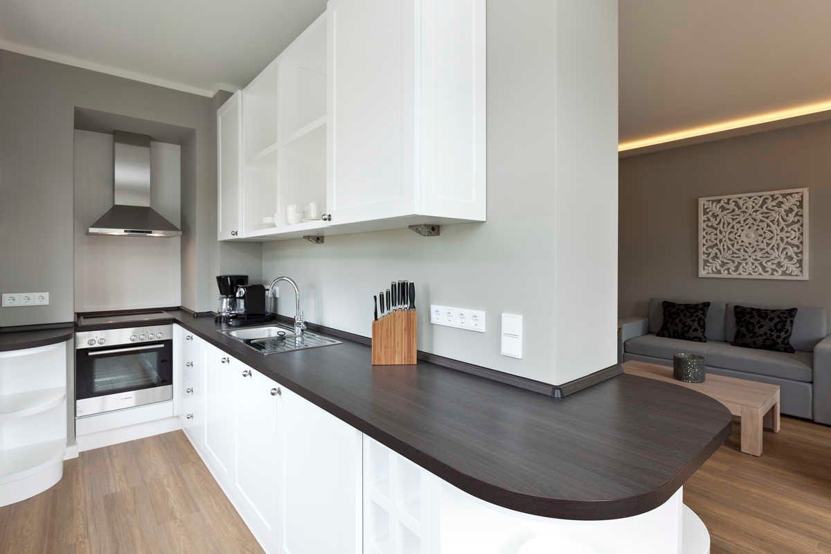 Alle unsere exklusiven Ferienwohnungen haben voll ausgestattete Küchen und großzügige Wohn- und Essräume mit allem Komfort mit großen Balkonen/Terrassen.