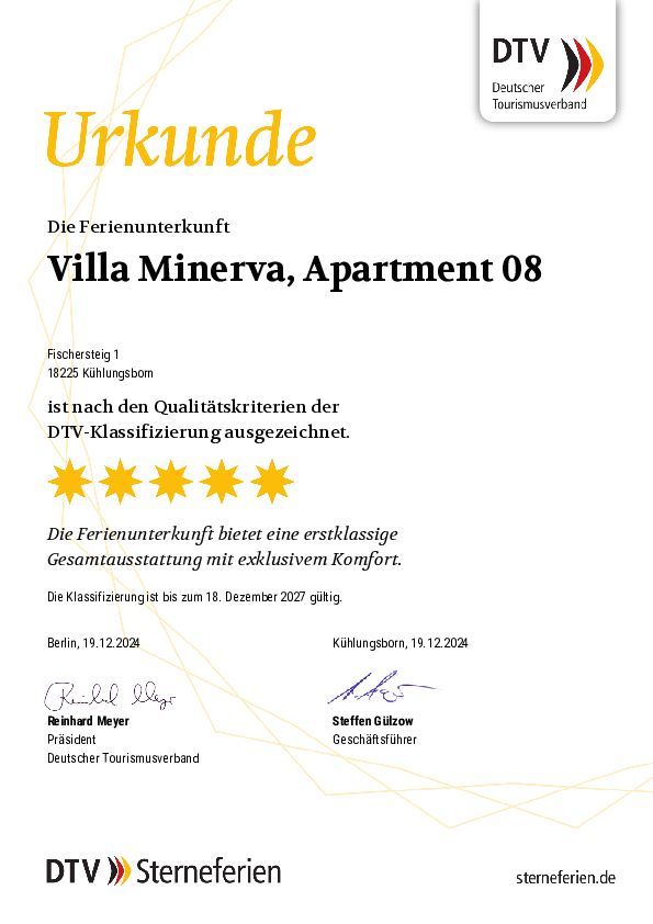 Ferienapartments mit 5*****Sternen nach DTV-Klassifizierung in der historischen „Villa Minerva“