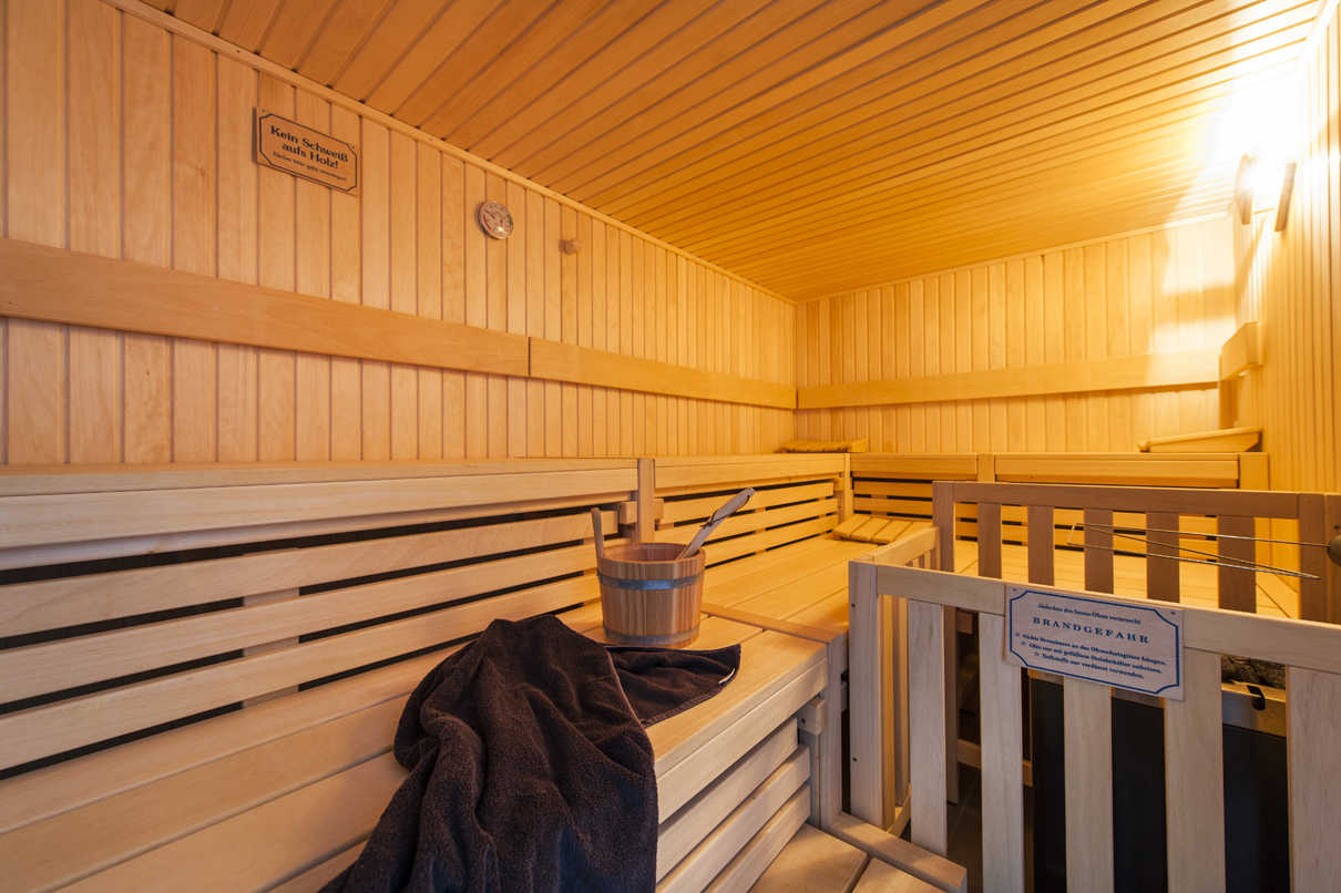 Zum Relaxen lädt der hochwertige Sauna- und Wellnessbereich ein, der sich im neuen Anbau der Villa befindet. Nach dem Saunagang können Sie sich im großzügigen Ruheraum erholen.