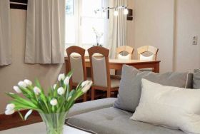 Das Ferienhaus Strandperle ist komfortabel und modern eingerichtet. Wohnzimmer mit gemütlicher Sitzecke (Schlafcouch für 1 Aufbettung Kind bis 14 Jahre), TV-Flachbildfernseher, offene Küchenzeile mit Backofen, Kühlschrank und Esstisch. Im Schlafzimmer steht ein Doppelbett und ein Kleiderschrank. Das Bad ist ausgestattet mit einem Waschbecken, Dusche und WC. Auf der möblierten Holzterrasse lassen Sie den Urlaubstag entspannt ausklingen.