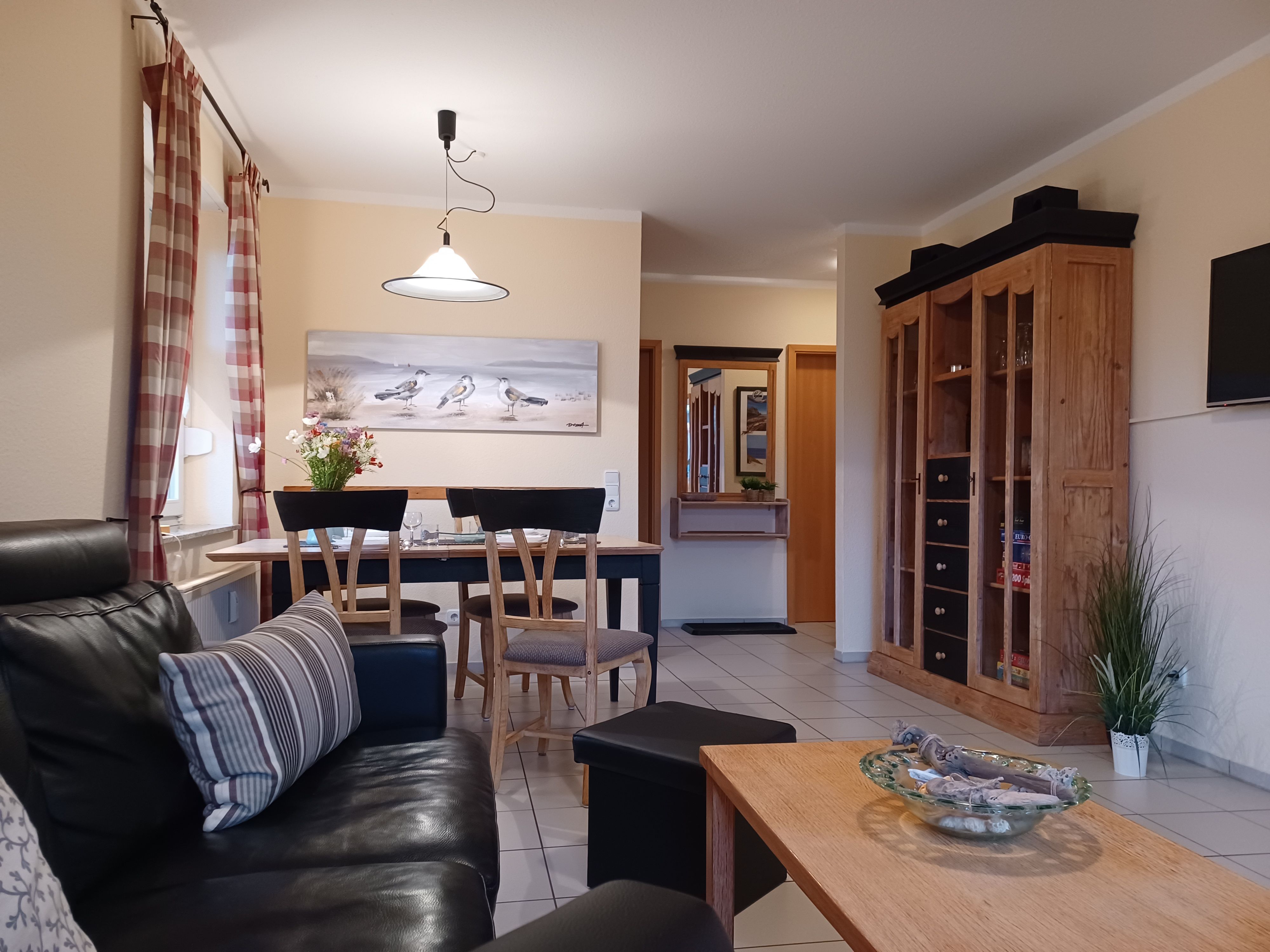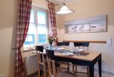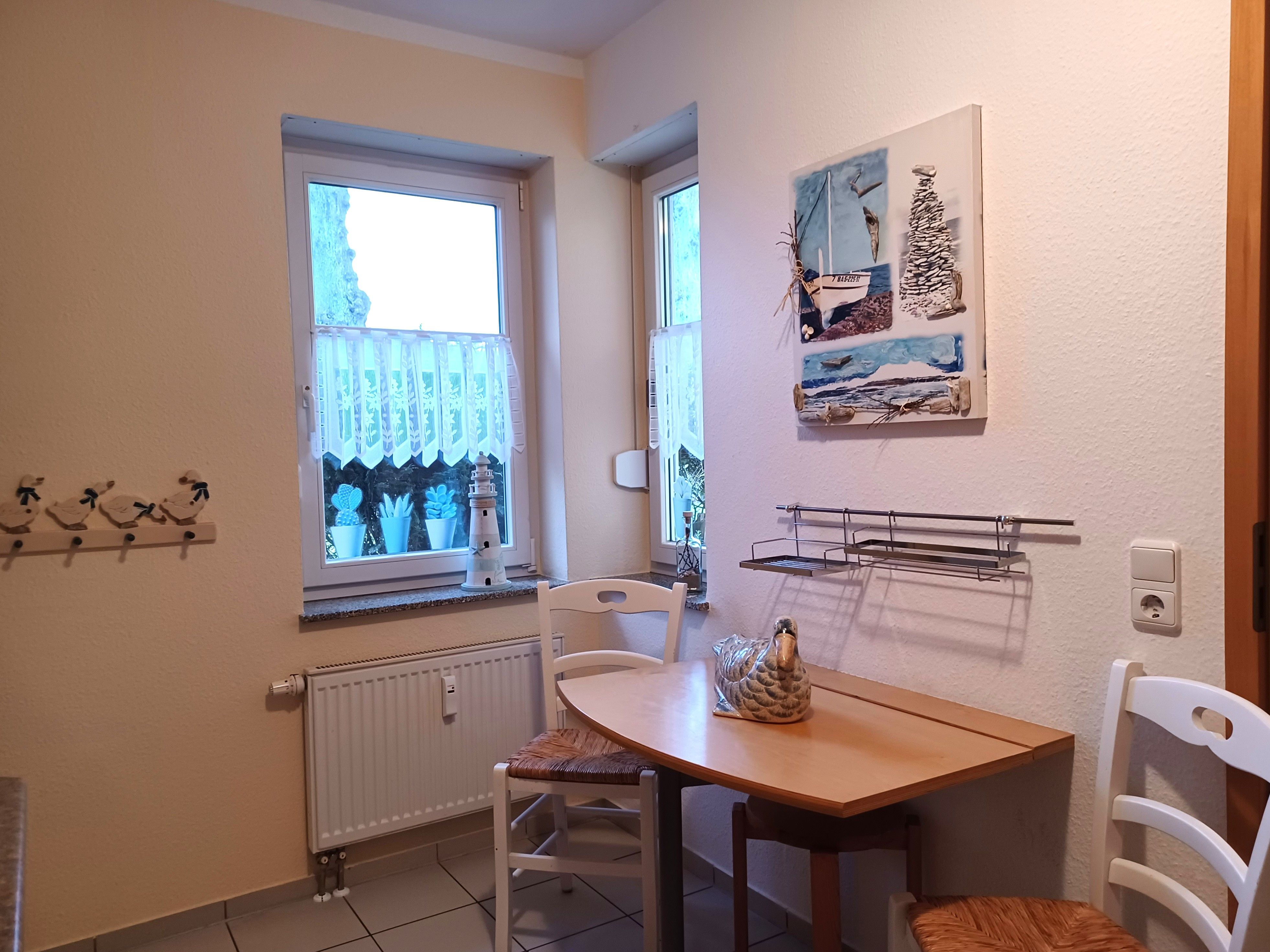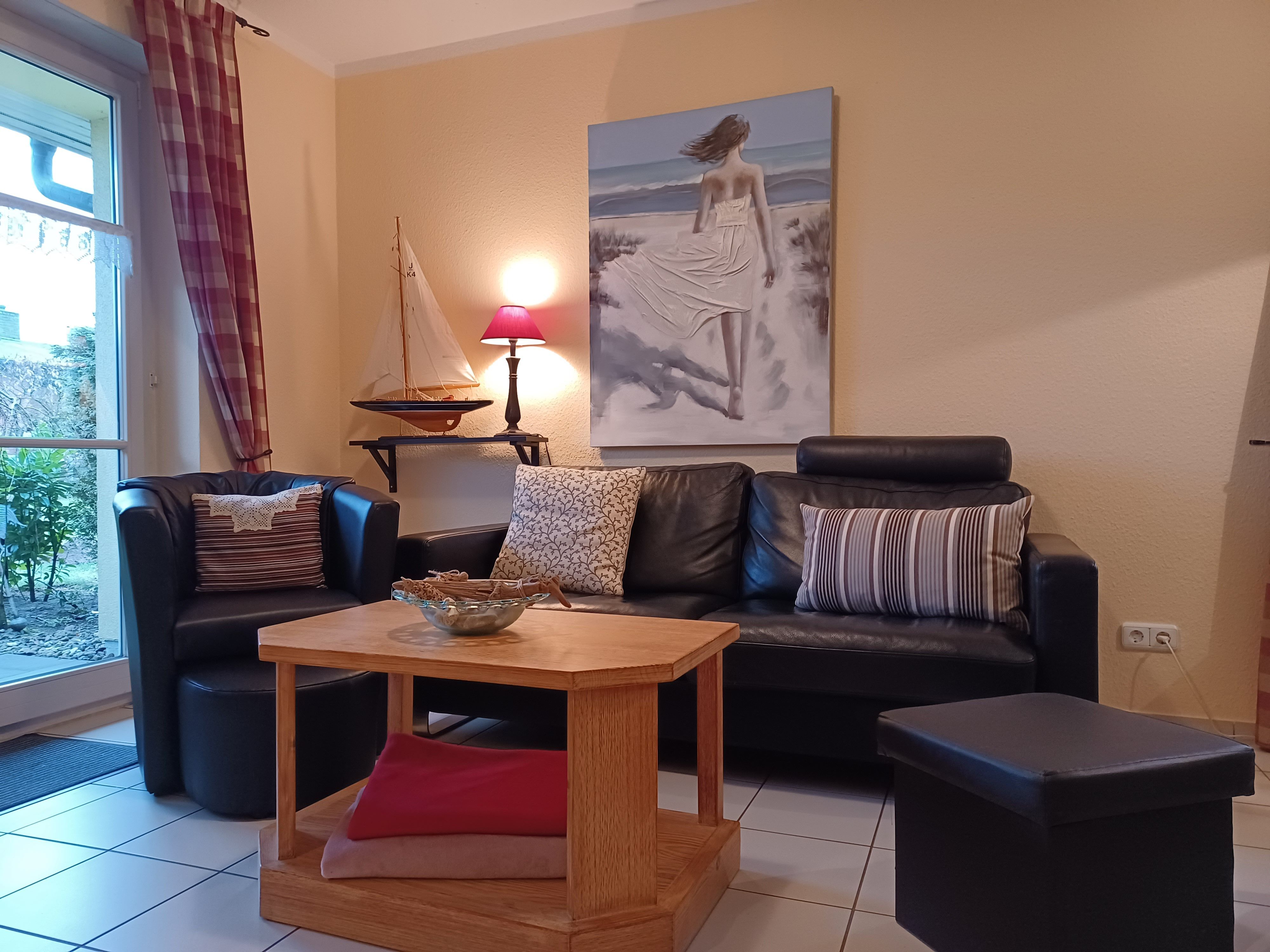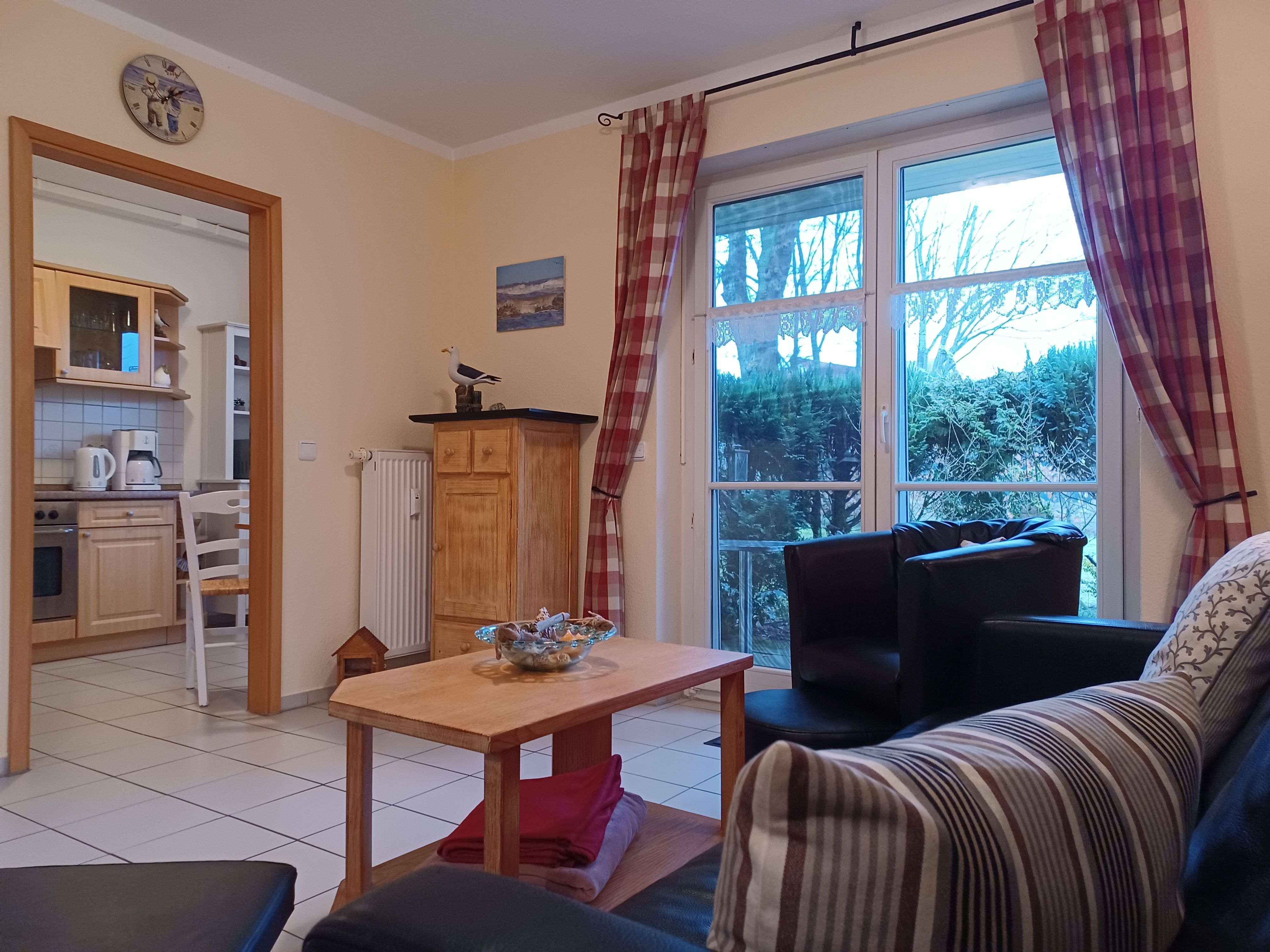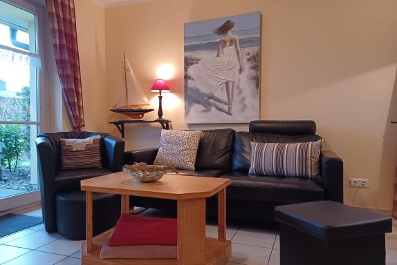die zentral gelegene und hochwertig ausgestattete Ferienwohnung im Erdgeschoss in der Schmiedestraße ist für bis zu 4 Personen geeignet. Direkt am Wohnzimmer gelangen Sie auf die Südseitige Terrasse. Das Wohnzimmer ist mit SAT- TV, Essplatz und einer gemütlichen Couch ausgestattet. Die offene Küchenzeile lädt zum Kochen mit einer reich ausgestatteten Kücheneinrichtung ein, dazu gehört ein Herd mit Backofen und Cerankochfeld, Kühlschrank mit Gefrierfach, Mikrowelle und ein Geschirrspüler.Das Schlafzimmer ist ausgestattet mit einem Doppelbett 1,80 x 2,00 m und das Kinderzimmer mit einem Etagenbett für unsere kleinen Gäste.Das innenliegende Badezimmer verfügt über eine Dusche und Waschmaschine. Den feinsandigen Strand an der Seebrücke erreichen Sie in ca. 15 min. Fußweg, dafür steht ein faltbarer Bollerwagen bereit. Die Bettwäsche ist inclusive und Handtücher können bei der Zimmervermittlung für 7,00 € pro Person dazugebucht werden. (1 Badetuch, 1 Handtuch). Die Ferienwohnung verfügt über einen WLAN- Gästezugang. Für unsere kleinen Gäste steht ein Kinderhochstuhl bereit. Ein Kinderbett kann für 10,00 € pro Woche in der Zimmervermittlung zugebucht werden. Der Parkplatz Nr. 9 befindet sich direkt vor dem Haus.