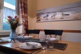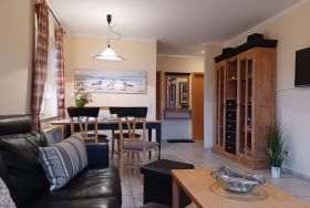 die zentral gelegene und hochwertig ausgestattete Ferienwohnung im Erdgeschoss in der Schmiedestraße ist für bis zu 4 Personen geeignet. Direkt am Wohnzimmer gelangen Sie auf die Südseitige Terrasse. Das Wohnzimmer ist mit SAT- TV, Essplatz und einer gemütlichen Couch ausgestattet. Die offene Küchenzeile lädt zum Kochen mit einer reich ausgestatteten Kücheneinrichtung ein, dazu gehört ein Herd mit Backofen und Cerankochfeld, Kühlschrank mit Gefrierfach, Mikrowelle und ein Geschirrspüler.Das Schlafzimmer ist ausgestattet mit einem Doppelbett 1,80 x 2,00 m und das Kinderzimmer mit einem Etagenbett für unsere kleinen Gäste.Das innenliegende Badezimmer verfügt über eine Dusche und Waschmaschine. Den feinsandigen Strand an der Seebrücke erreichen Sie in ca. 15 min. Fußweg, dafür steht ein faltbarer Bollerwagen bereit. Die Bettwäsche sind inclusive, Handtücher können bei der Zimmervermittlung für 7,00 € (1 Badetuch, 1 Handtuch) dazugebucht werden. (1 Badetuch, 1 Handtuch). Die Ferienwohnung verfügt über einen WLAN- Gästezugang. Für unsere kleinen Gäste steht ein Kinderhochstuhl bereit. Ein Kinderbett kann für 10,00 € pro Woche in der Zimmervermittlung zugebucht werden. Der Parkplatz Nr. 9 befindet sich direkt vor dem Haus.