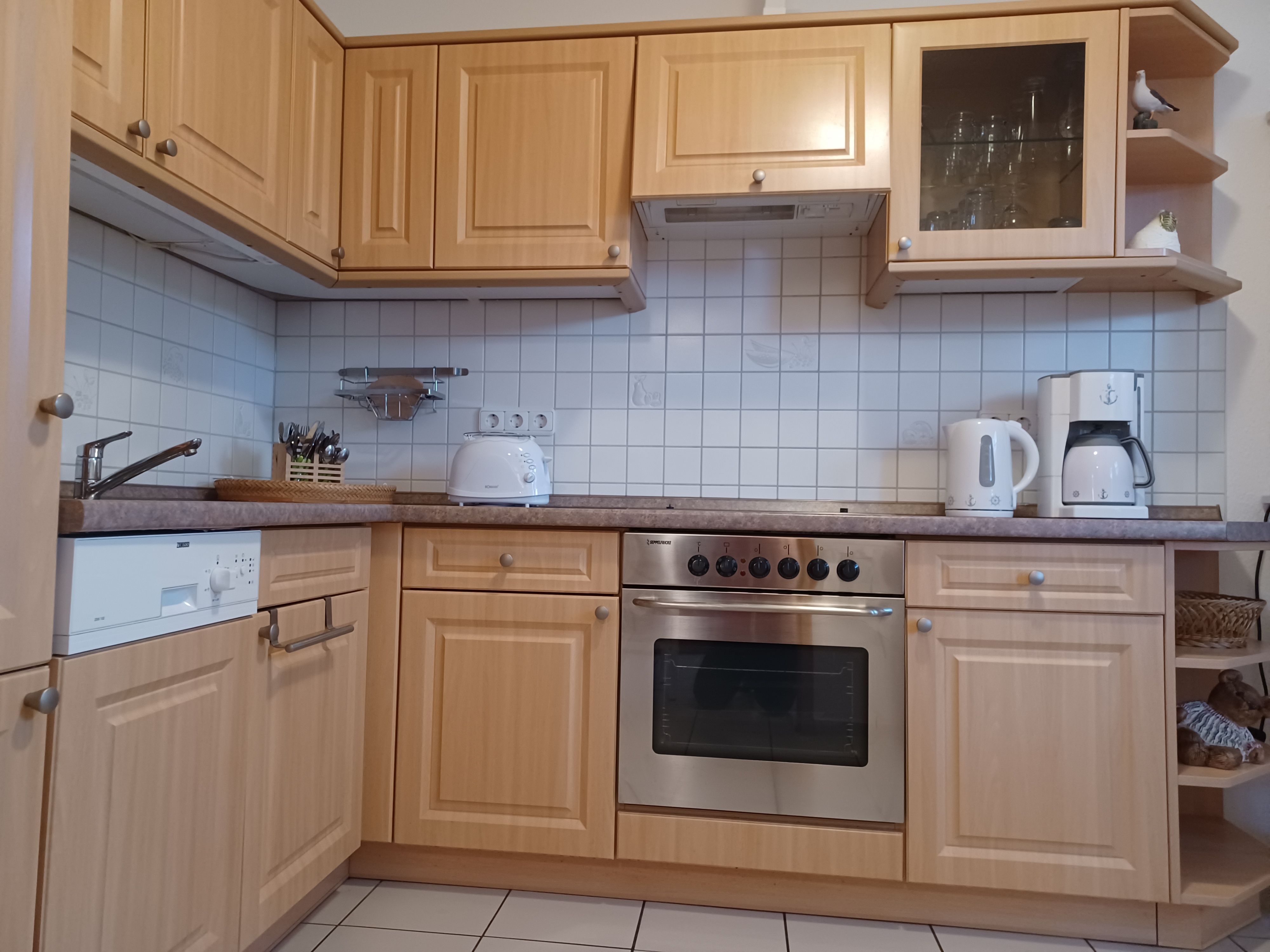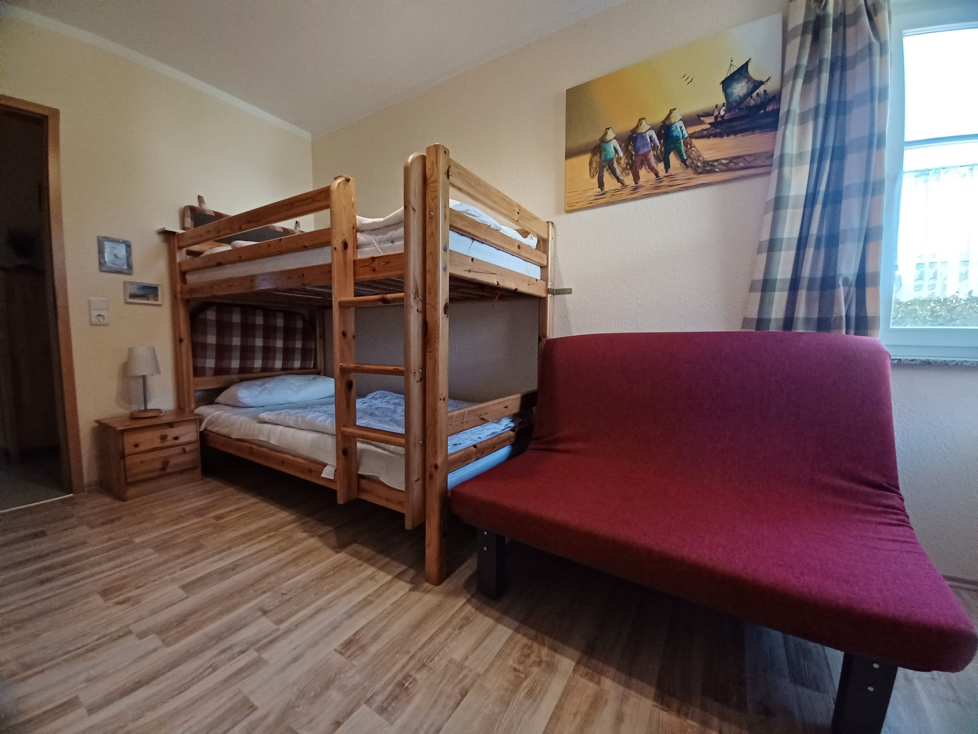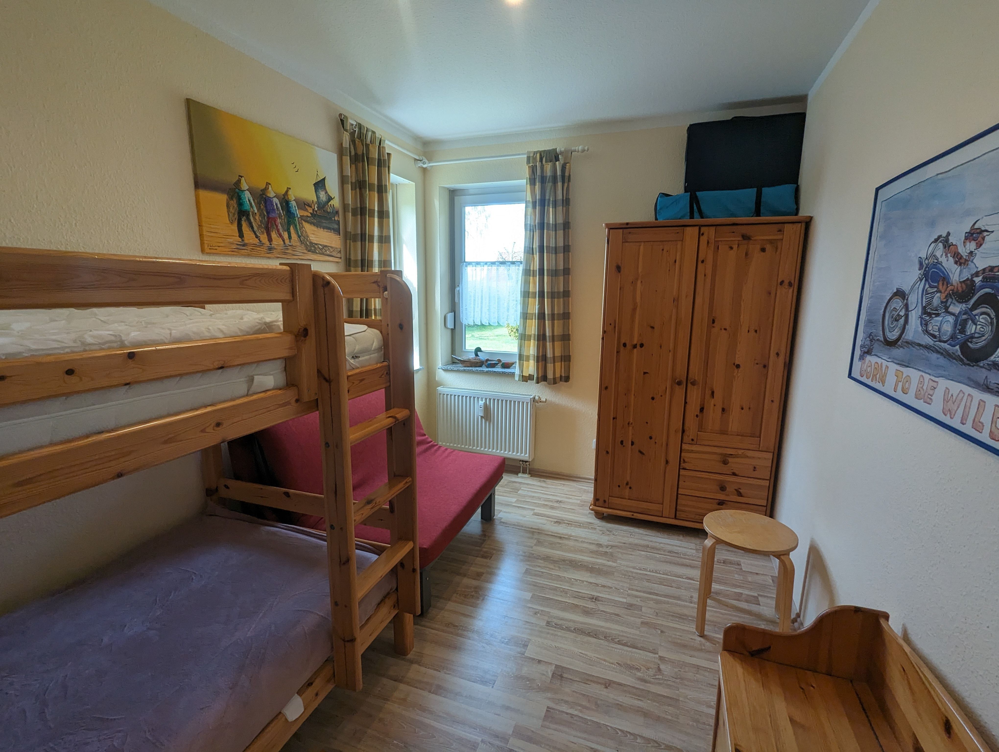 Ausstattung: Etagenbett: 1, Küchenzeile, Toaster, Wasserkocher, Kühlschrank mit Gefrierfach, Mikrowelle, Geschirrspüler, Kaffeemaschine, Herd mit Backofen, Waschmaschine, Dusche, Fön, TV, WLAN