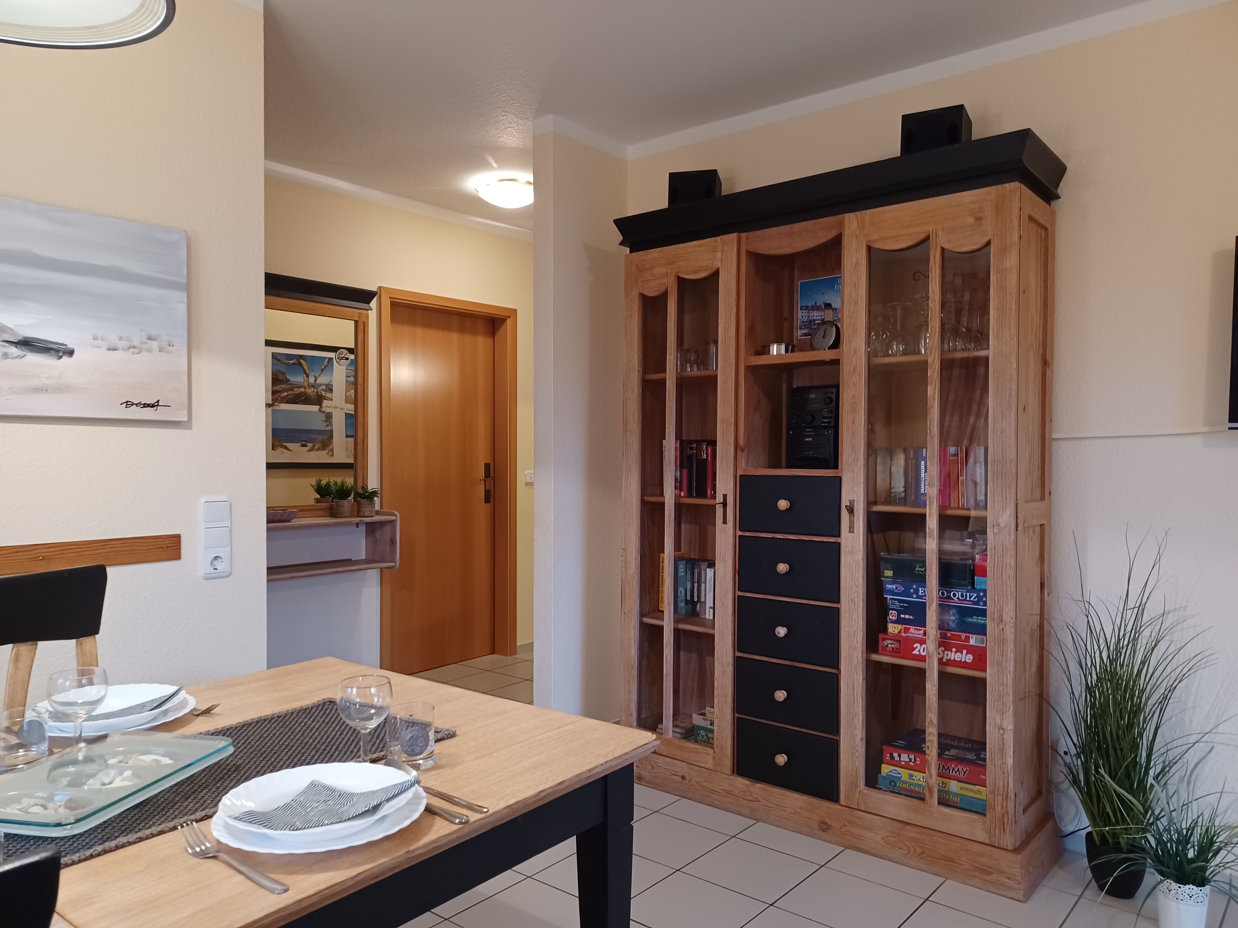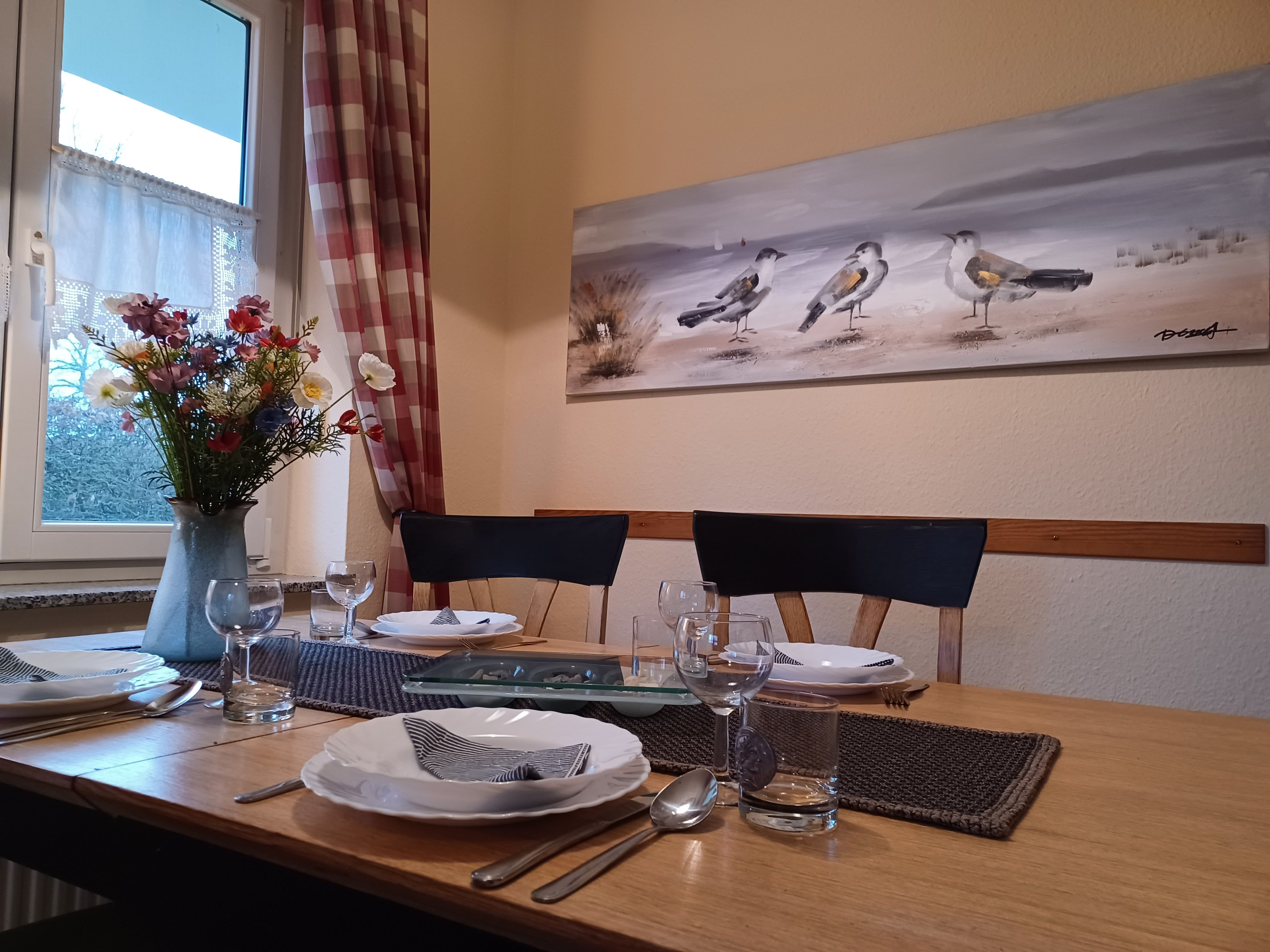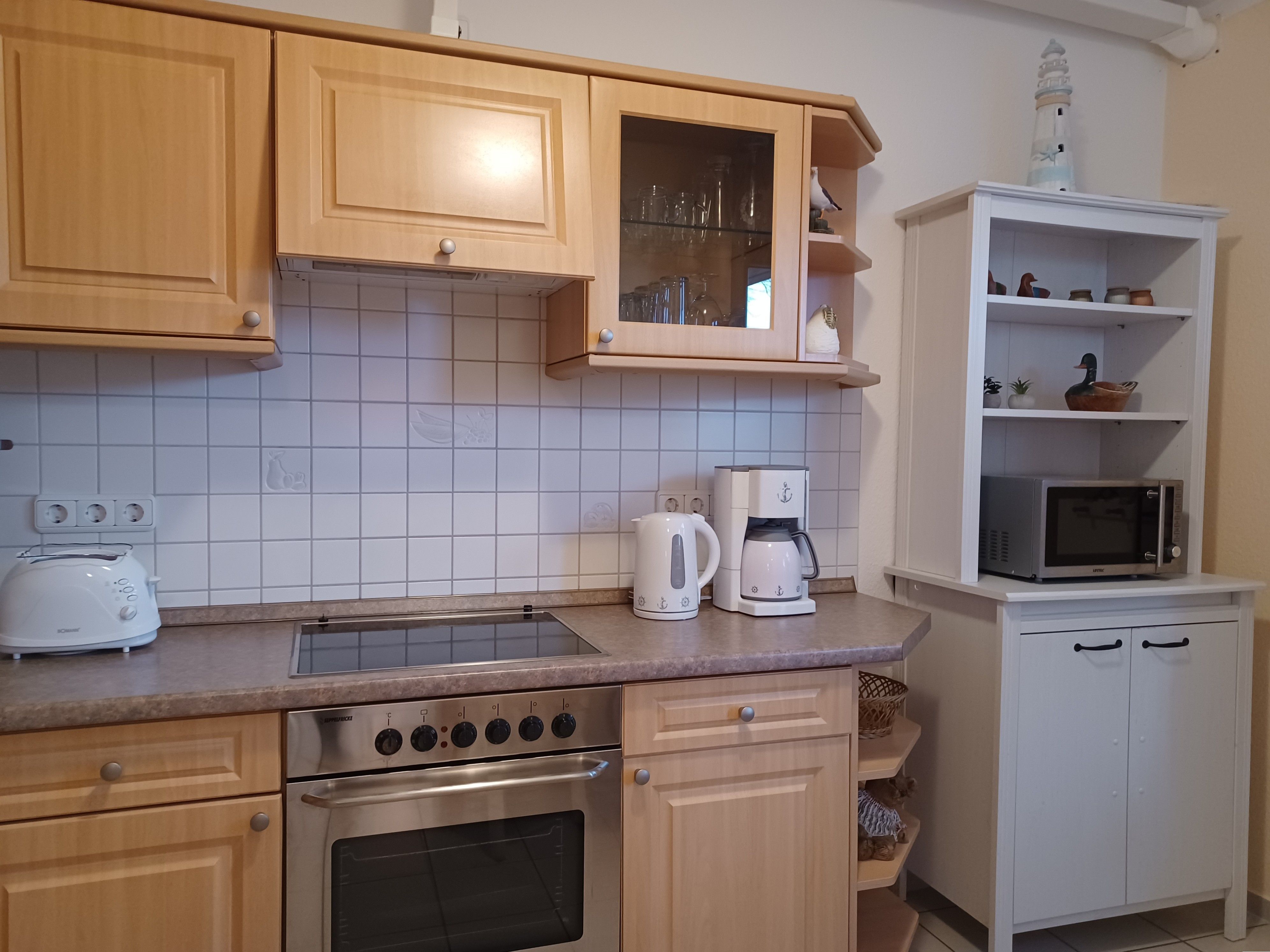 Ausstattung: Etagenbett: 1, Küchenzeile, Toaster, Wasserkocher, Kühlschrank mit Gefrierfach, Mikrowelle, Geschirrspüler, Kaffeemaschine, Herd mit Backofen, Waschmaschine, Dusche, Fön, TV, WLAN