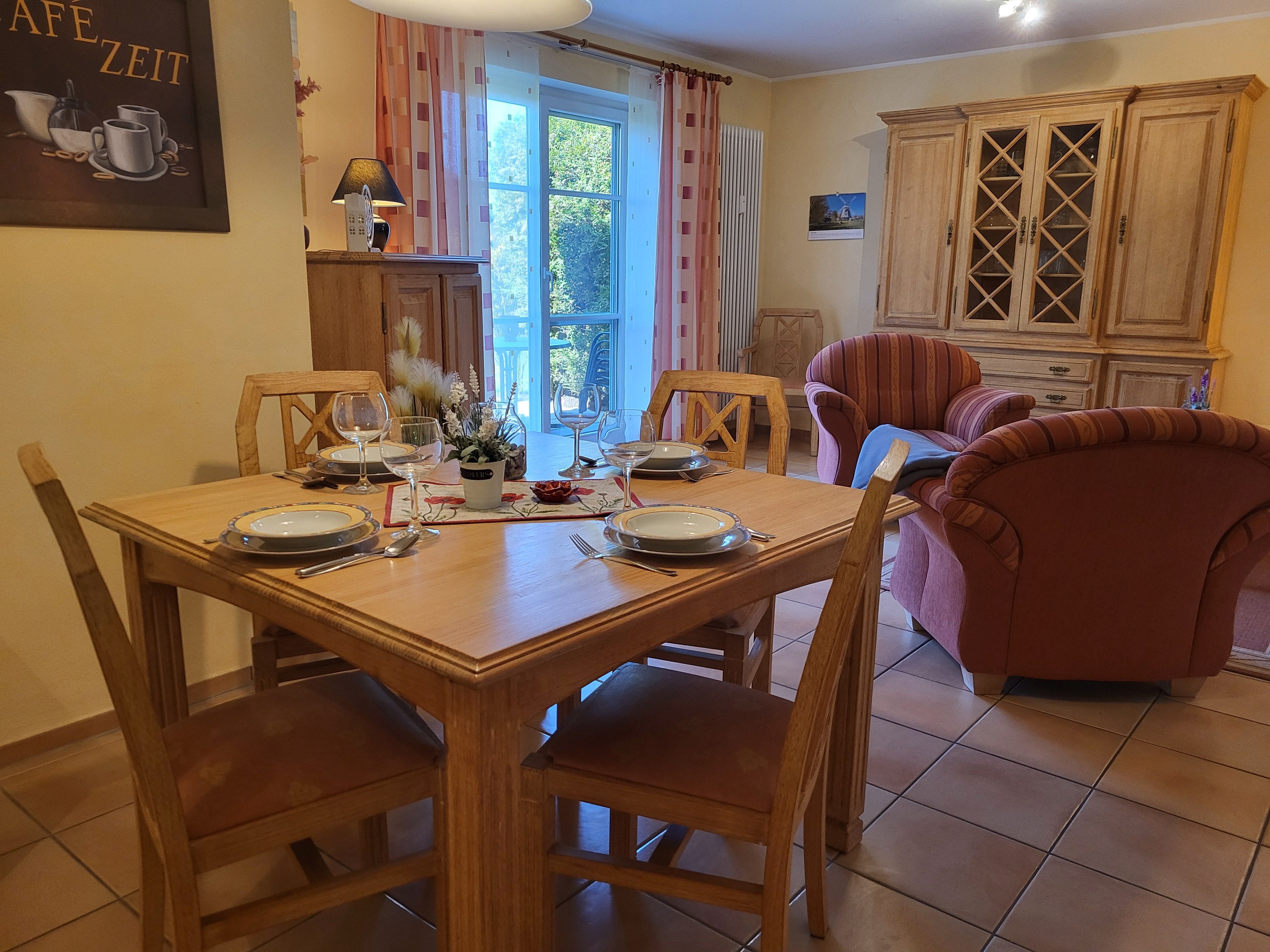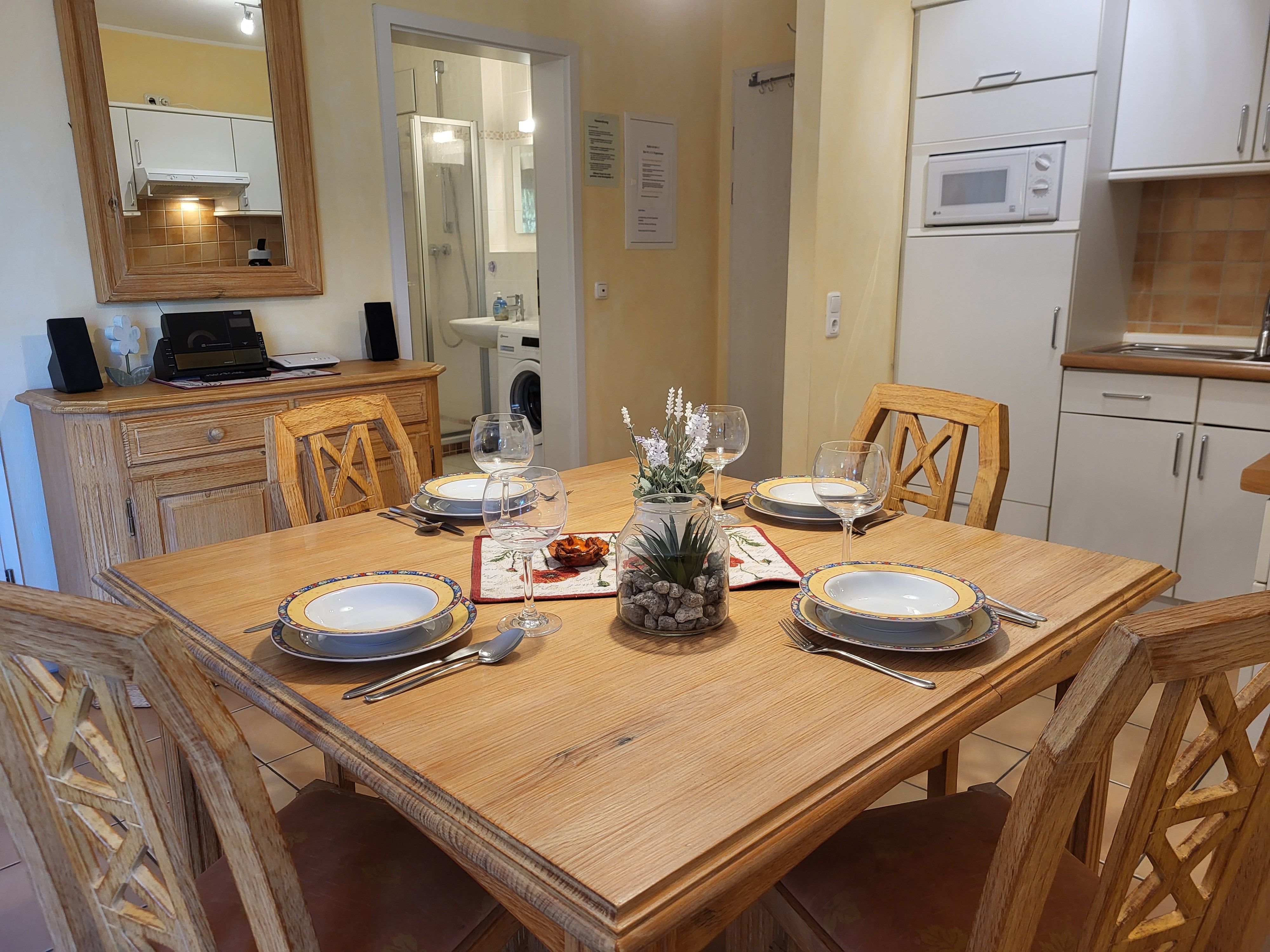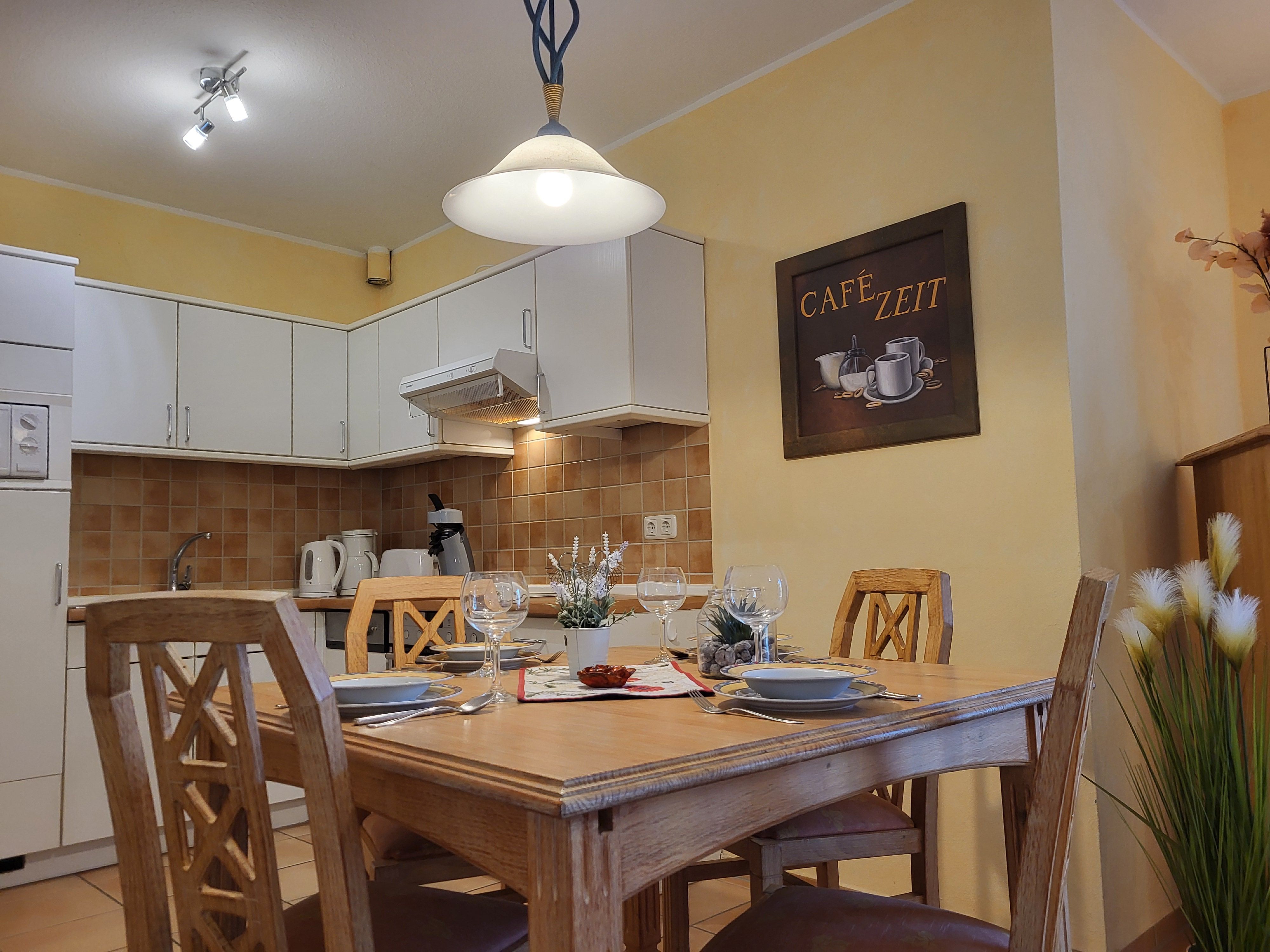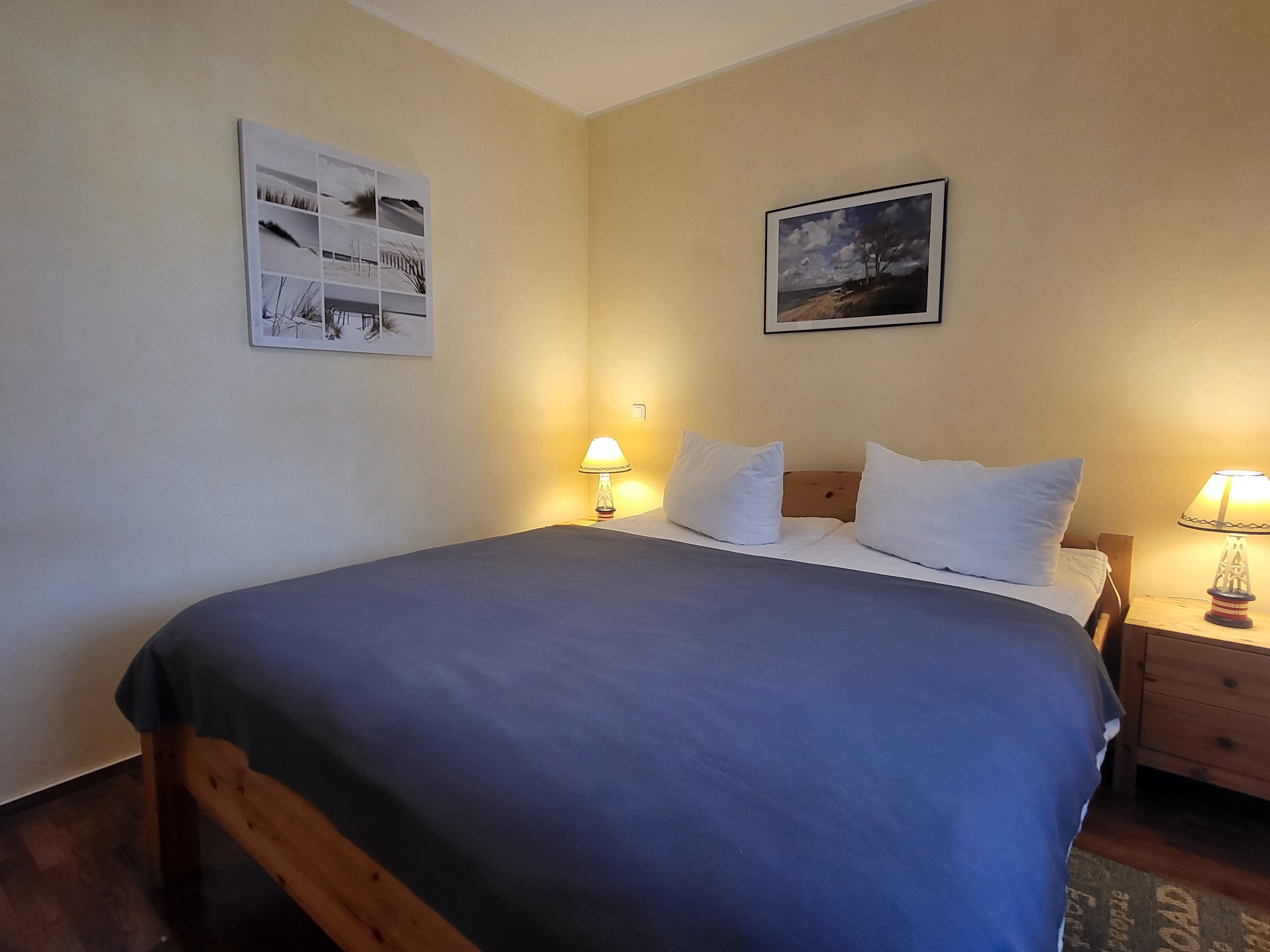 die zentral gelegene und hochwertig ausgestattete Ferienwohnung im Erdgeschoss in der Schmiedestraße ist für bis zu 4 Personen geeignet. Direkt am Wohnzimmer gelangen Sie auf die Südseitige Terrasse. Das Wohnzimmer ist mit SAT- TV, Essplatz und einer gemütlichen Couch ausgestattet. Die offene Küchenzeile lädt zum Kochen mit einer reich ausgestatteten Kücheneinrichtung ein, dazu gehört ein Herd mit Backofen und Cerankochfeld, Kühlschrank mit Gefrierfach, Mikrowelle und ein Geschirrspüler.Das Schlafzimmer ist ausgestattet mit einem Doppelbett 1,80 x 2,00 m ( getrennte Matratzen ) und das Kinderzimmer mit einem Etagenbett für unsere kleinen Gäste.Das innenliegende Badezimmer verfügt über eine Dusche und Waschmaschine. Den feinsandigen Strand an der Seebrücke erreichen Sie in ca. 15 min. Fußweg, dafür steht ein faltbarer Bollerwagen bereit. Die Bettwäsche und Handtücher können bei der Zimmervermittlung dazugebucht werden. Ein Wäschepaket kostet 19,50 € (1 Badetuch, 1 Handtuch, 1 Laken, 1 Kopfkissen, 1 Bezug). Für unsere kleinen Gäste steht ein Kinderhochstuhl bereit. Ein Kinderbett kann für 10,00 € pro Woche in der Zimmervermittlung zugebucht werden.Der Parkplatz Nr. 10 befindet sich direkt vor dem Haus. Die Ferienwohnung ist mit WLAN ausgestattet.
