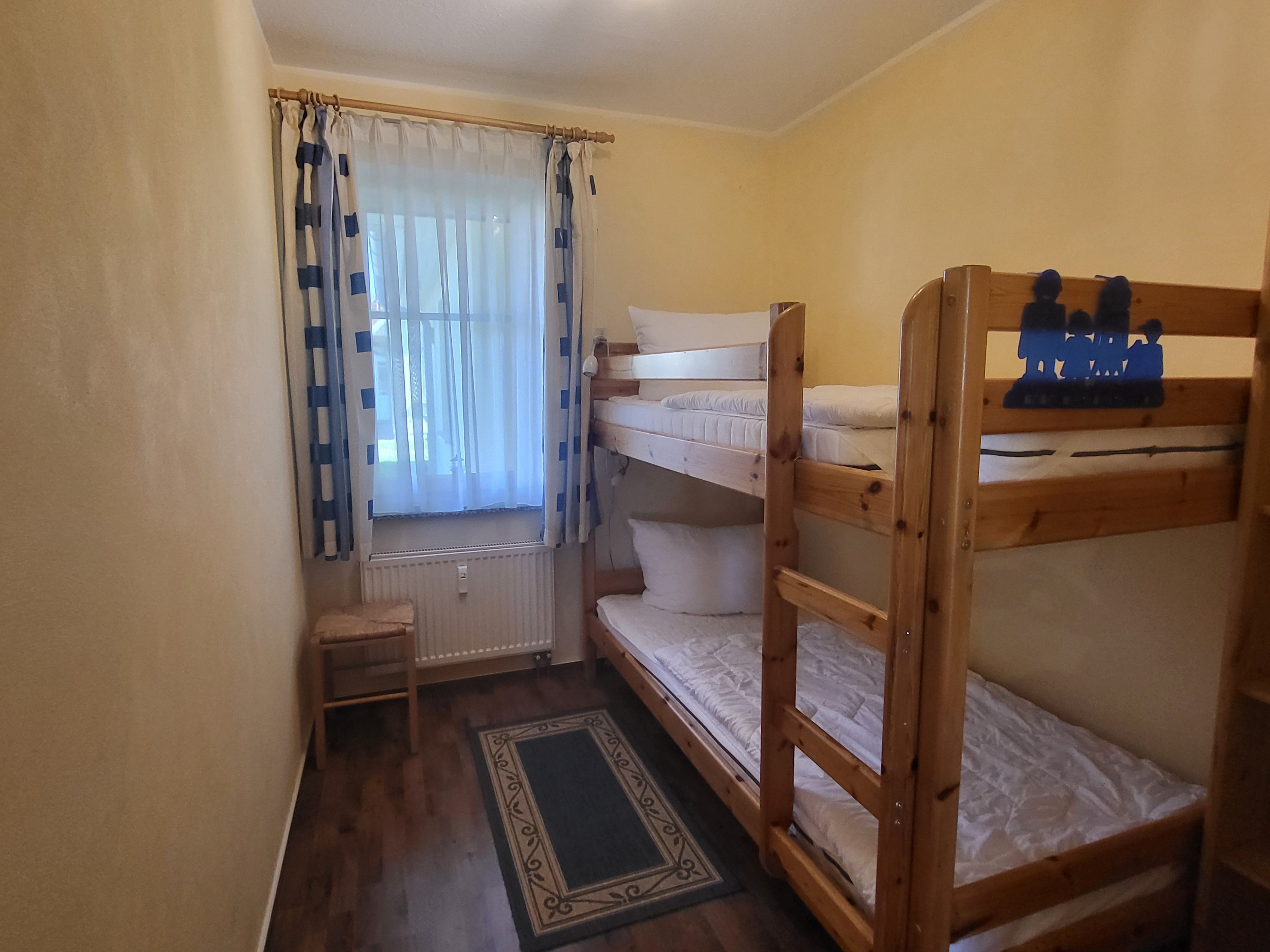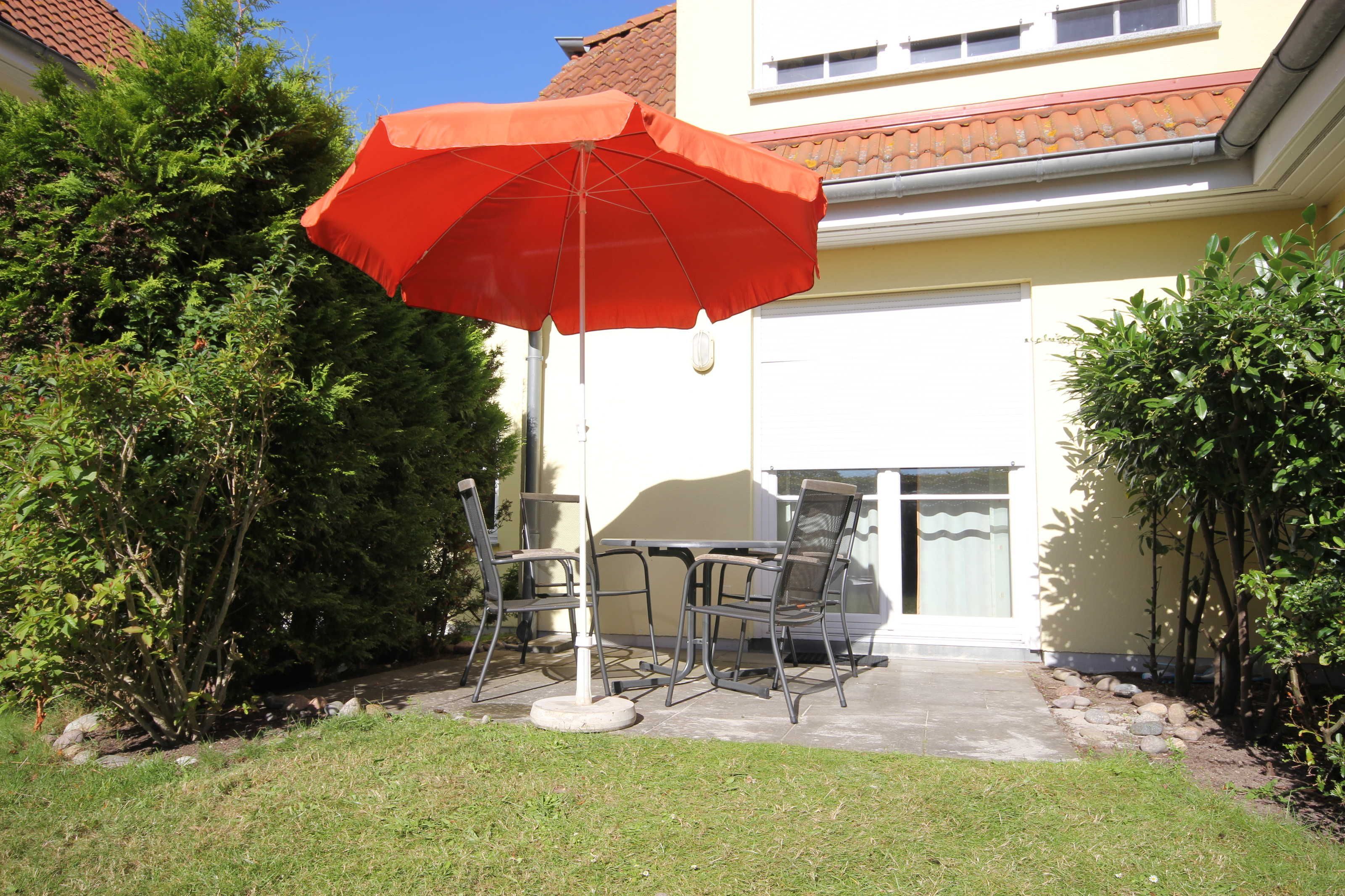 die zentral gelegene und hochwertig ausgestattete Ferienwohnung im Erdgeschoss in der Schmiedestraße ist für bis zu 4 Personen geeignet. Direkt am Wohnzimmer gelangen Sie auf die sonnige Westseitige Terrasse mit Gartenmöbel und Sonnenschutz. Das Wohnzimmer ist mit SAT- TV, offene Küchenzeile mit Essplatz und einer gemütlichen Couch ausgestattet. Die offene Küchenzeile lädt zum Kochen ein, zur Ausstattung gehört ein Herd mit Backofen und Cerankochfeld, Kühlschrank mit Gefrierfach, Mikrowelle und ein Geschirrspüler.Das Schlafzimmer ist ausgestattet mit einem Doppelbett 1,80 x 2,00 m ( getrennte Matratzen ) und das Kinderzimmer mit einem Etagenbett für unsere kleinen Gäste.Das innenliegende Badezimmer verfügt über eine ebenerdige Dusche und Waschmaschine mit Trocknerfunktion. Den feinsandigen Strand an der Seebrücke erreichen Sie in ca. 15 min. Fußweg.. Die Bettwäsche und Handtücher können bei der Zimmervermittlung dazugebucht werden, ebenso können Kinderbett und Hochstuhl für je 10,00 € pro Woche hinzugebucht werden. Ein Wäschepaket 19,50 € (1 Badetuch, 1 Handtuch, 1 Laken, 1 Kopfkissen, 1 Bezug). Die Fenster sind mit mechanischen Außenjalousien ausgestattet. Unsere Wohnung ist eine Nichtraucherwohnung. Haustiere sind herzlich willkommen.Der Parkplatz Nr. 10 befindet sich vor dem Haus. Die Ferienwohnung ist mit WLAN ausgestattet.