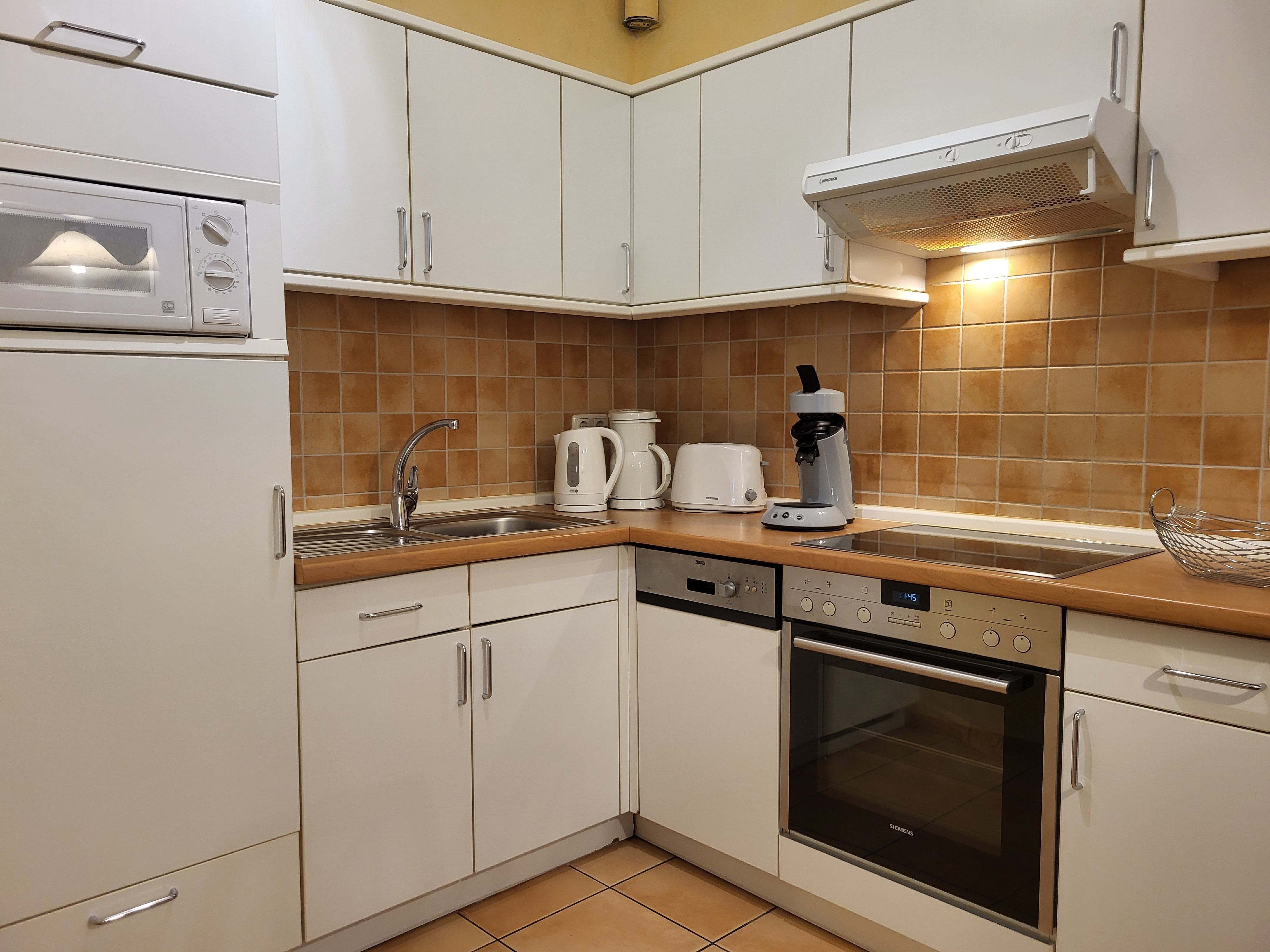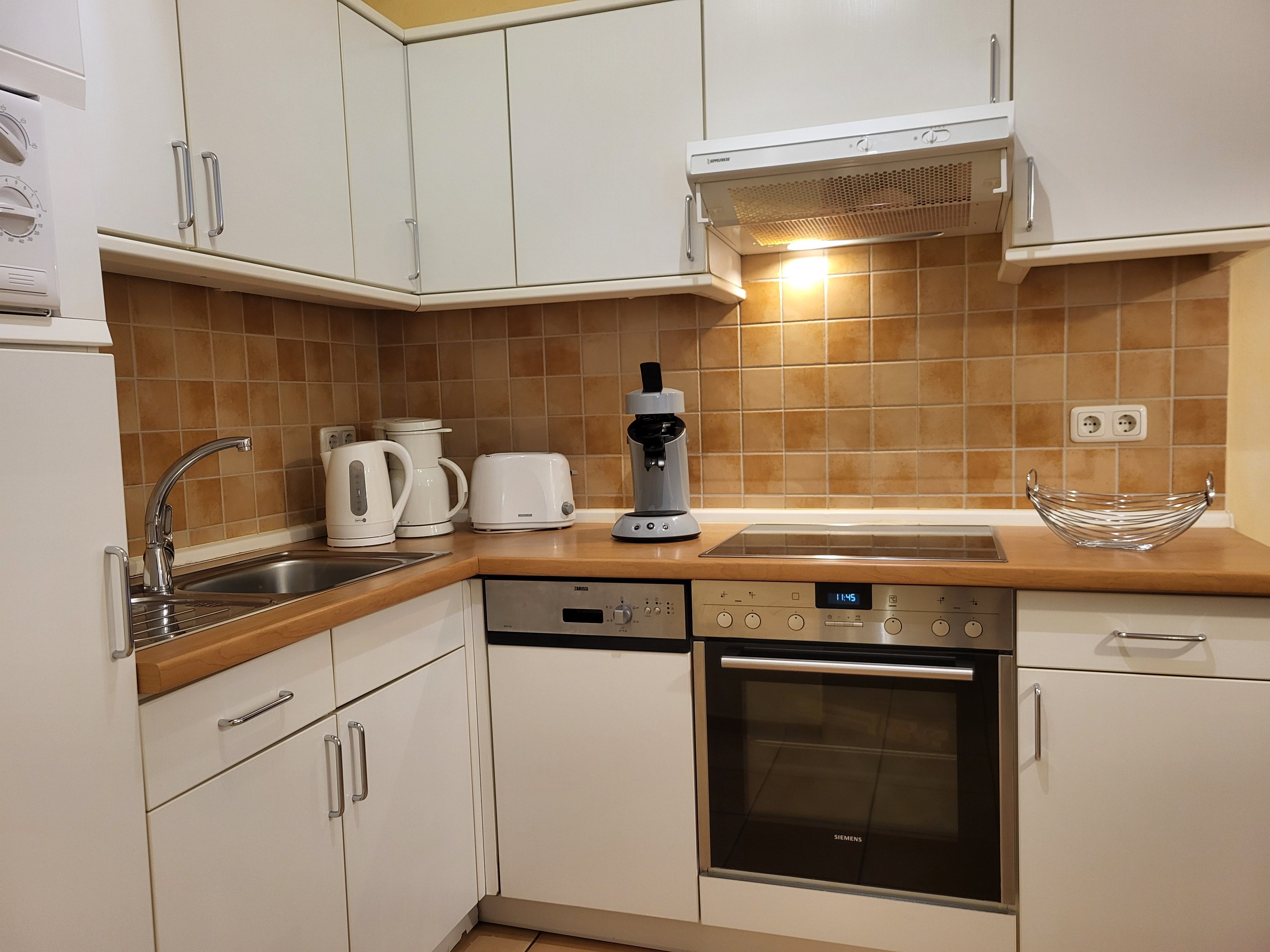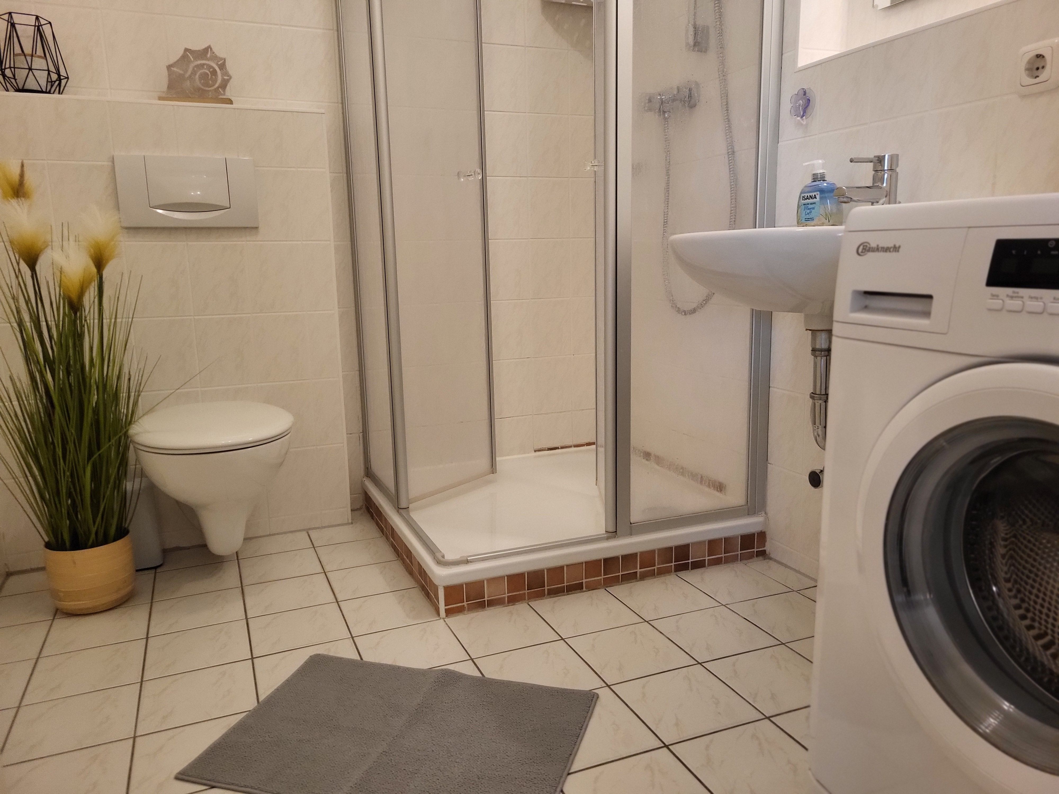 Gefrierschrank, Geschirrspüler, Kaffeemaschine, Herd mit Backofen, Dusche, separater Eingang