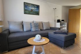 die zentral und hochwertig ausgestattete Ferienwohnung Anika 1 liegt in ruhige Lage am Ortsrand. Der Sitzplatz mit Grillmöglichkeit befinden sich im Garten, diesen teilen Sie sich mit der Wohnung Anika 2. Die Wohnung verfügt über einen separaten Eingang und einen Parkplatz auf dem Grundstück. Das Wohnzimmer mit offener Küchenzeile und Essplatz sind gemütlich eingerichtet und verfügt über einen WLAN- Anschluß, Der Strand liegt in ca. 500 m Entfernung. Die offene Küchenzeile ist ausgestattet mit einem Geschirrspüler, Kühlschrank mit Gefrierfach, Induktionskochfeld, Herd und Mikrowelle.