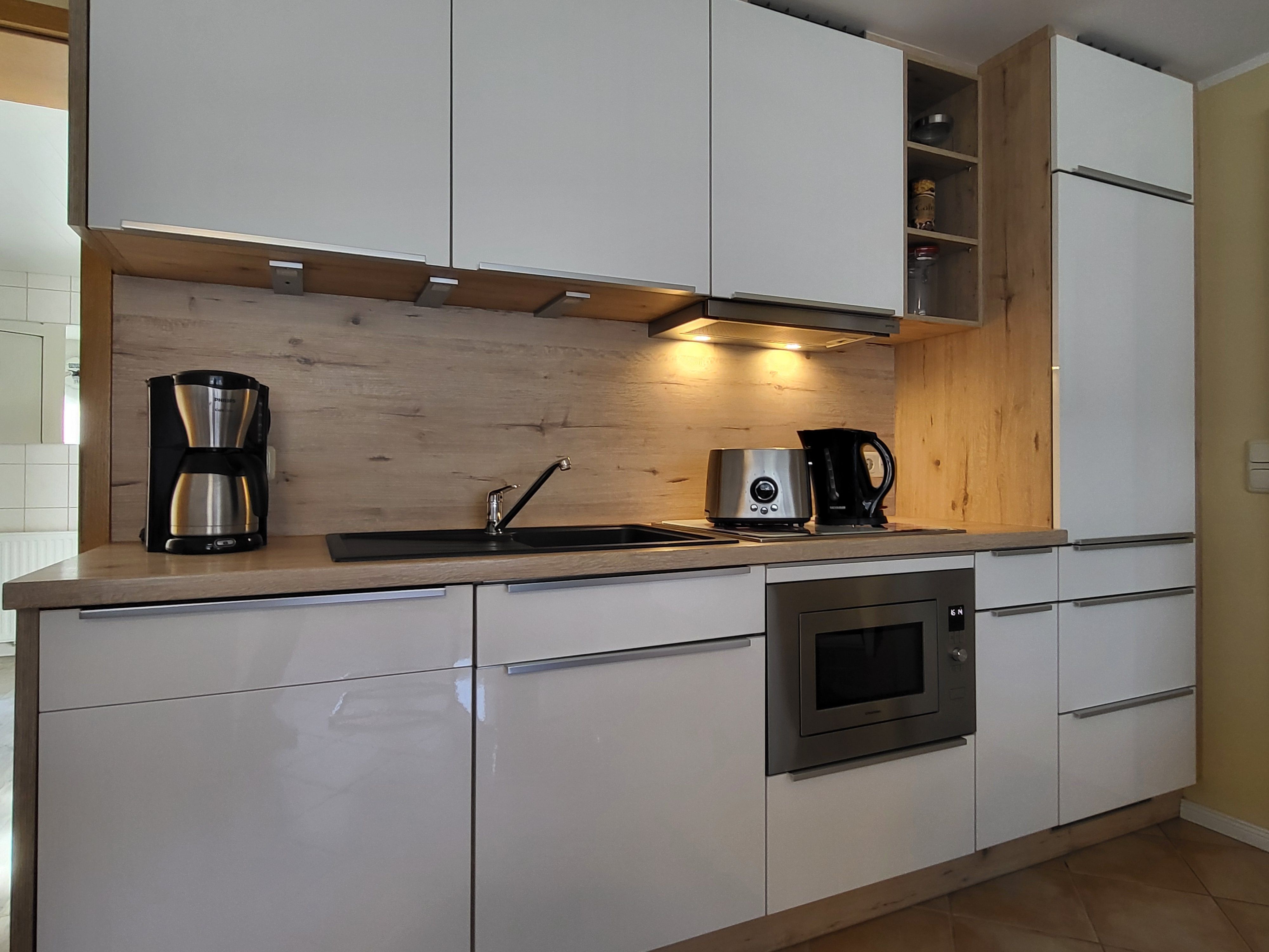 Ausstattung: Toaster, Wasserkocher, Kaffeemaschine, Kühlschrank, große Mikrowelle, TV, Radio,