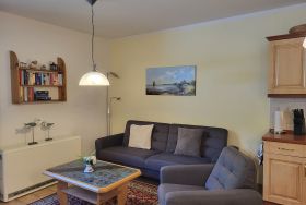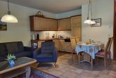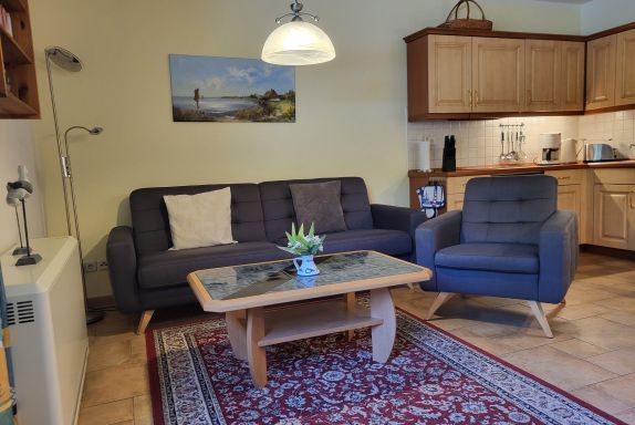 Die Ferienwohnung ist komfortabel mit hellen Möbeln, Radio, Sat-TV und DVD-Player ausgestattet. An die offene Eckküche mit Cerankochfeld, Backofen, Kaffeemaschine, Toaster, Geschirrspüler und Kühlschrank schließt sich der Essplatz an. Das Schlafzimmer verfügt über ein Doppelbett mit den Maßen 1,80 x 2,00 m (getrennte Matratze). Im Bad befindet sich eine Dusche mit niedrigem Einstieg. Im Haus gibt es einen kostenlosen WLAN- Zugang. Haustiere sind herzlich willkommen. Das Rauchen ist in der Ferienwohnung nicht gestattet. Auf dem Grundstück steht 1 PKW- Stellplatz zur Verfügung,