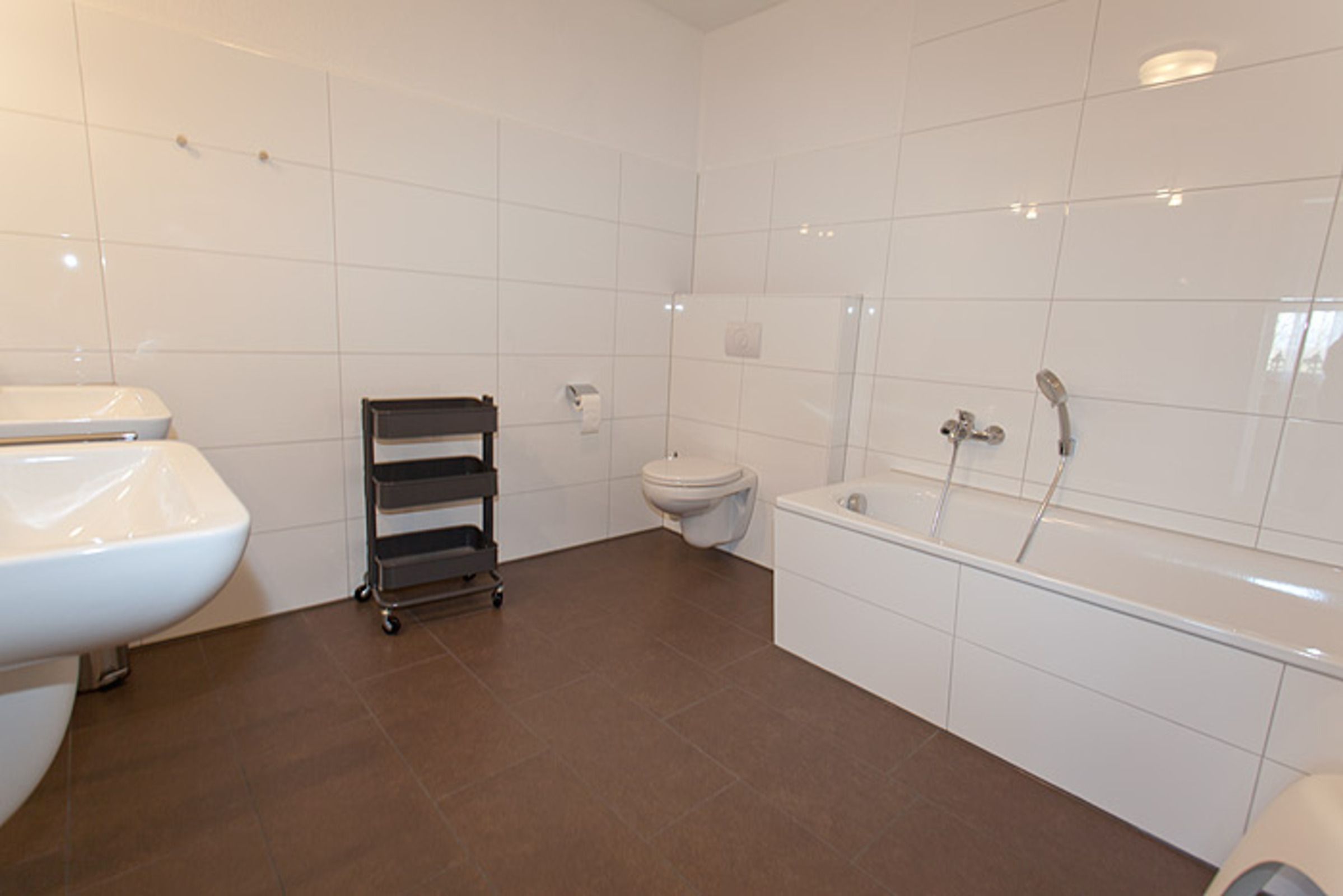 Des Weitern befindet sich hier die Gallerie mit einer Sitzgruppe und TV sowie 2 Bäder mit Dusch bzw. Badewanne und je 2 Waschbecken.