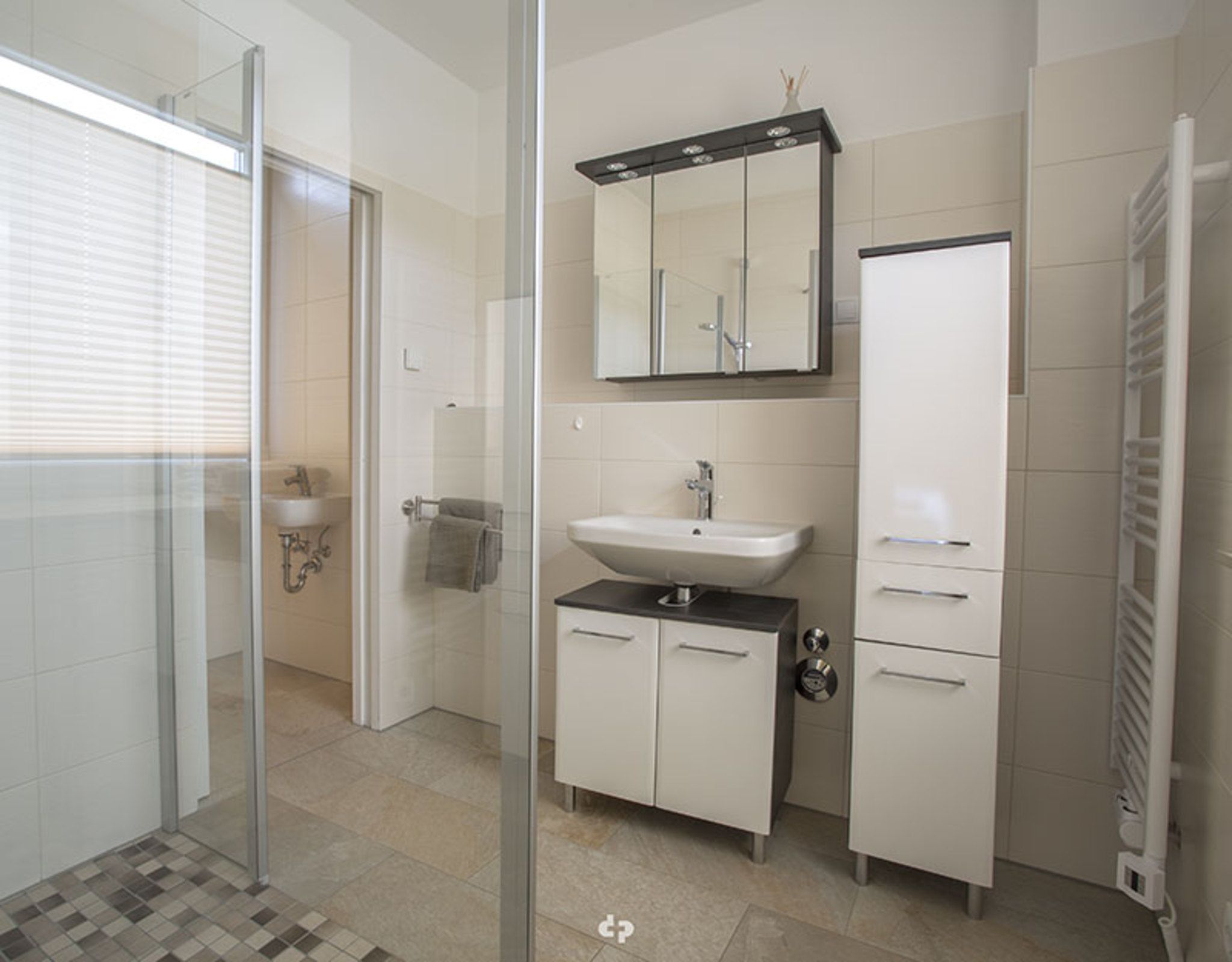 Das separate WC mit Waschbecken ist vom Eingangsbereich sowie vom Duschbad aus, begehbar.