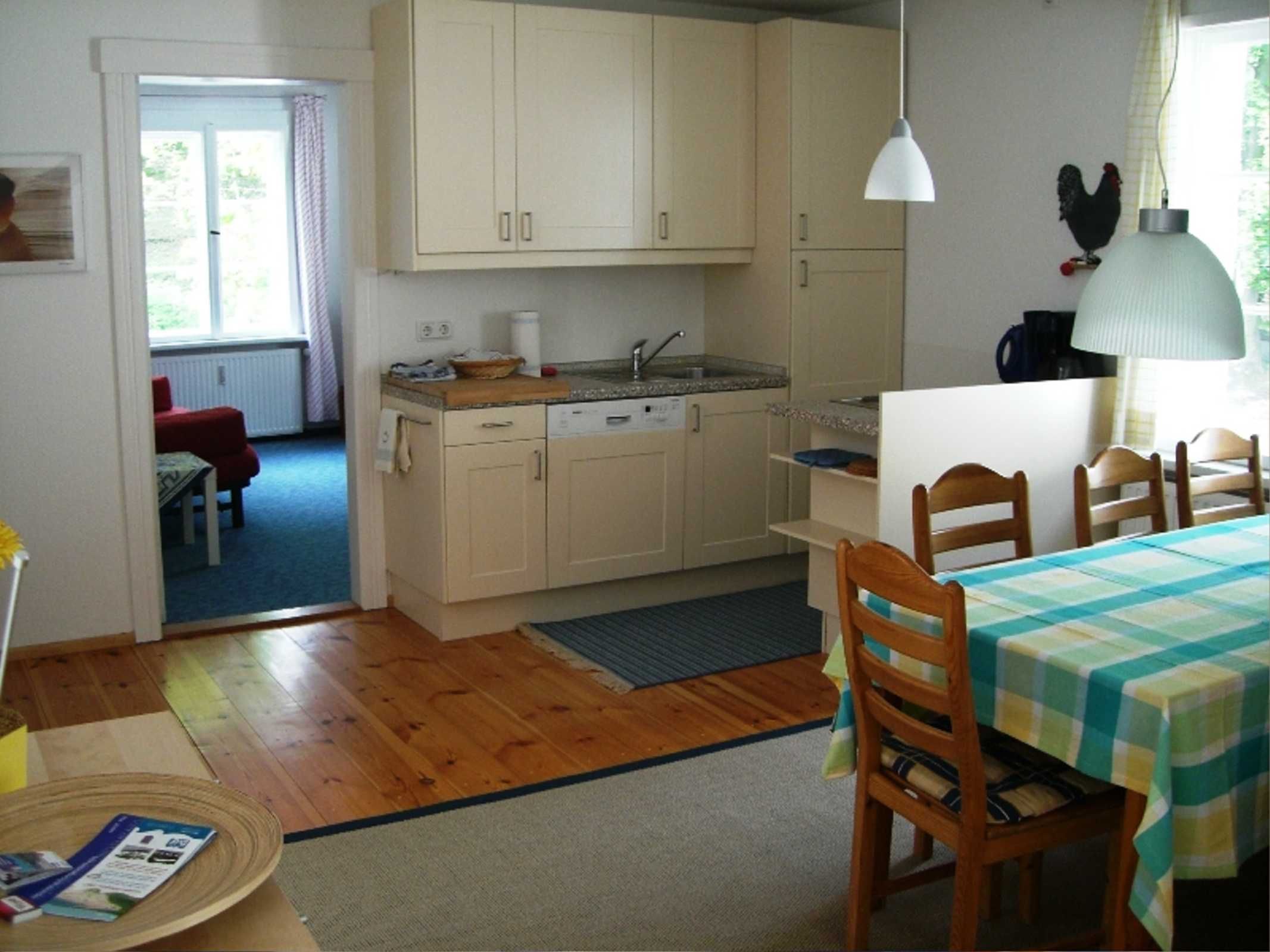 Die moderne und helle 3-Raum-NICHTRAUCHER-Ferienwohnung ist ca. 81m² groß und liegt im ersten Obergeschoss. Die Remise befindet sich auf einem parkähnlichen Grundstück, ca. 50m vom Ostseestrand entfernt. Die Wohnung verfügt über Sat-TV, eine Wohnküche, Radio, einem Esstisch mit 4 Stühlen und einer Sitzbank (Massivholz), Dielenfußboden sowie einer kompletten Küchenzeile mit 4 Platten-E-Herd, Backofen, Geschirrspüler, Kühl-/Gefrierkombination, Kaffeemaschine, Wasserkocher, Toaster, Geschirr etc. In den beiden Schlafräumen befinden sich jeweils ein Doppelbett (Liegefläche 1,80 x 2,00 m), ein großer Kleiderschrank, 1 Korbsessel mit kleinem Couchtisch sowie Teppichboden. Der kombinierte Wohn-/Schlafraum ist mit einer ausklappbaren Schlafcouch (Liegefläche ca. 1,60 x 2,00 m), einem großen Kleiderschrank, mit Couchtisch und Teppichboden eingerichtet. Das Bad ist mit einer Badewanne/WC ausgestattet. Auf dem Grundstück ist für diese Wohnung auch eine Sitzgelegenheit vorhanden. Erstausstattung Bettwäsche kann gegen Gebühr dazugebucht werden oder bitte selbst mitbringen. Die Erstausstattung Handtücher ist inklusive. Ein Kinderbett und ein Hochstuhl sind auf Anfrage verfügbar. Ein Pkw-Stellplatz ist auf dem Grundstück vorhanden.
