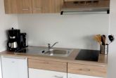 Das Appartement besitzt eine Küchenzeile mit einem 2er-Cerankochfeld, Kühlschrank mit Eisfach, Kaffeemaschine, Wasserkocher und Toaster. Auf der Terrasse steht ein Grill zu Ihrer Verfügung.