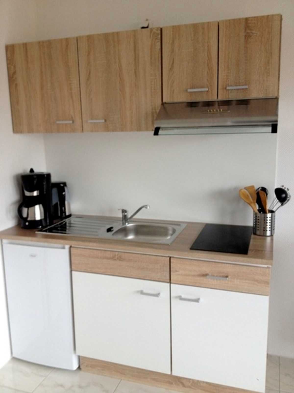 Das Apartment besitzt eine Küchenzeile mit einem 2er Cerankochfeld, Kühlschrank mit Eisfach, Kaffeemaschine, Wasserkocher und Toaster. Alle Geräte sind in bestem Zustand. Auf der Terasse steht ein Grill zu Ihrer Verfügung.