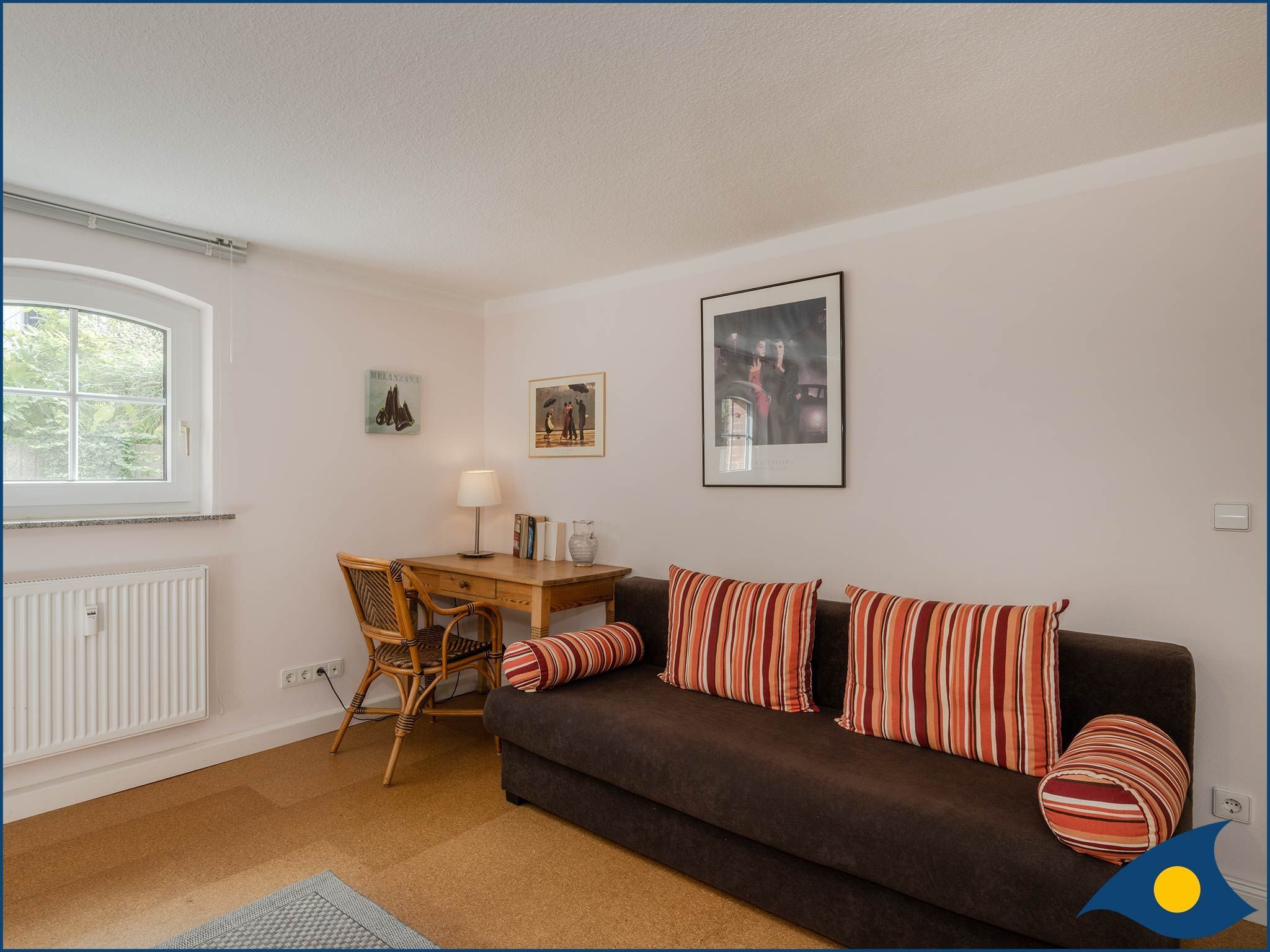 Das bequeme Schlafsofa im Wohnbereich bzw. im Schlafzimmer kann als Aufbettungsmöglichkeit für eine 3. und 4.Person genutzt werden.