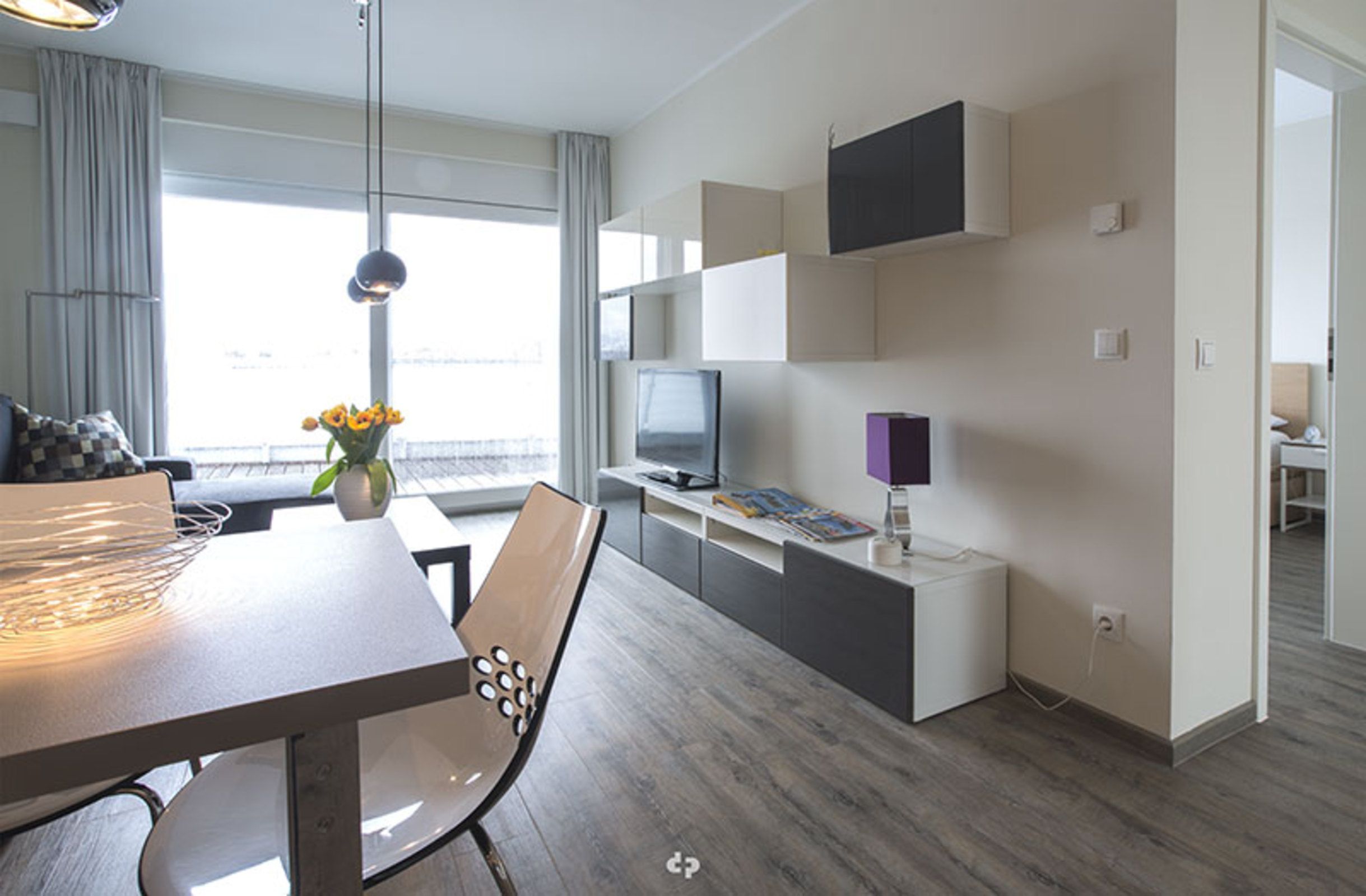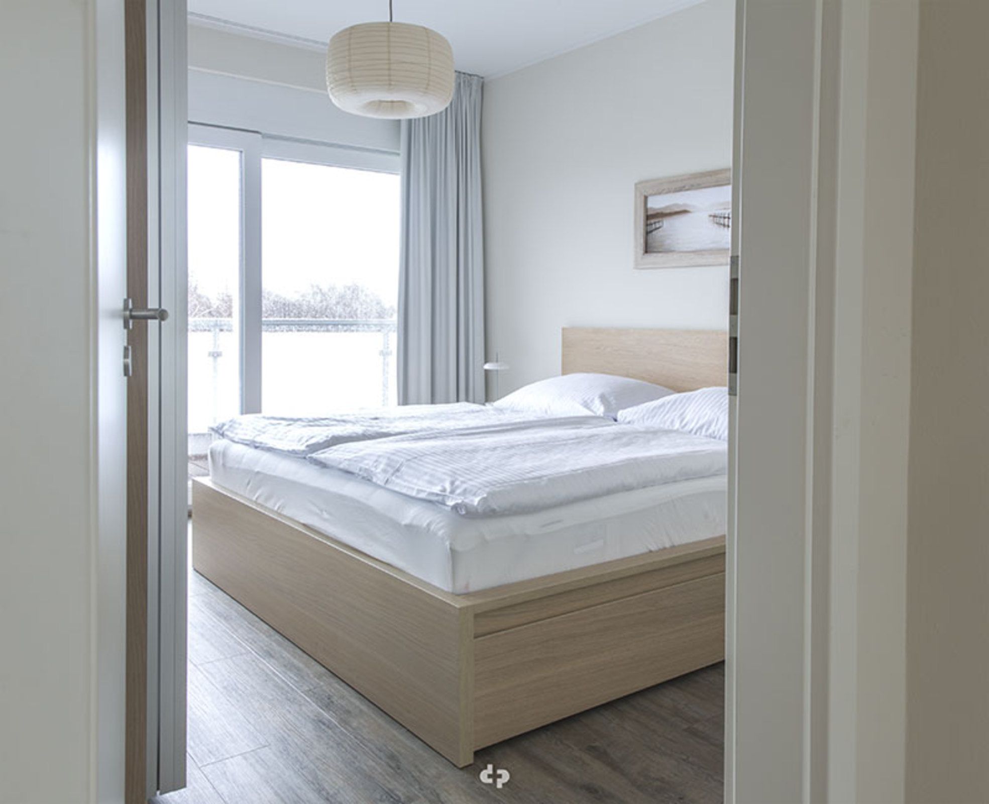 Im Schlafzimmer befindet sich ein Doppelbett (eine große Matratze 180x200), ein großer Schwebetürenschrank mit viel Stauraum. Von der Dachterrasse, welche Sie vom Schlafzimmer als auch vom Wohnzimmer begehen können, haben Sie einen unvergesslichen Blick auf die Ostsee. Um den Abend entspannt ausklingen zu lassen, stehen auf der Dachterrasse bequeme Gartenstühle nebst Tisch sowie Liegestühle für Sie bereit.