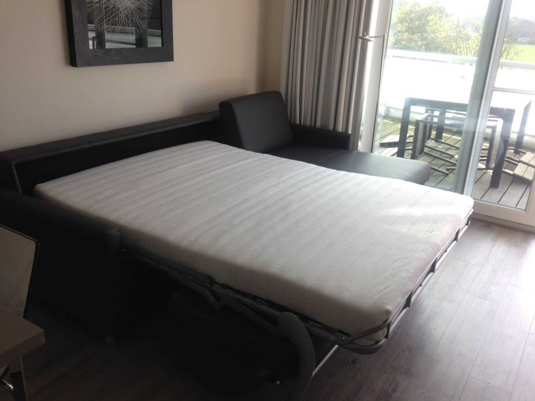 Im Wohnbereich können Sie auf der gemütlichen Couch entspannen. Im Wohnbereich ist eine Aufbettung (Schlafcouch 150x200) für 2 Personen möglich. Mit Flachbildfernseher kann man auch mal dem schlechten Wetter trotzen.