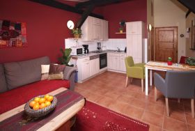 - Wohnzimmer mit integrierter moderner Küche - wie in den anderen Wohnungen, auch eine