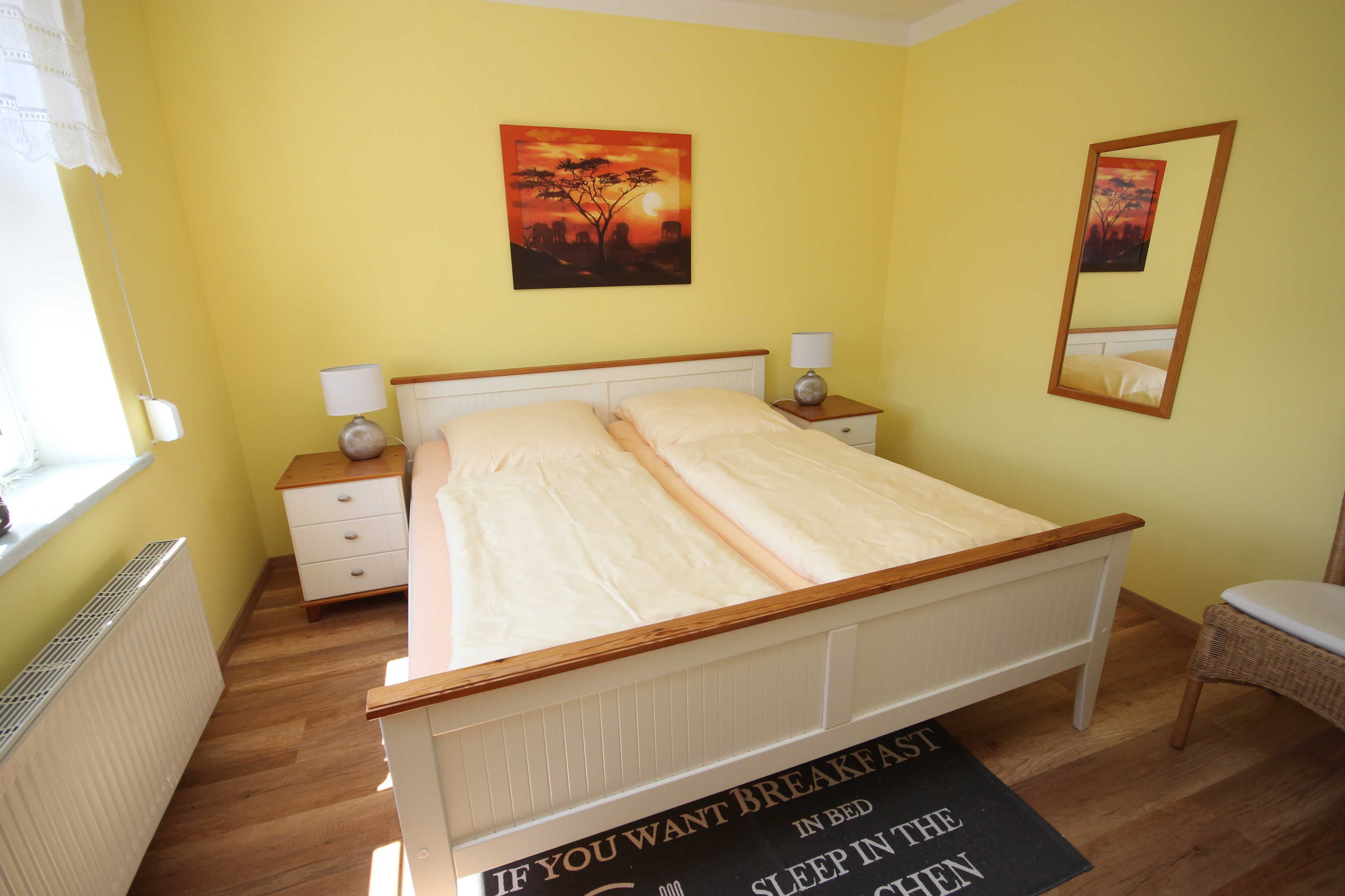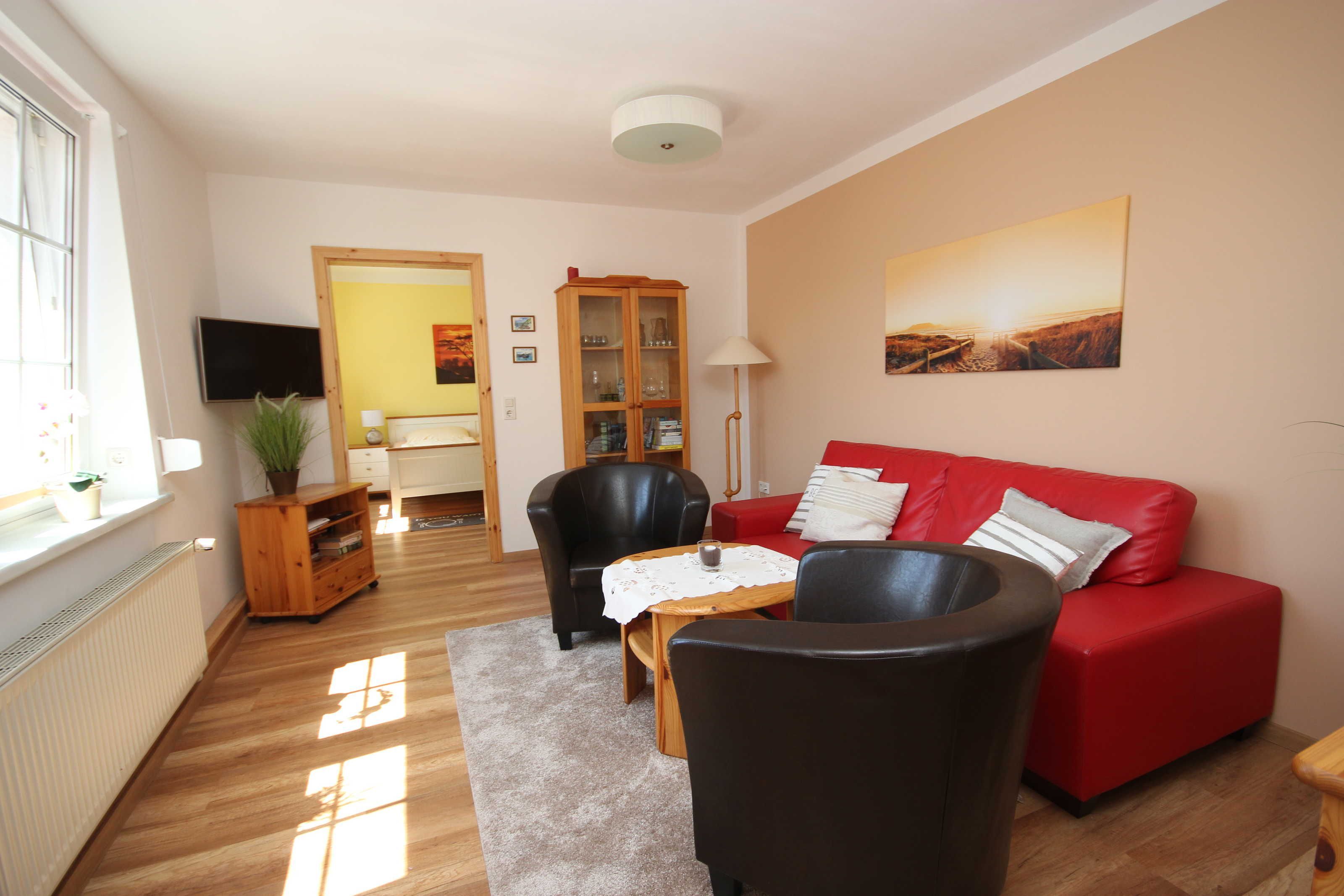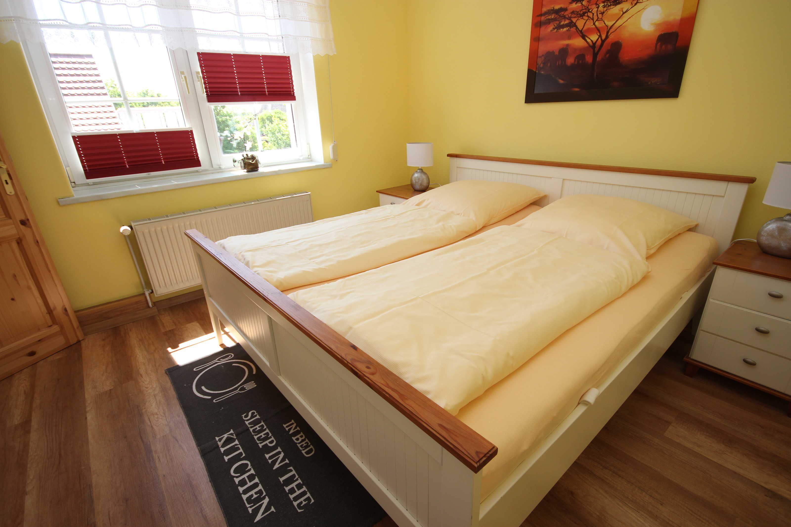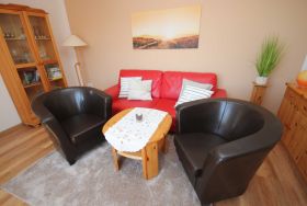 Der kleine Hafen und das Zentrum , sowie den feinsandigen Strand erreichen Sie in ca.10 Gehminuten Die Ferienwohnung liegt im 1. Obergeschoss. Das Wohnzimmer verfügt über eine gemütliche Couch und SAT- TV. Im Schlafzimmer befindet sich ein Doppelbett 180 x 200 cm (mit getrennten Matratzen). Im Lesezimmer ist eine Schlafcouch. Die Küche ist ausgestattet mit Geschirrspüler, Kaffeemaschine, Toaster, Wasserkocher, Herd mit Cerankochfeld und Backofen, Ein kleiner Essplatz lädt zum frühstücken ein. Das moderne Bad hat eine ebenerdige Dusche. Die Fliegengaze im Wohn- und Schlafzimmer halten unangenehme Mücken fern. Das Haus verfügt über einen kostenlosen WLAN- Anschluß. Die Wohnung wird inclusive Bettwäsche übergeben, Handtücher können in der Zimmervermittlung für 7,00 € pro Person (1 Badetuch, 1 Handtuch) dazugebucht werden.